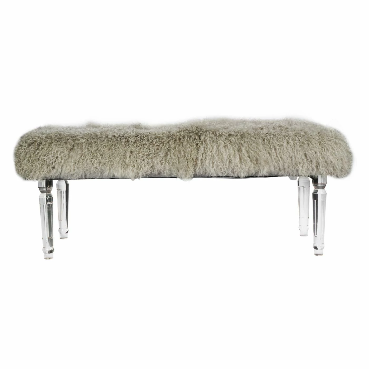 Fabulously glam, the A and B Home Francesca Mongolian Fur Bedroom Bench is upholstered with the deep softness of lamb fur. The acrylic legs have a classically inspired shape, but they’re anything but traditional thanks to the thick design of clear acrylic. Dense foam padding offers plenty of comfort and makes this piece into something practical and appealing.