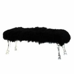 Art and luxury meet with the AB Home Mongolian Fur Bedroom Bench, topped with faux sheepskin fur upholstery in your choice of available color. Legs crafted of clear acrylic are featured in sculpted animal hoof designs to bring this bedroom bench an abundance of wild, exotic appeal.