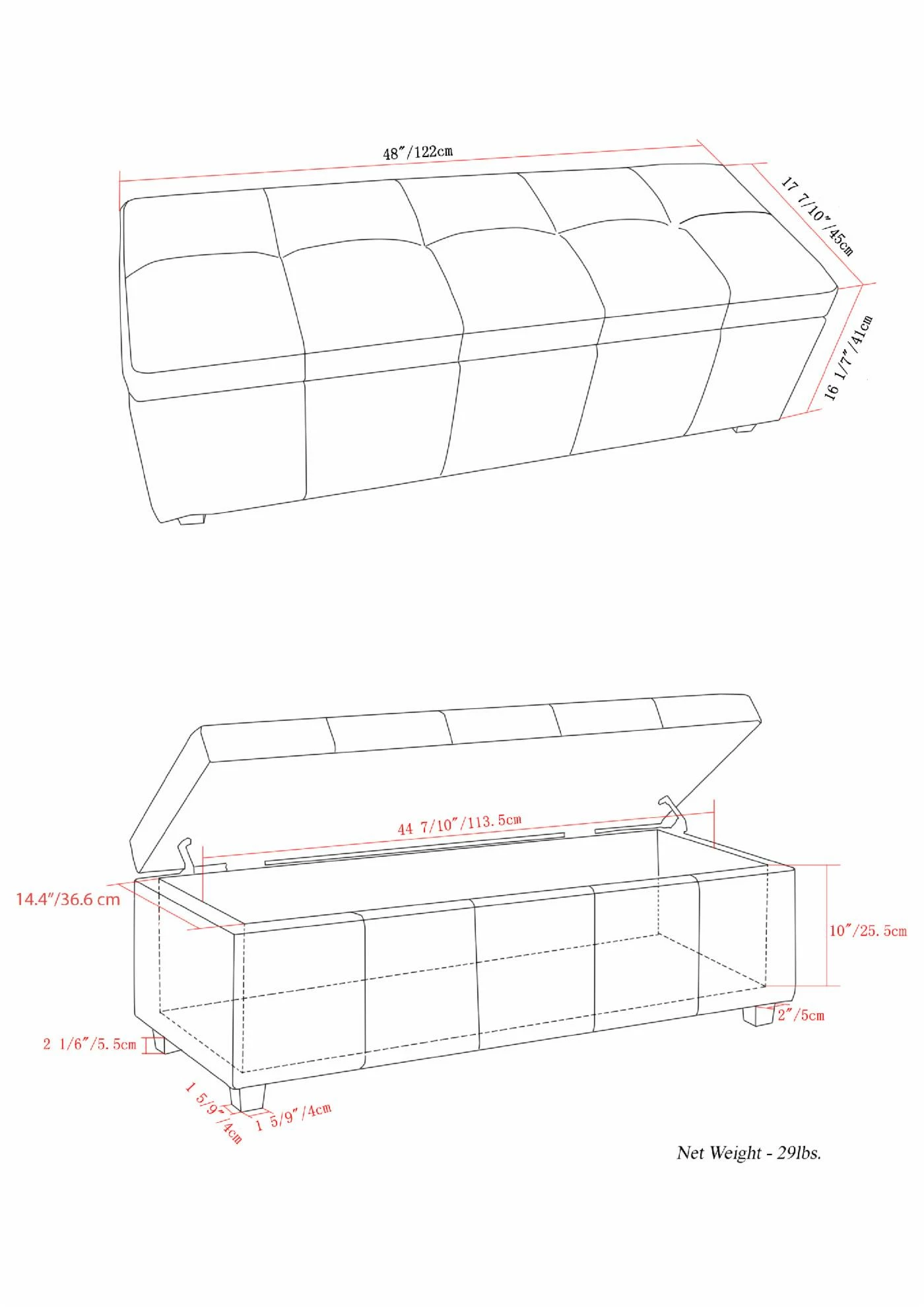 - Dimensions: 48L x 17.7W x 16.1H in.