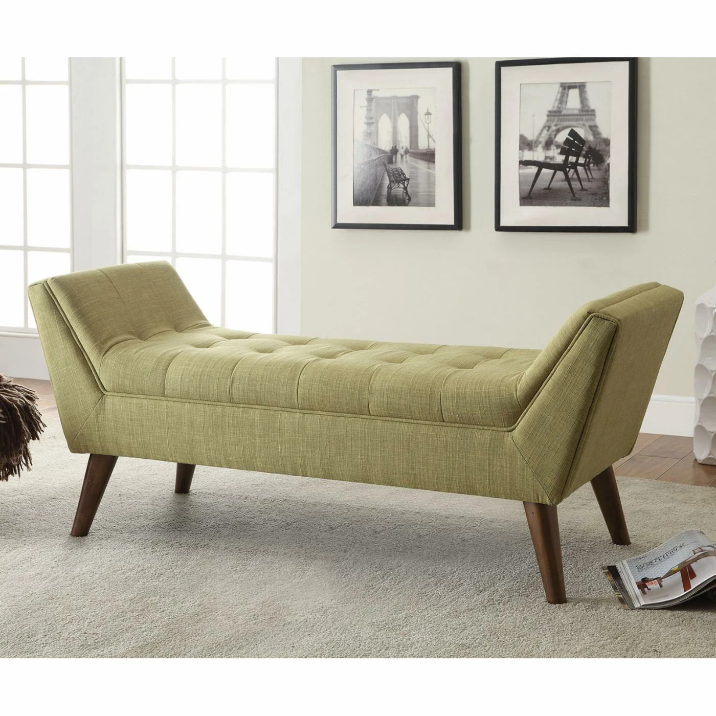 With its flared wood legs and angled arms, this Coaster Furniture Arroyo Bedroom Bench is a perfectly example of mid-century style. The look is updated by your choice of linen-like fabric upholstery color. Tailored details include button tufting and welted trim.