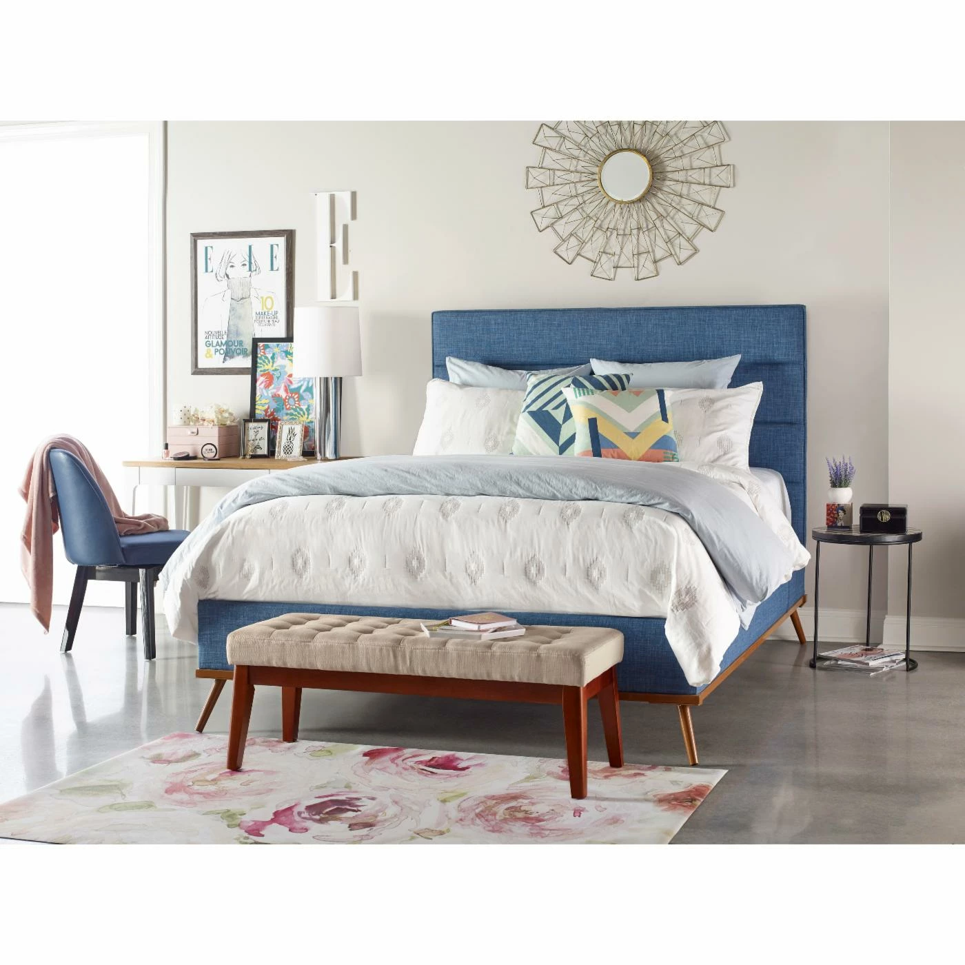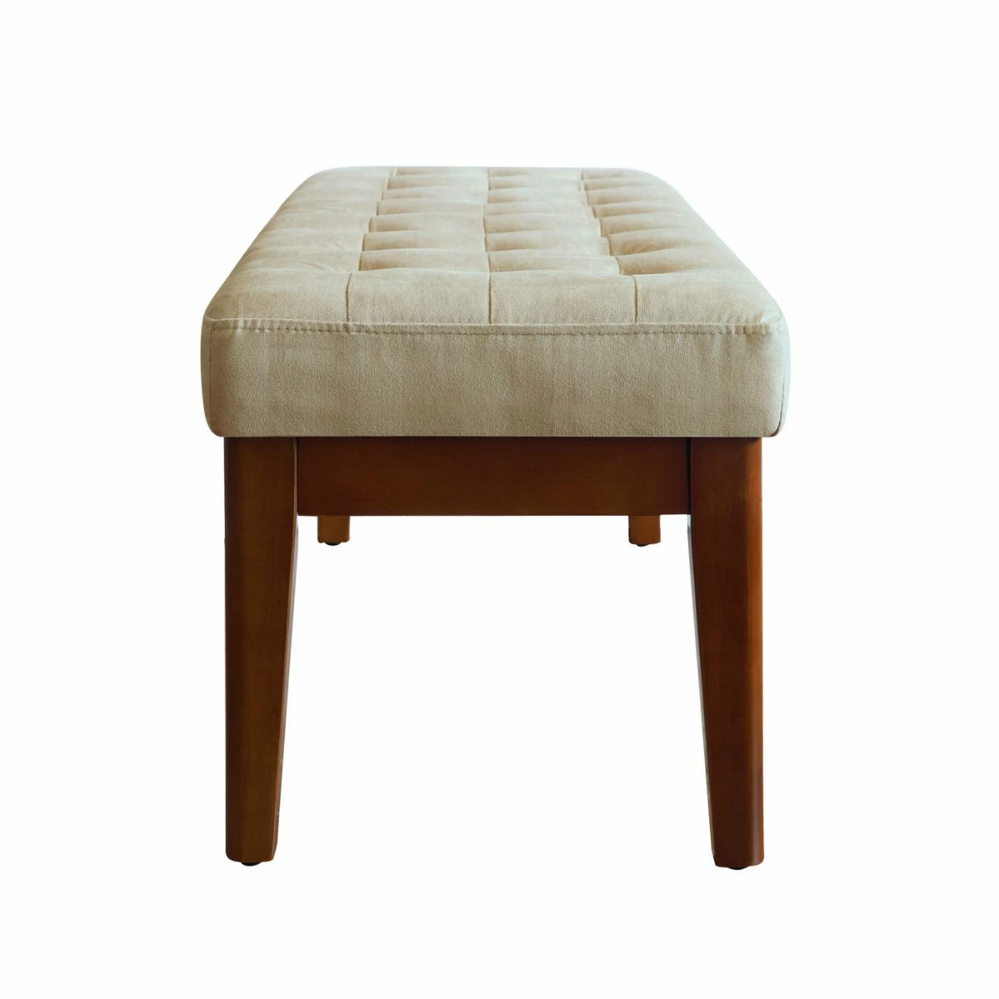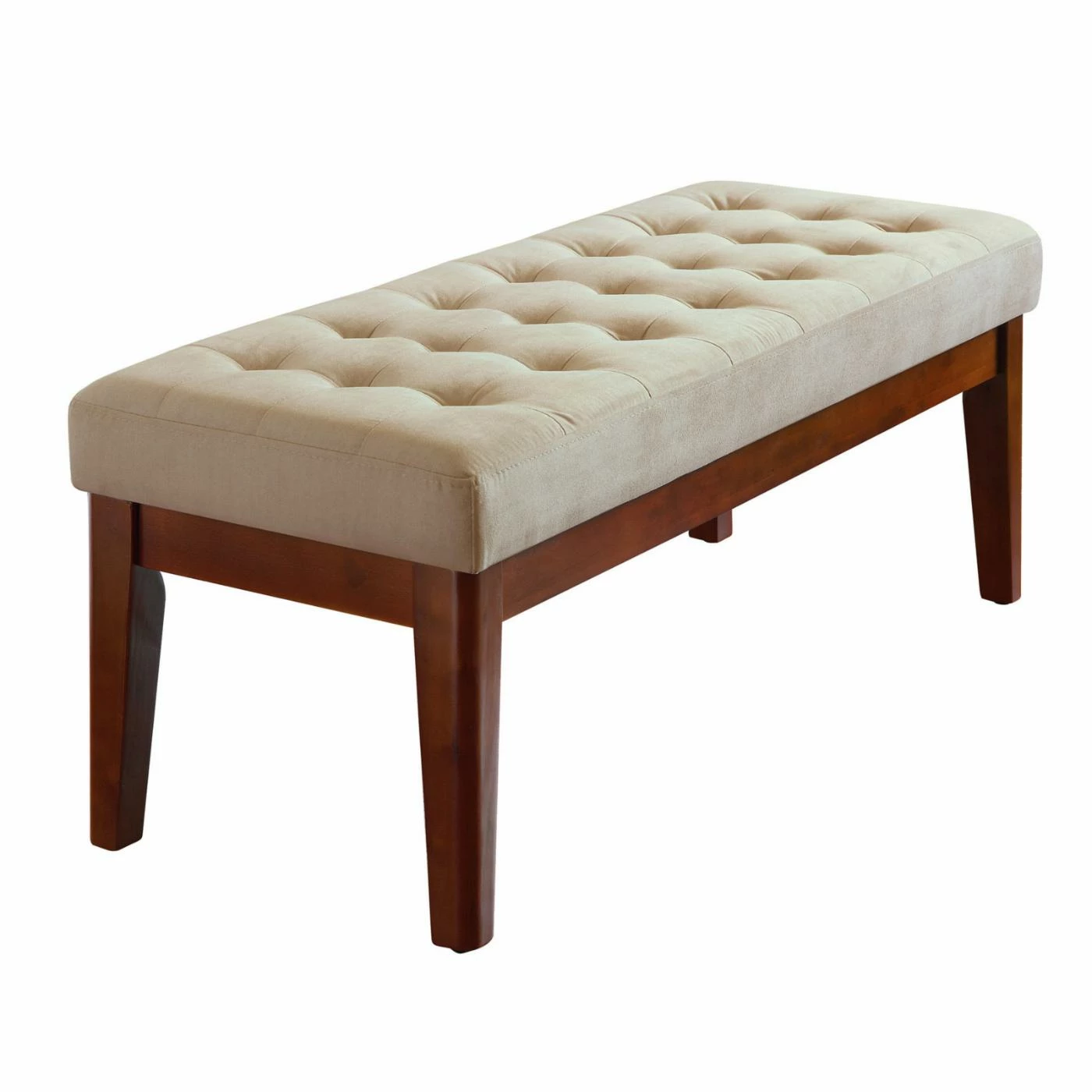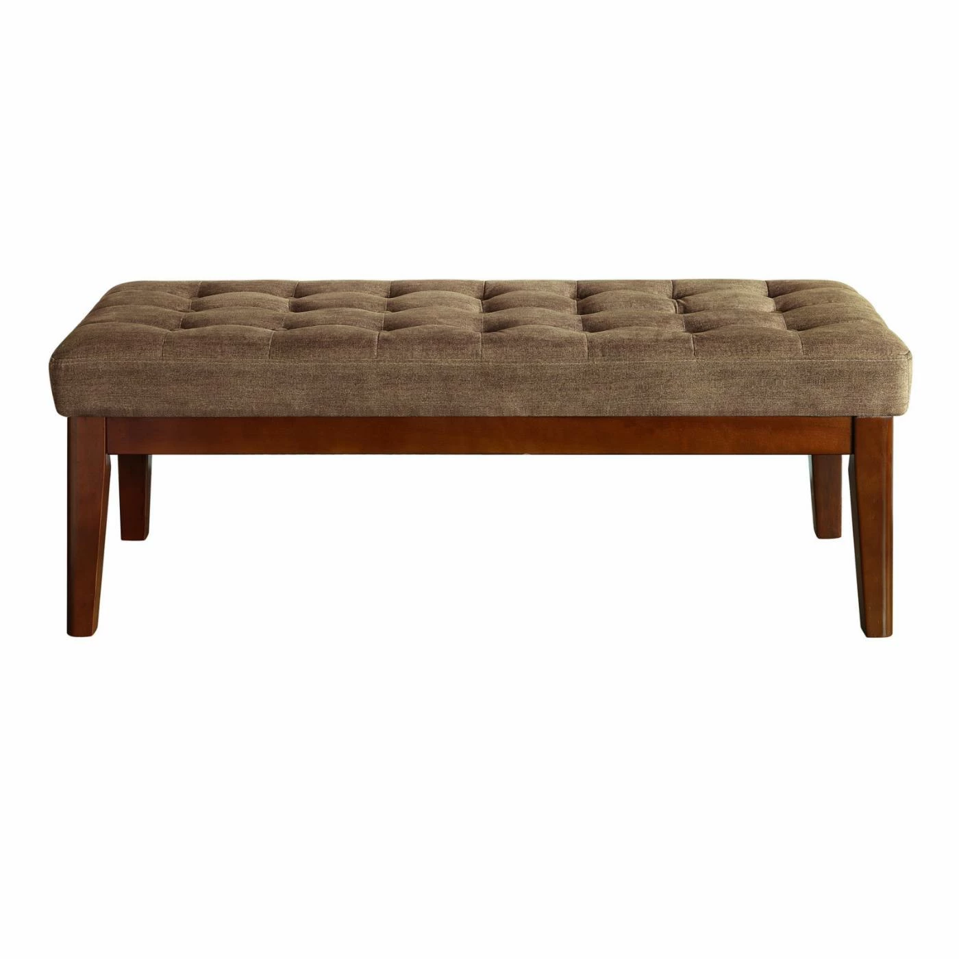 Whether you’re looking for a comfortable place to rest your feet or a tasteful side seat, the Elle Decor Claire Tufted Bedroom Bench is a splendid addition to any modern room. Its rectangular frame is built from rugged wood with splayed block legs. A tasteful cherry brown finish tops the wood. The top cushion comes padded thickly with high-density foam and is upholstered in a premium linen fabric. A shallow, square-tufted design accents the cushion. Choose from the available color options.