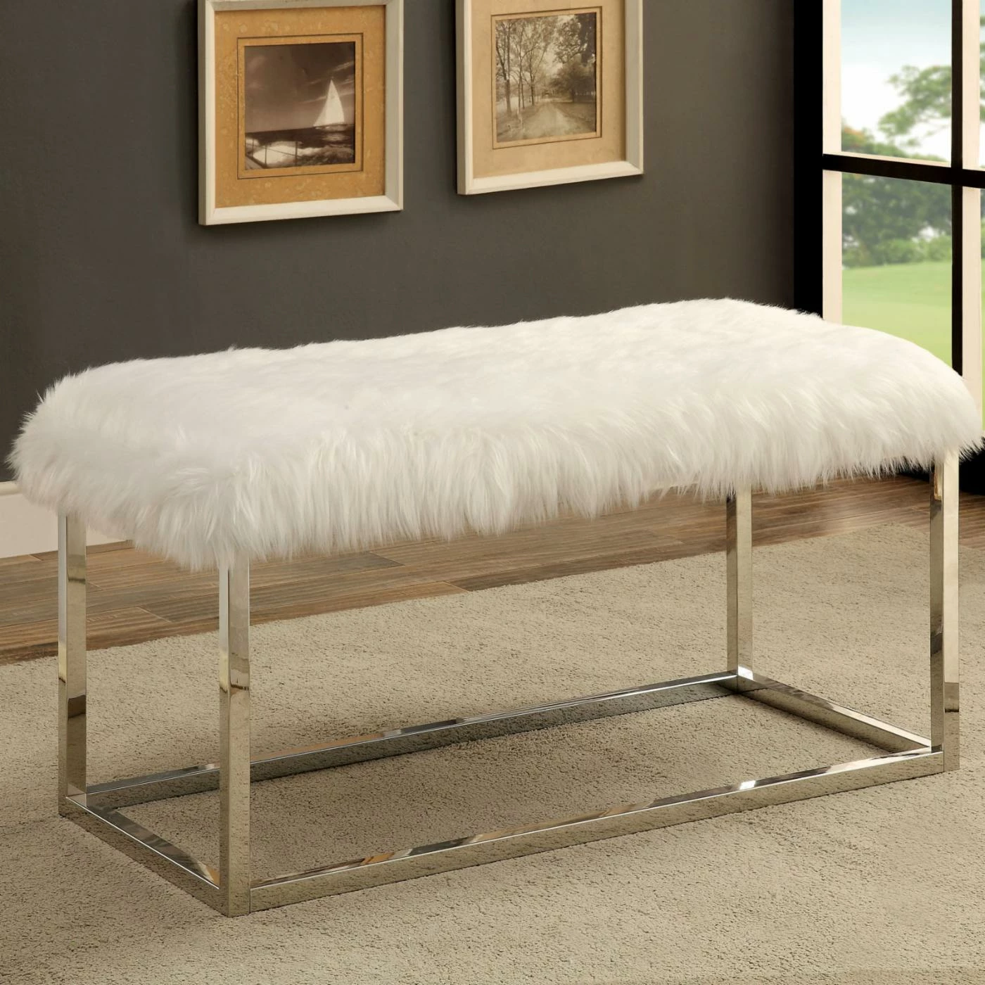 Give your space a modern vibe with the Furniture of America Lucas Contemporary Style Faux Fur Large Bench, featuring a sturdy metal base with an open, airy design. This spacious bench features a shaggy, faux fur upholstery that is inviting. The rectangular shape and minimalistic framing creates subtle structural appeal in any room of your home.
