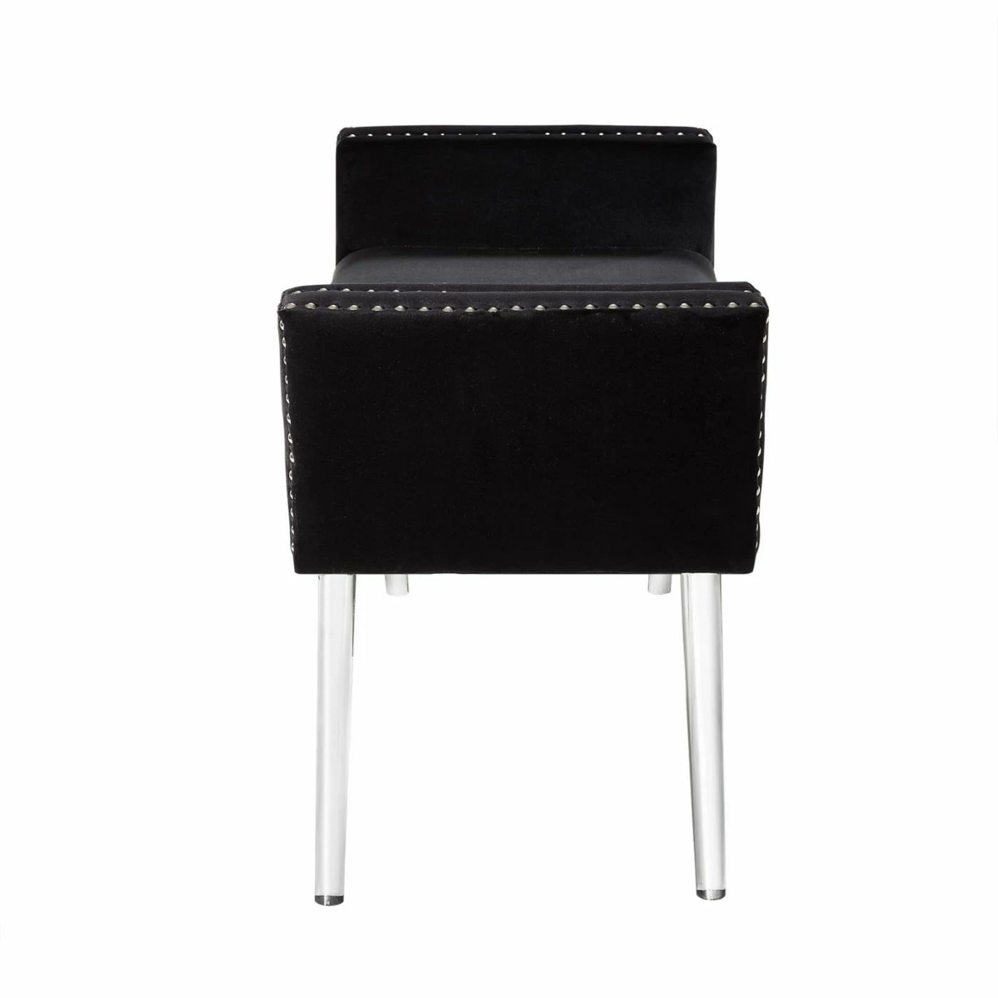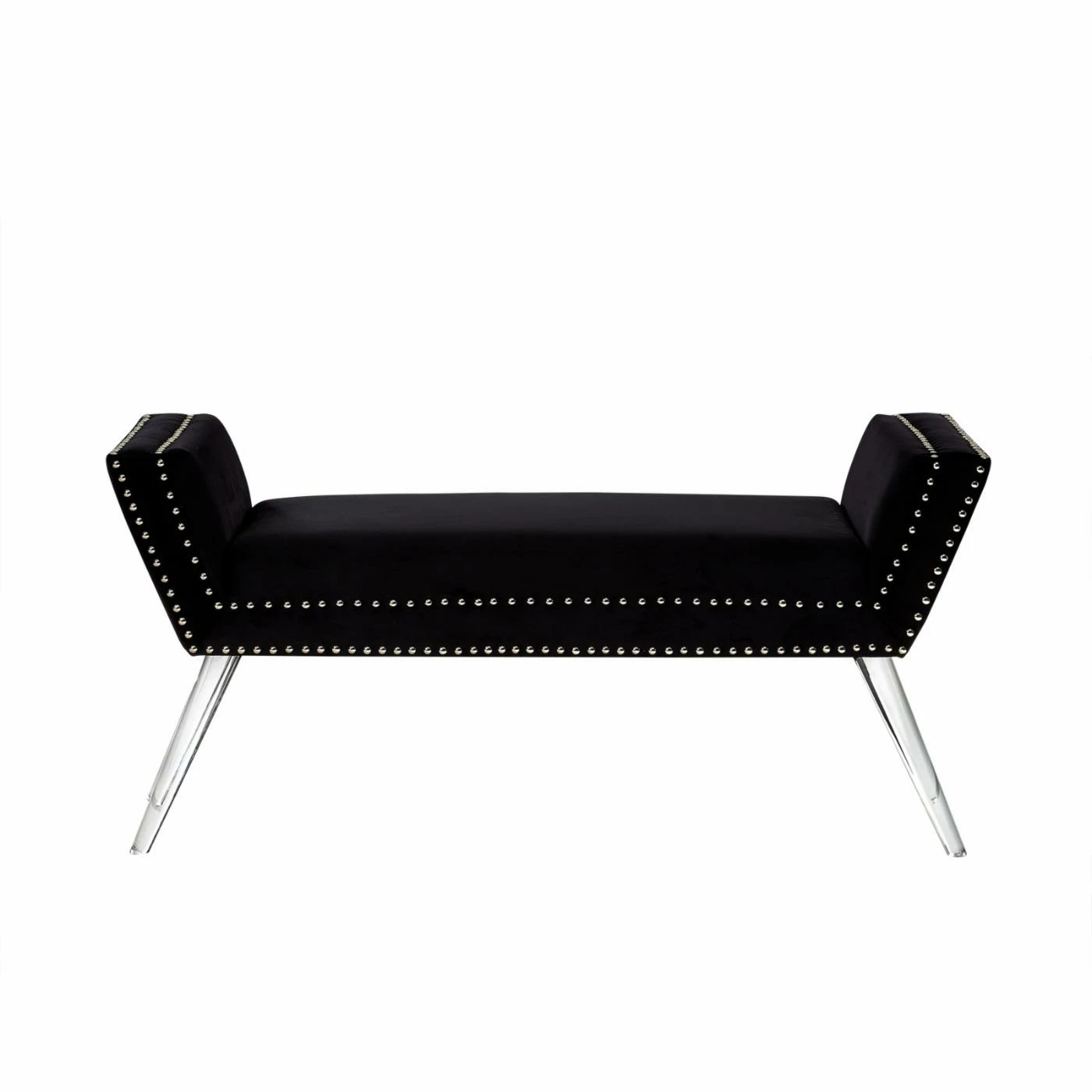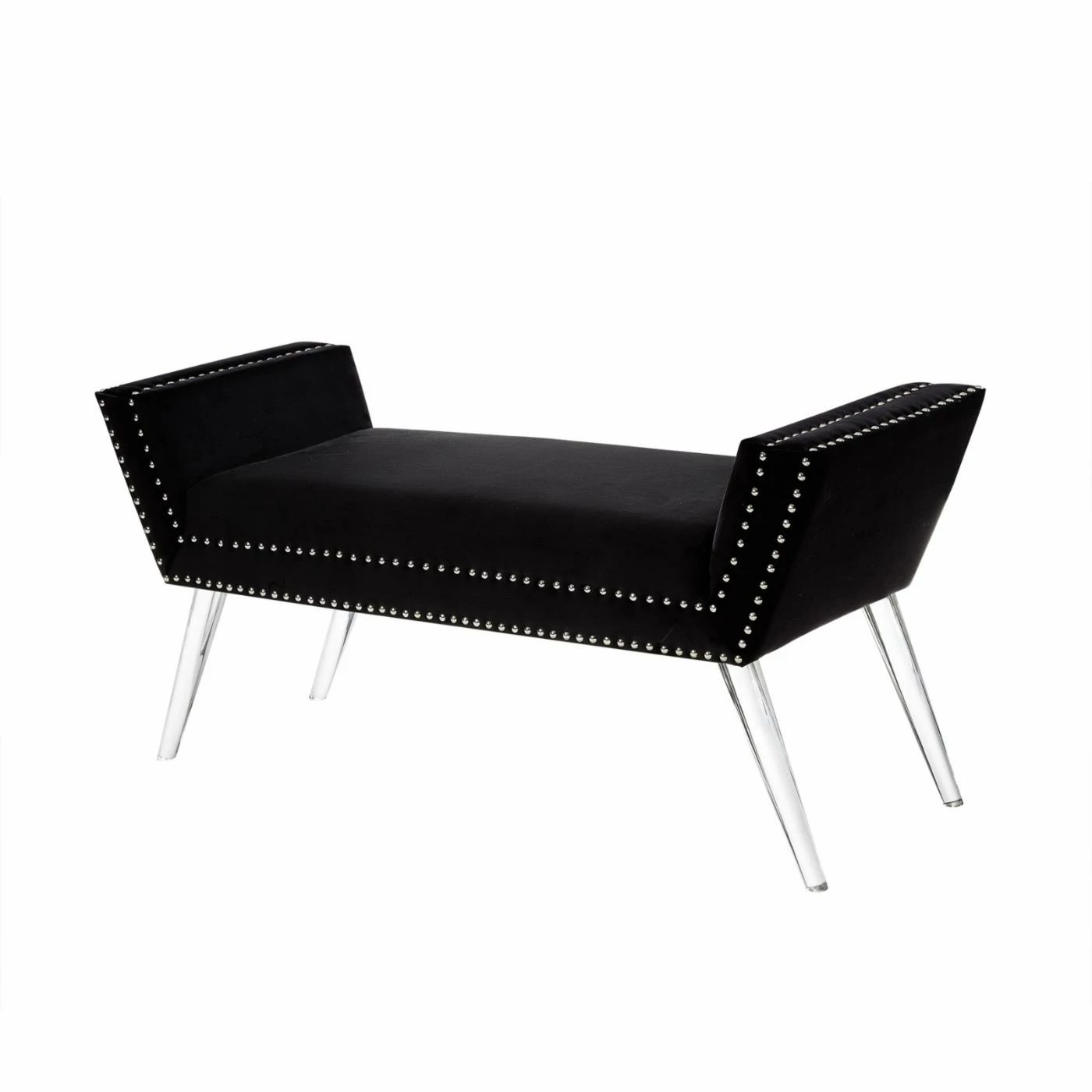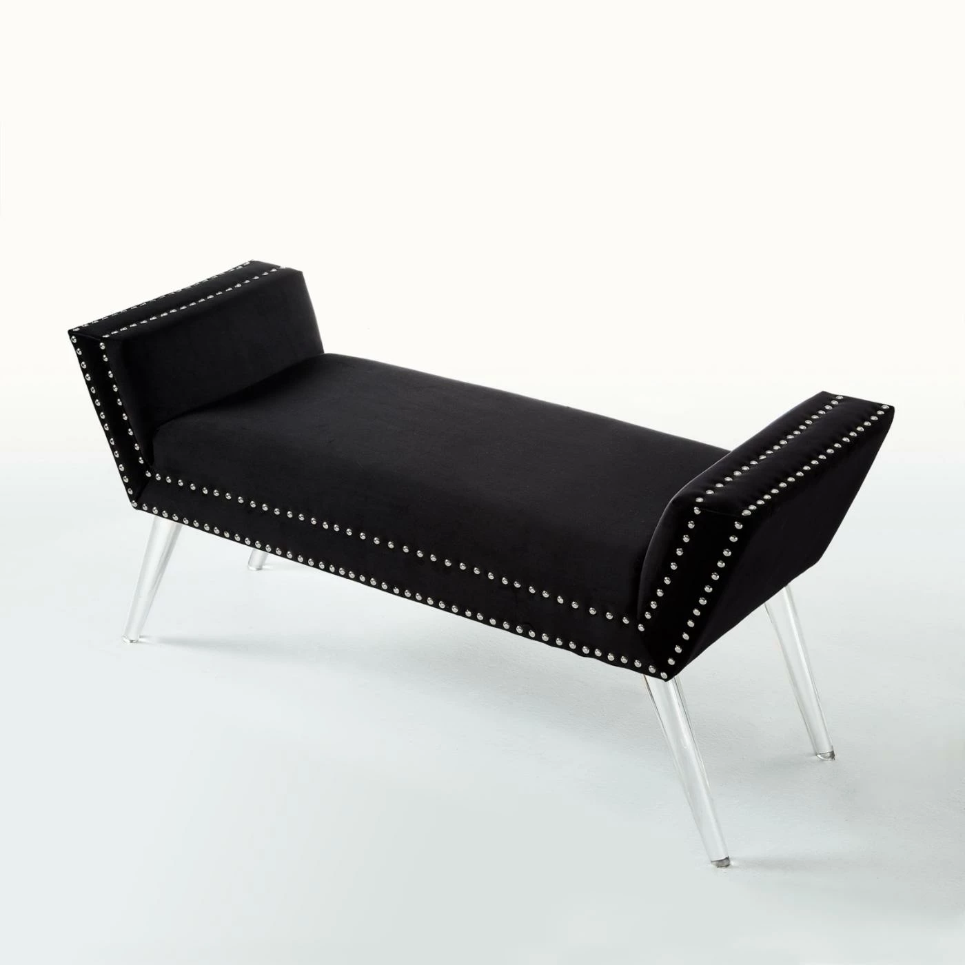 Bring a sense of modern glamour to your living room or bedroom with the Inspired Home Justin Contemporary Bedroom Bench. This bench features angled arms and a soft, upholstered seat. Clear acrylic legs and nailhead trim details complete the look of this decorative bench. Position it along a wall, at the foot of the bed, or anywhere you need additional seating in your home. Choose from available finish options to make it yours. Assembly required.