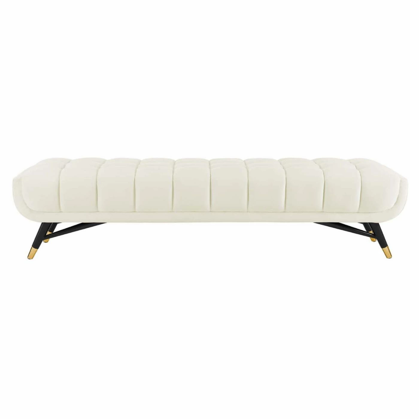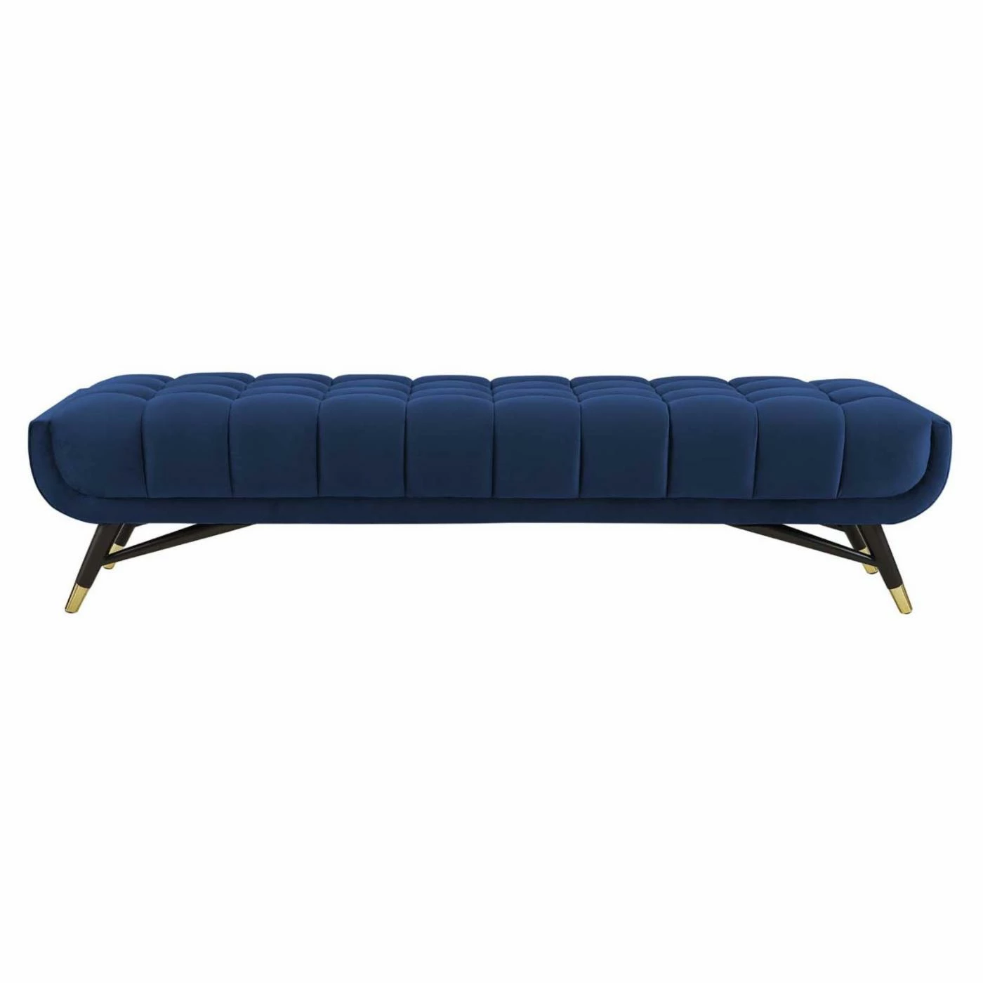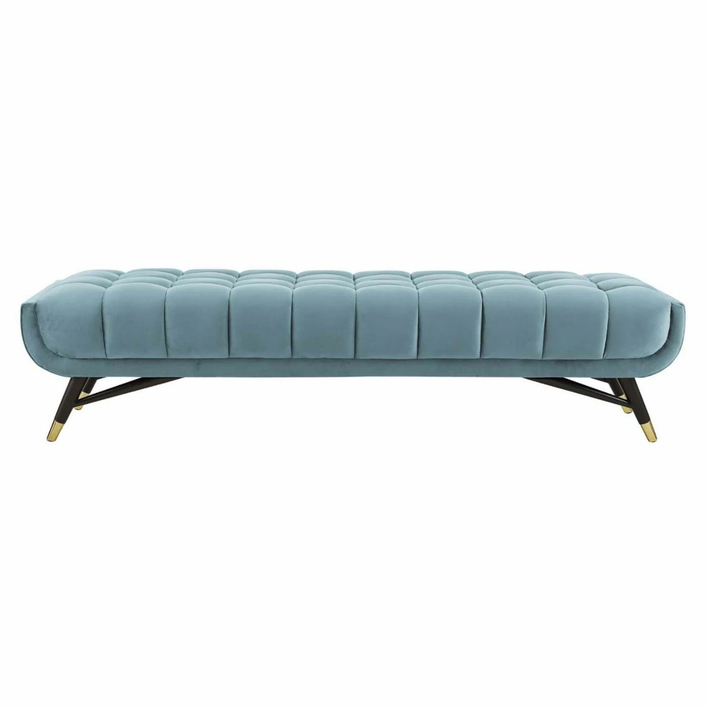 Exuding utter sophistication, the Modway Adept Upholstered Velvet Bench adds a contemporary element to any room with its luxe velvet upholstery. Generous tufting and your choice of available color makes this modern bench a fabulous addition to your home. The bench sits on a splayed birchwood frame and legs in a bold black finish, topped with gold metal end caps for a touch of glam.