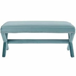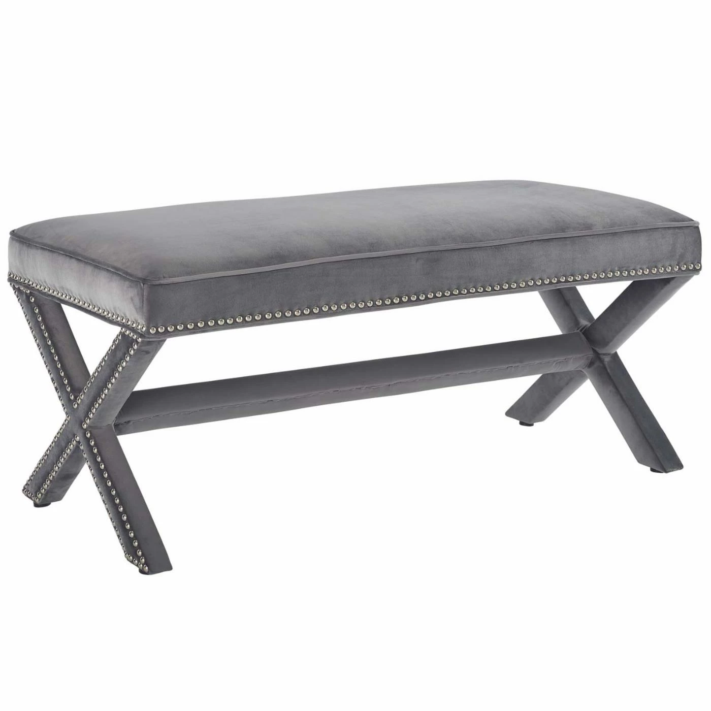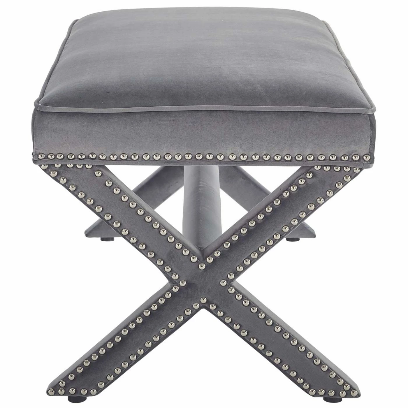 Add a comfortable and stylish spot in your entryway with the Modway Rivet Upholstered Velvet Bench. The double pedestal X base with a middle bar creates an intricate design on this fabric bench. This bench is constructed from rubberwood and plywood that is covered in stain-resistant velvet polyester upholstery. The fabric arrives in your choice of available color. The seat and base feature a nailhead trim for an extra style detail.