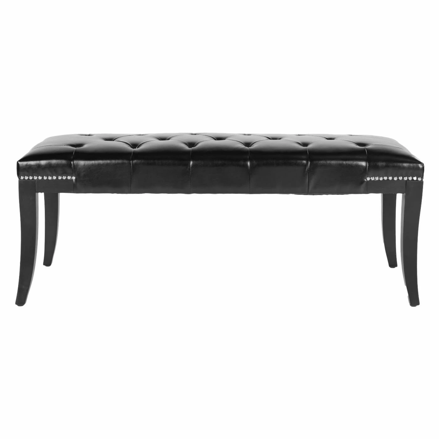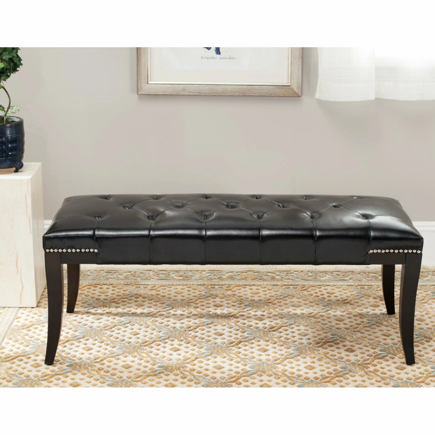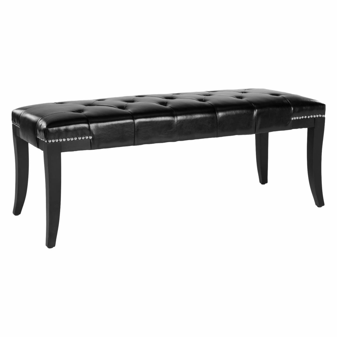 Elevate your style with the contemporary Safavieh Gibbons Backless Tufted Indoor Bench. The durable birch wood frame is finished in a rich espresso and upholstered in black leather to create a look that complements most spaces. With its silver nailhead trim and button tufting adding a sophisticated air, this bench is a stunning addition to your entryway, living room, or bedroom.