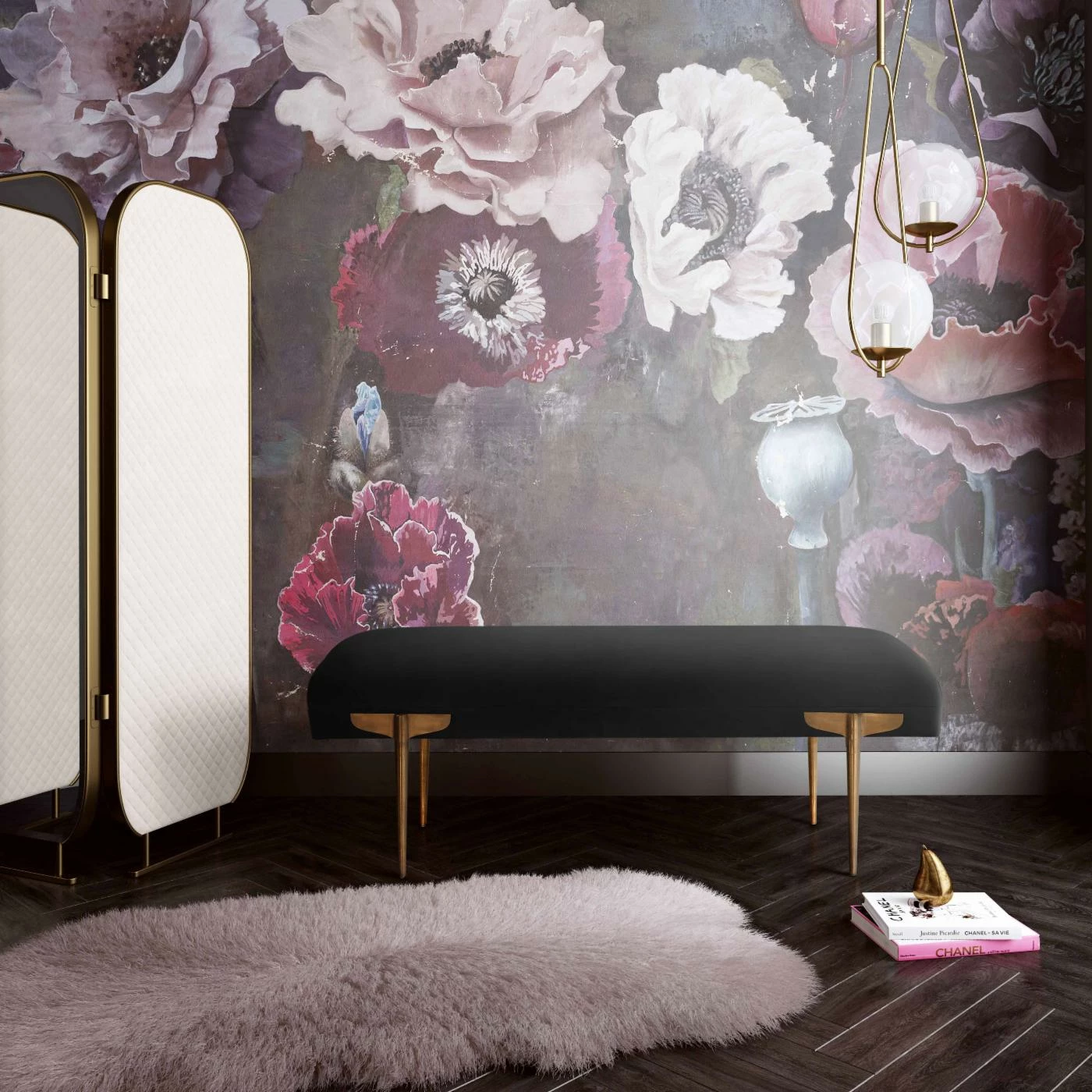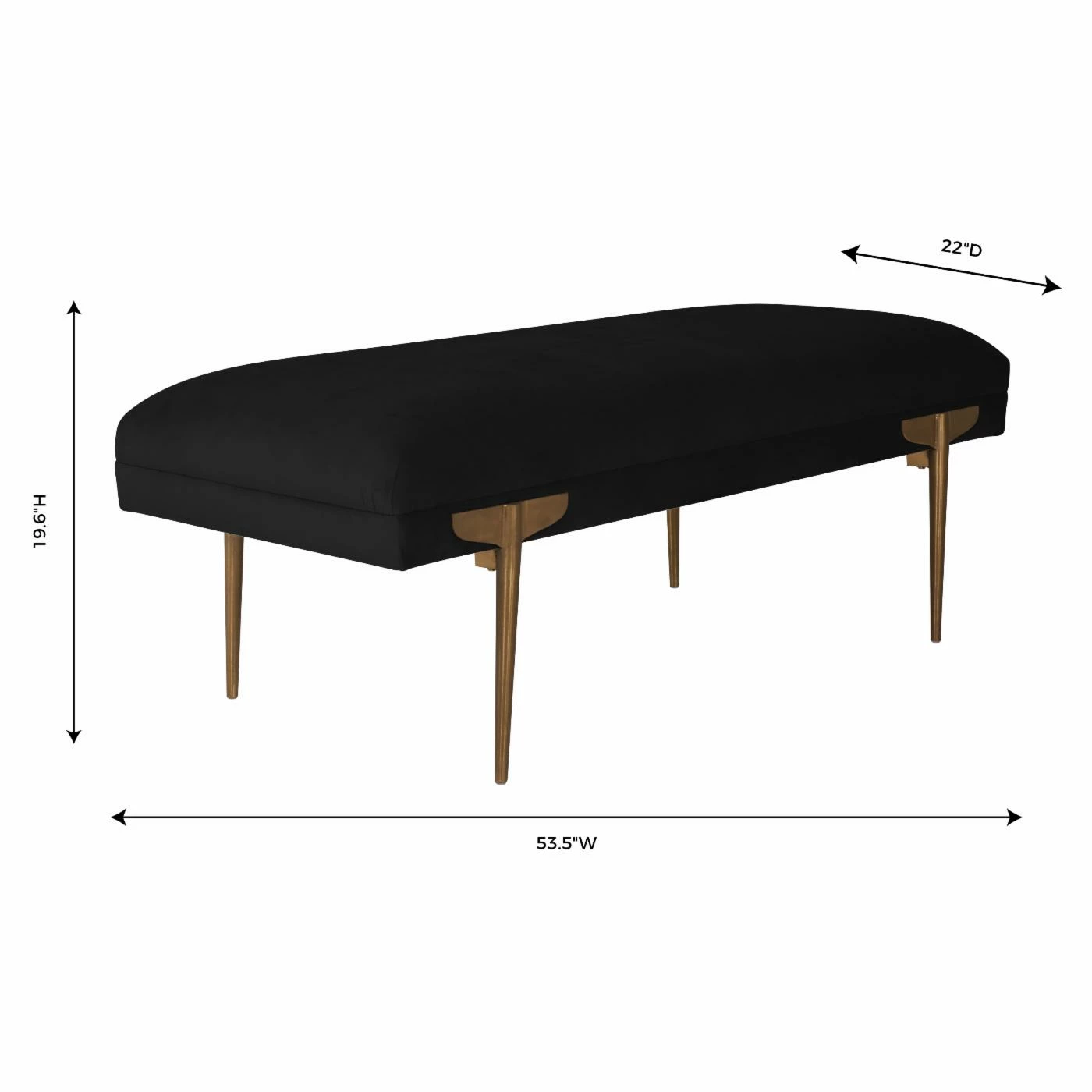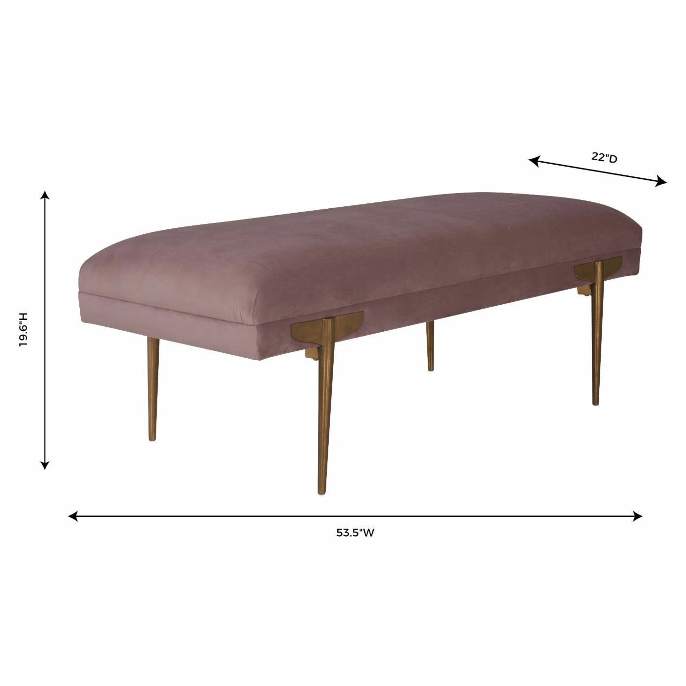 Place the TOV Furniture Brno Velvet Indoor Bench and really make a statement to guests about your modern-glam style. This indoor bench features a pine and birch frame with foam padding and plush velvet upholstery. Choose from available velvet colors to complement your palette. Stainless steel tapered legs have a gold finish for a taste of mid-century modern style. This bench is handmade by master furniture craftspeople and requires some assembly.