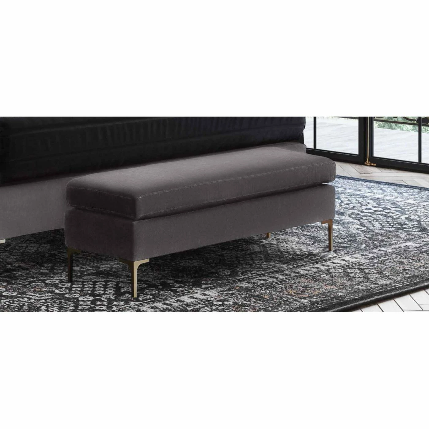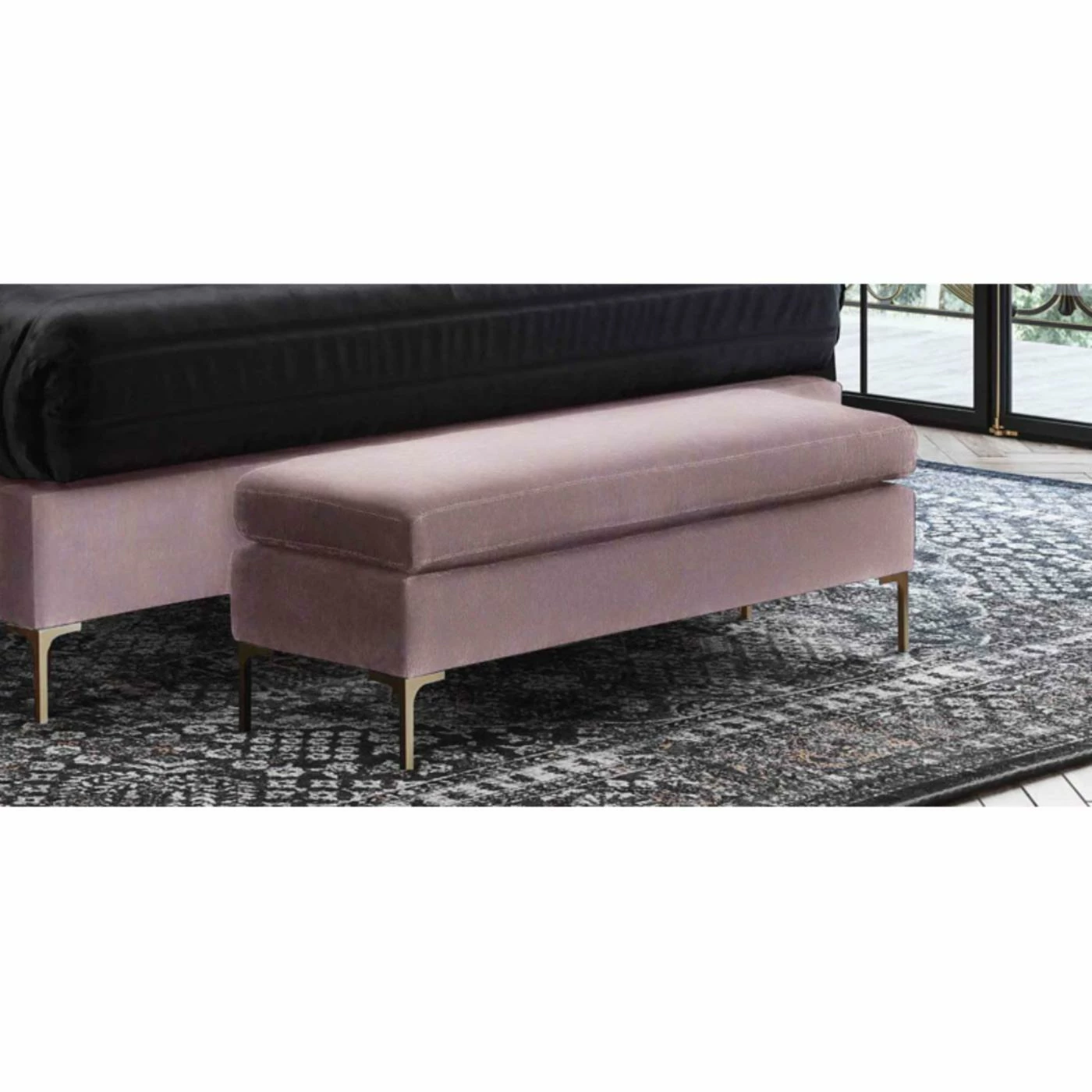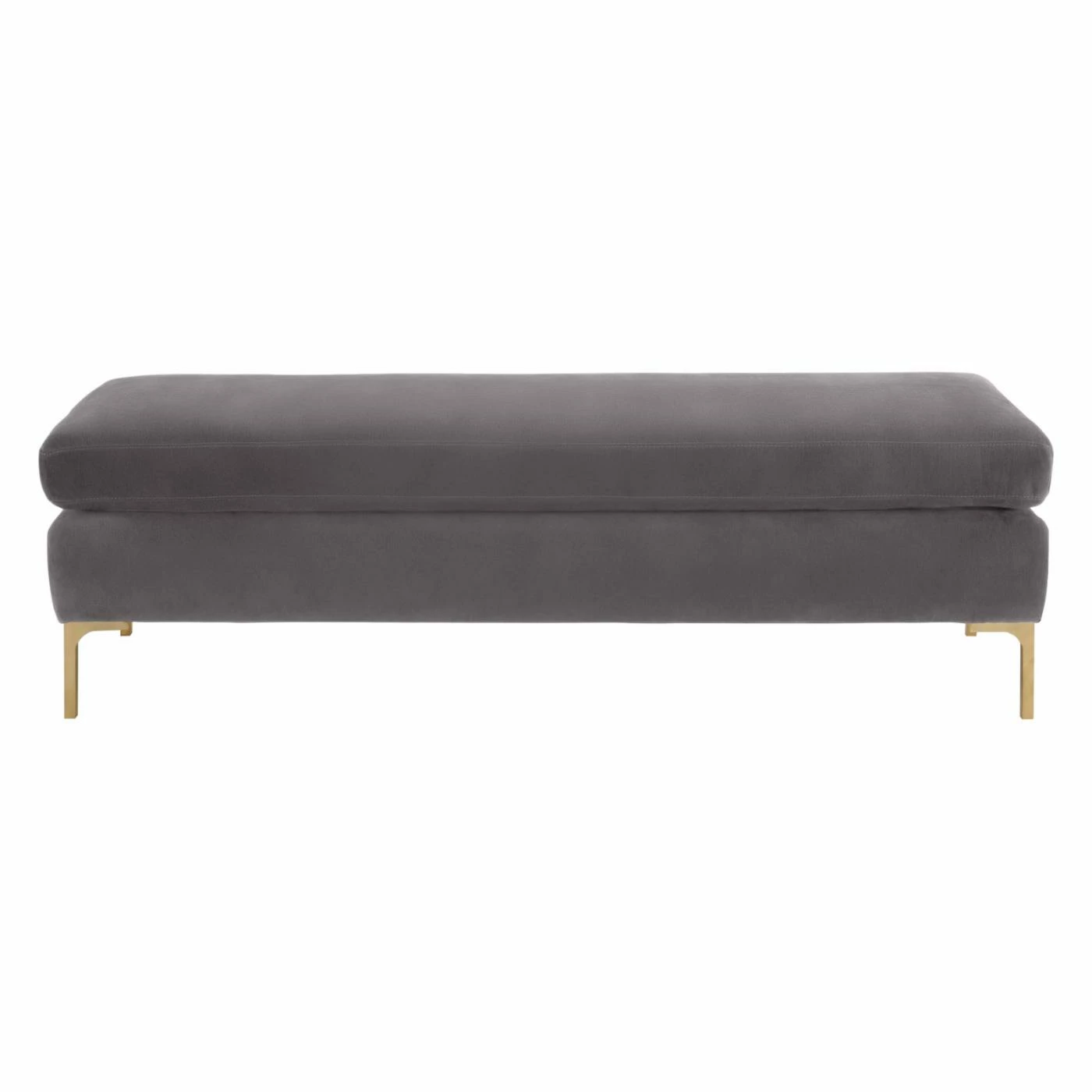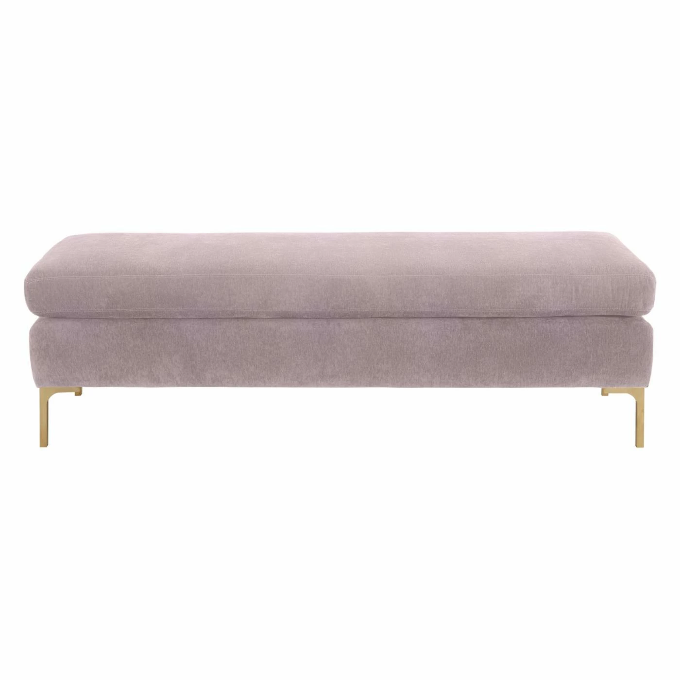 Finish your bedroom remodel with the TOV Furniture Delilah Velvet Upholstered Backless Bedroom Bench. Boasting a transitional design, luxurious velvet upholstery in your choice of available colors, and legs finished in gold for a touch of glam, this bench is a gorgeous addition to any bedroom. The strong and durable handmade kiln dried wood frame ensures this bench will last. Pair this bench with the TOV Furniture Delilah Velvet Upholstered Platform Bed to complete the look.