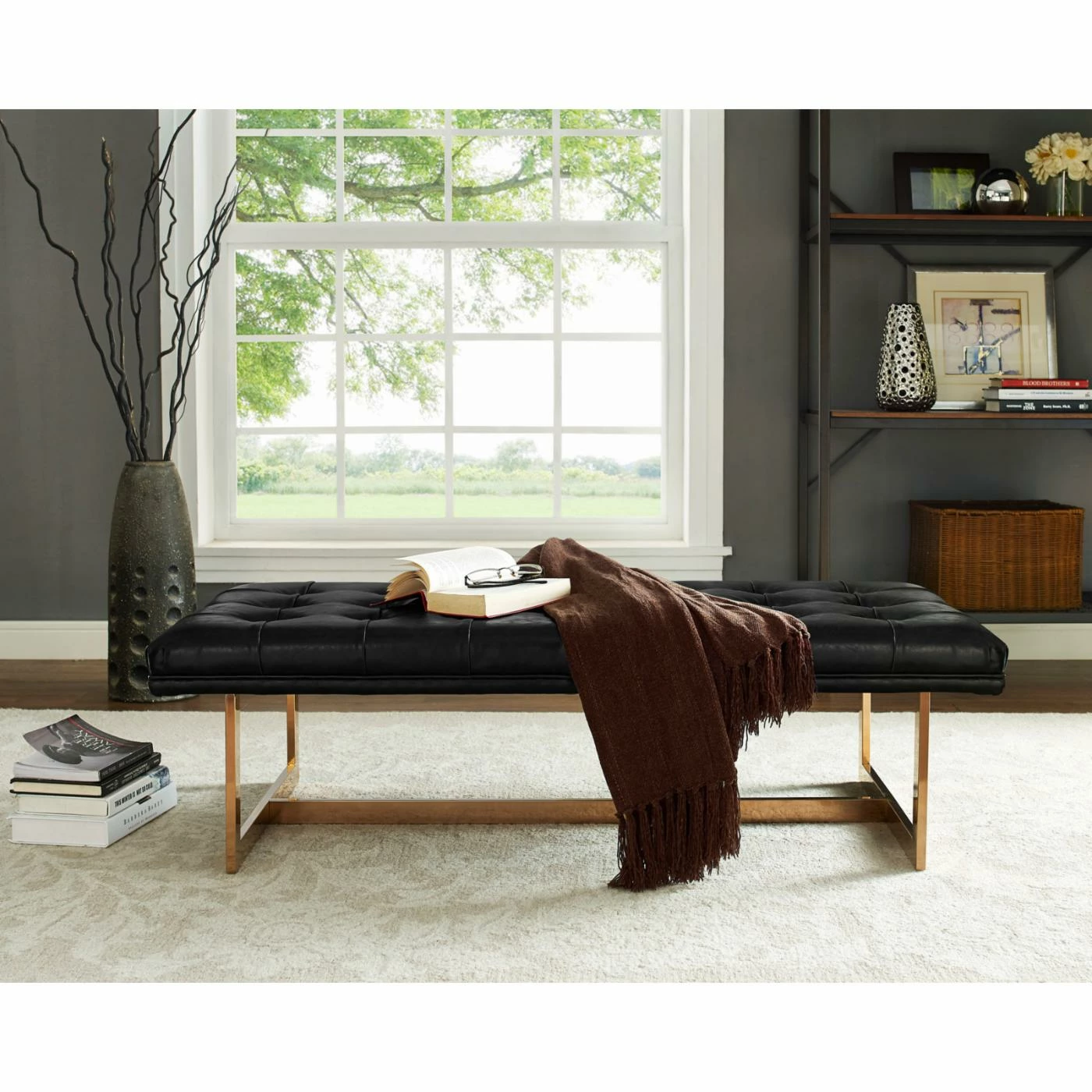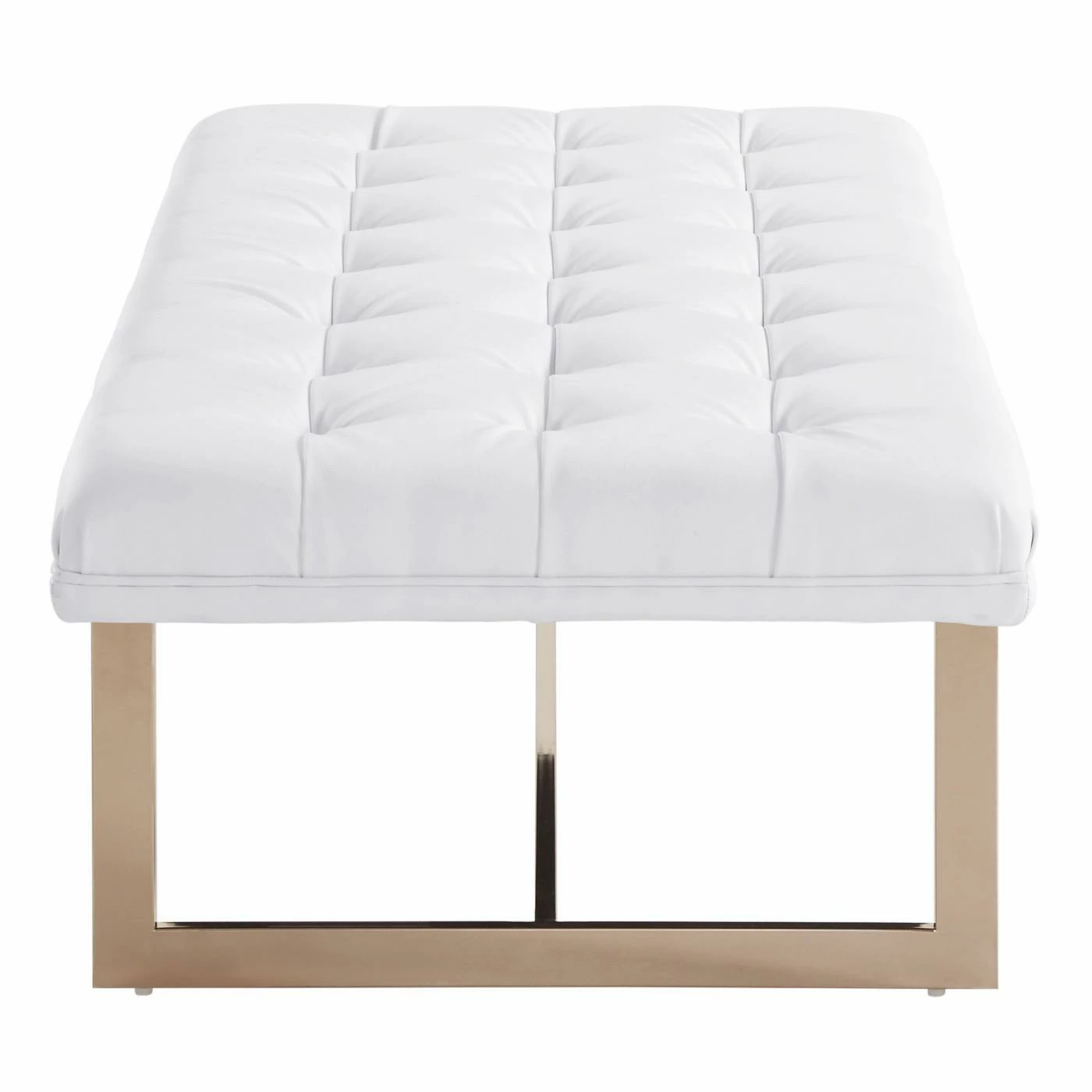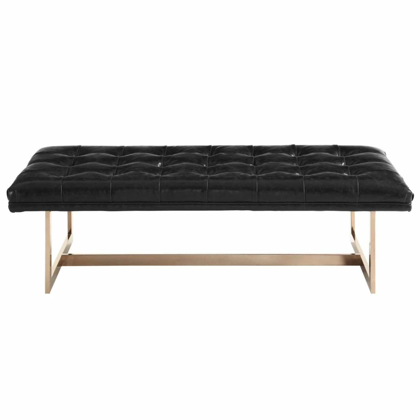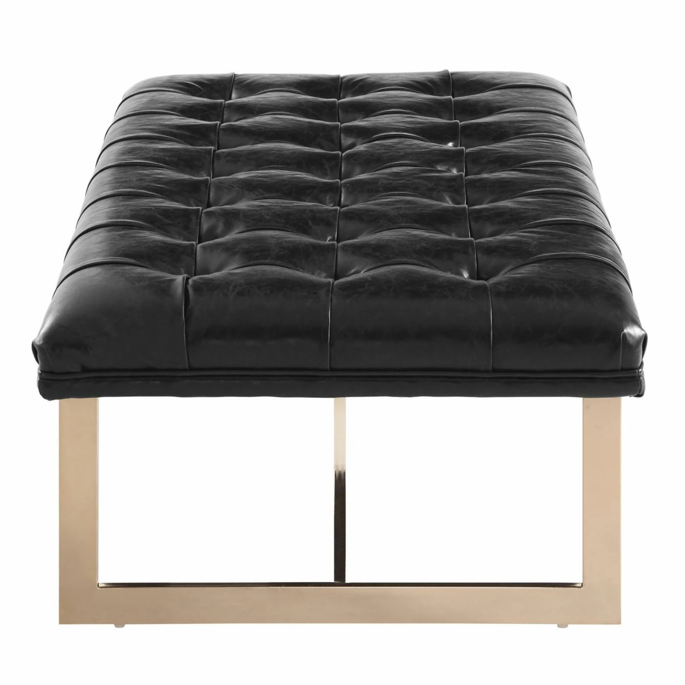 Add some glamour to a seating area, a hallway, an entryway, or a bedroom with the TOV Furniture Oppland Faux Leather Bench. This sturdy handcrafted bench features a sleek, gold stainless steel base and a button tufted top cushioned with supportive high-density foam. Offered in your choice of available colors, the upholstery is eco leather, a material that looks and feels like genuine leather but is vegan, durable, and simple to care for.