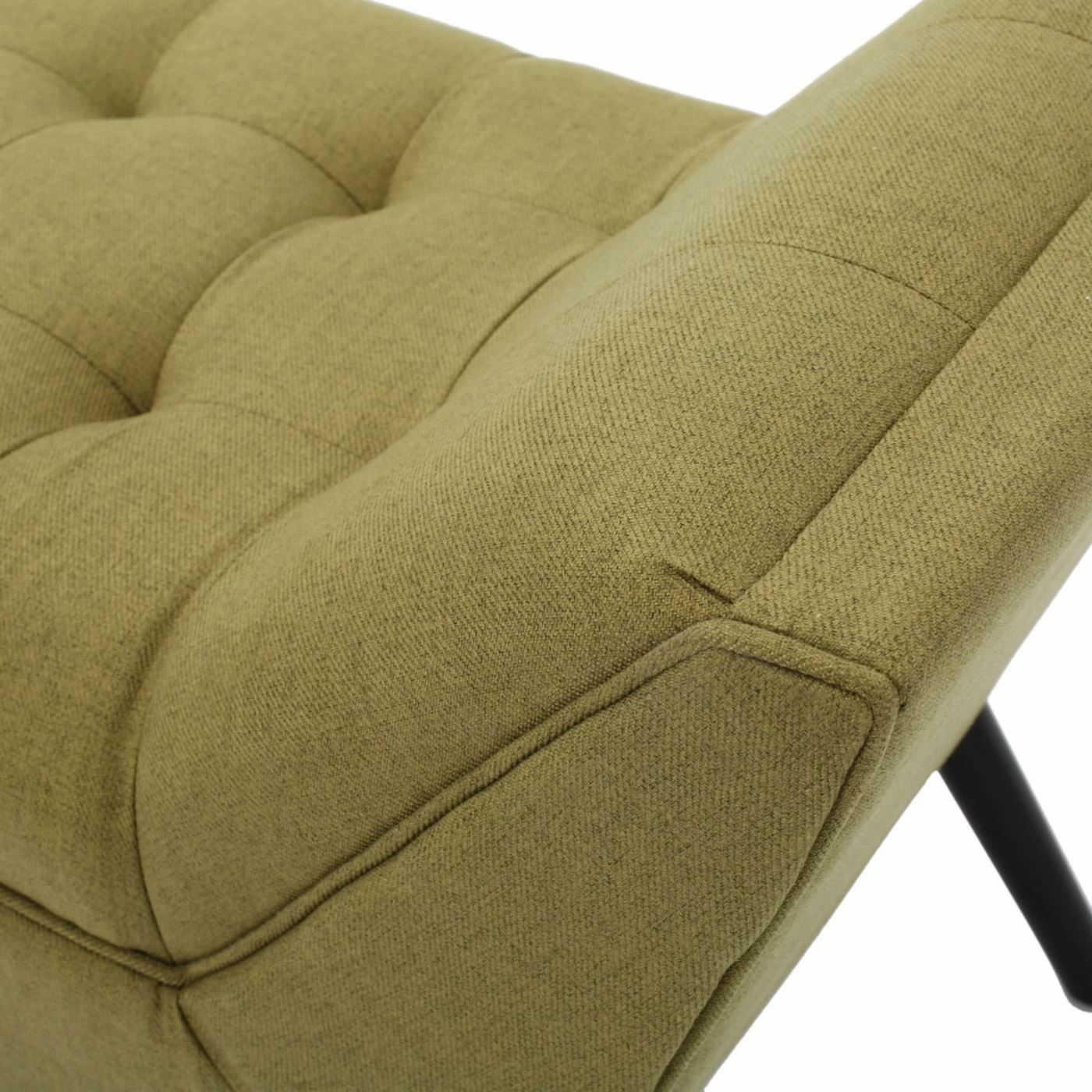 Angular lines bring ultra-modern style to the Harris Fabric Indoor Bench. This comfortable, contemporary bench is highlighted with a thick padded seat and includes fabric upholstery with tufted accents. The slanted wood legs are finished in black to give it a dramatic finishing touch.