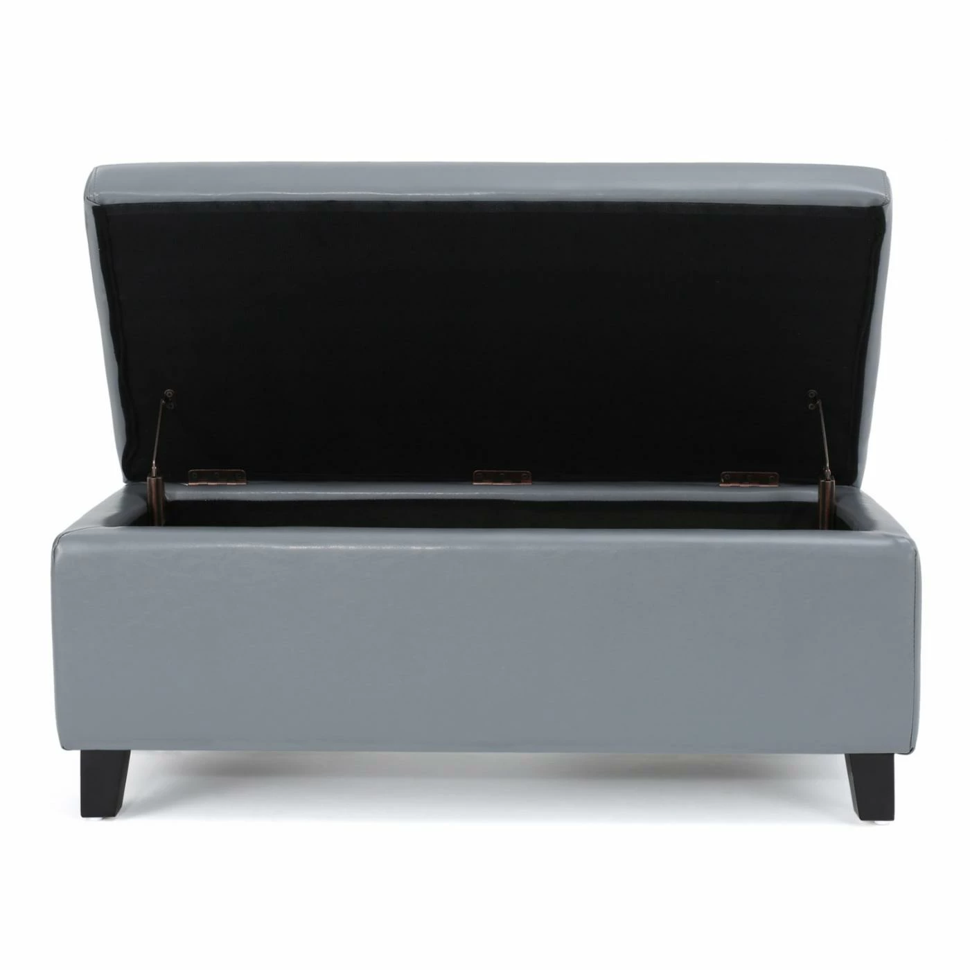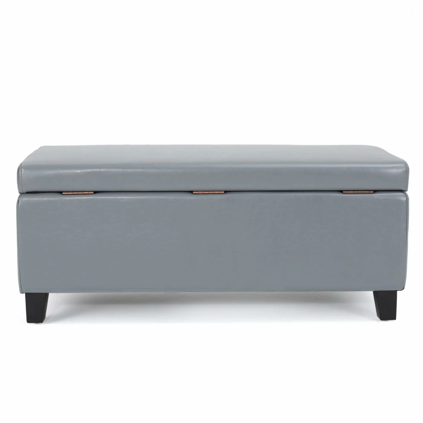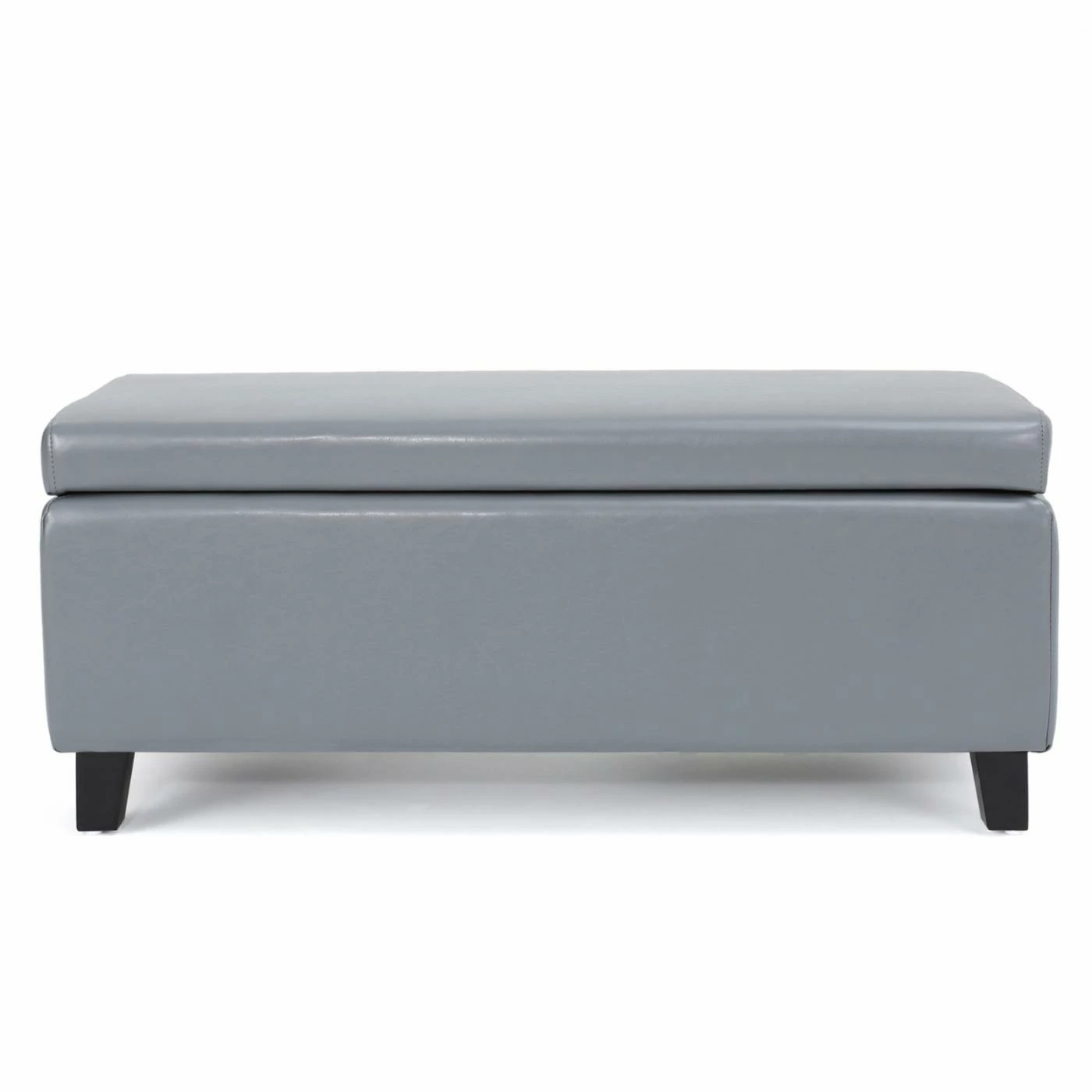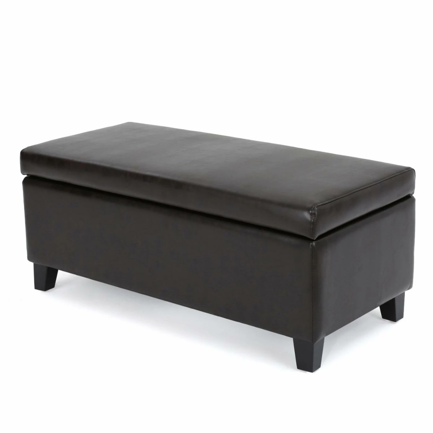 Add style and versatility to any space with the Brahma Leather Storage Ottoman. This bench-sized ottoman is crafted from birch wood and features a padded faux leather upholstery offered in a choice of available colors. Its primary attraction is its handy storage system, which includes a hinged lid that opens to reveal a hollow interior. Ideal for tidying up clutter around the living room, this ottoman is sure to make a functional and fashionable addition to your home.