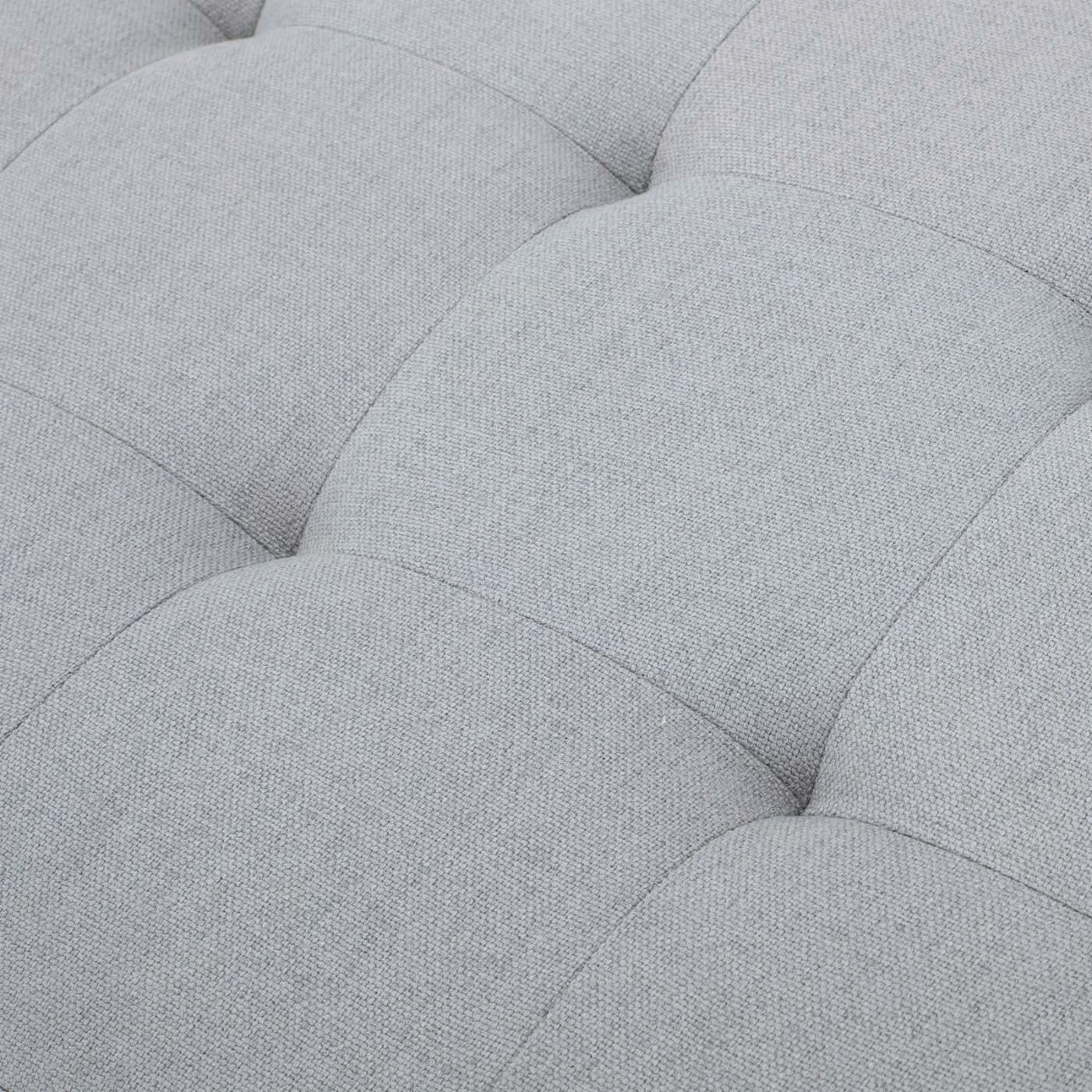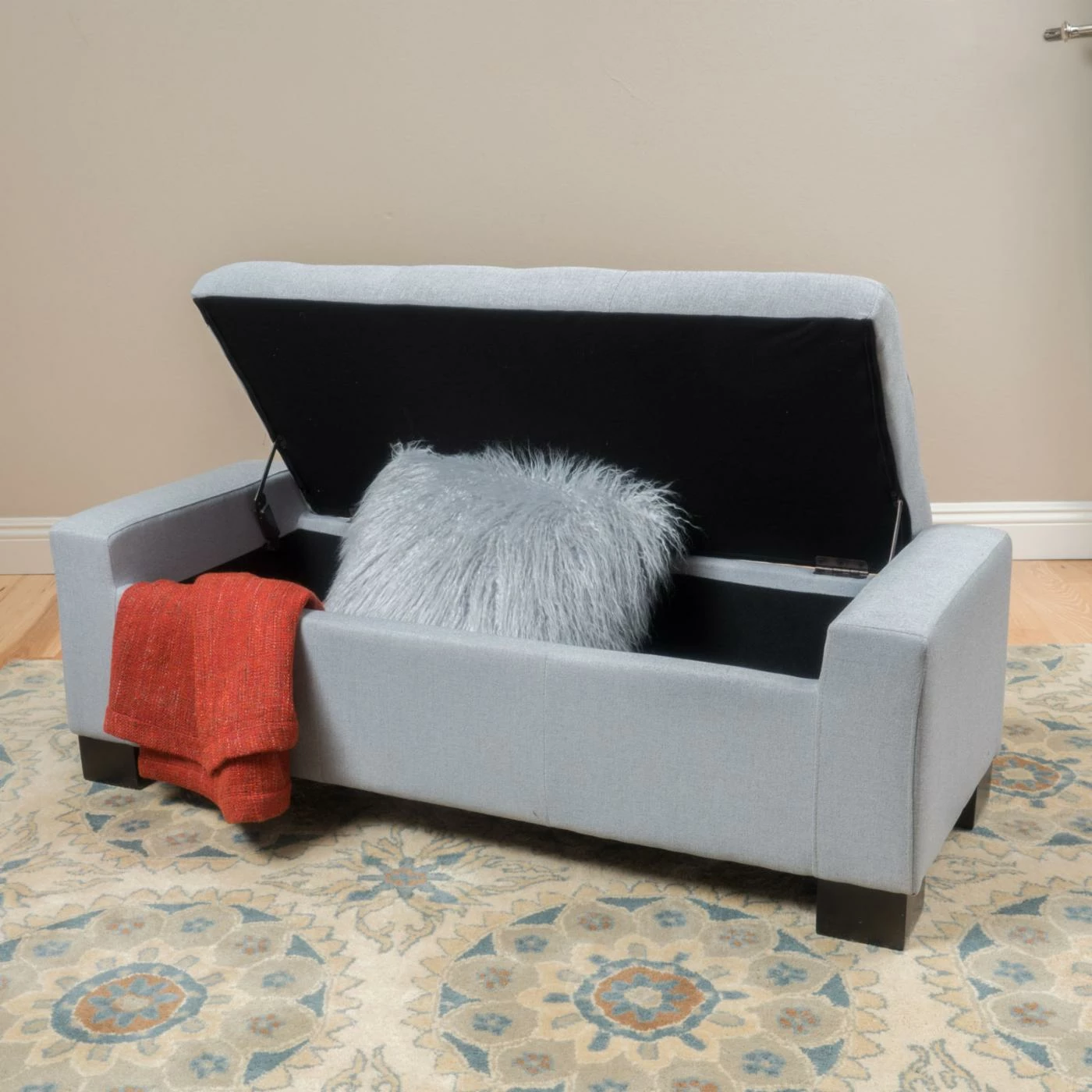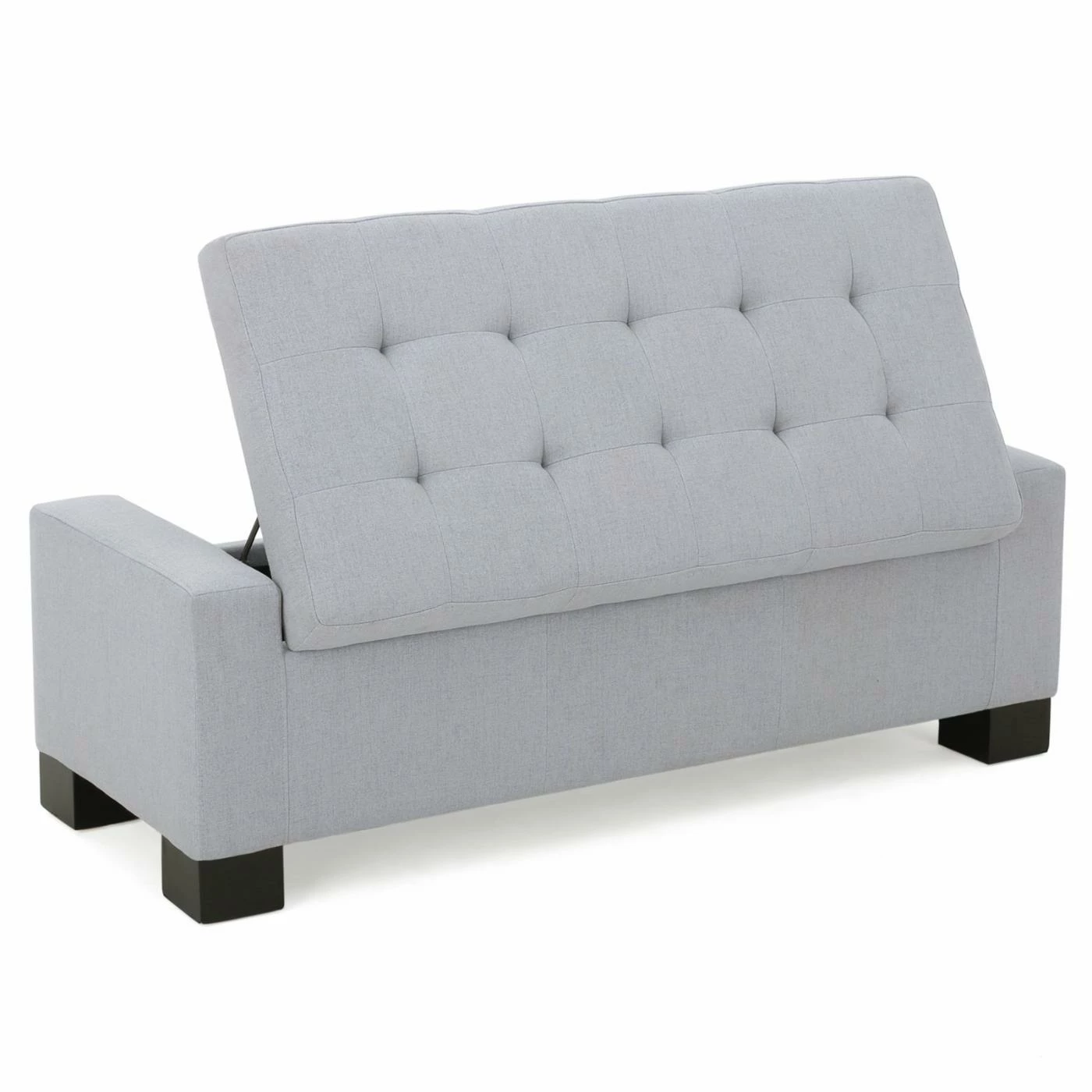 The Gorosei Fabric Storage Ottoman updates your living area with sleek lines and convenient functionality. An uncomplicated silhouette upholstered in soft dove gray fabric, button tufting, and contrasting block feet give this storage ottoman a stylish, versatile design that complements almost any dรฉcor. The birch wood frame lends strength and stability to this accent piece that’s ideal for resting your feet or additional seating when needed. Topped with a hinged lid, this ottoman offers interior storage for frequently used items you’d like to keep tucked away to reduce clutter in your room.