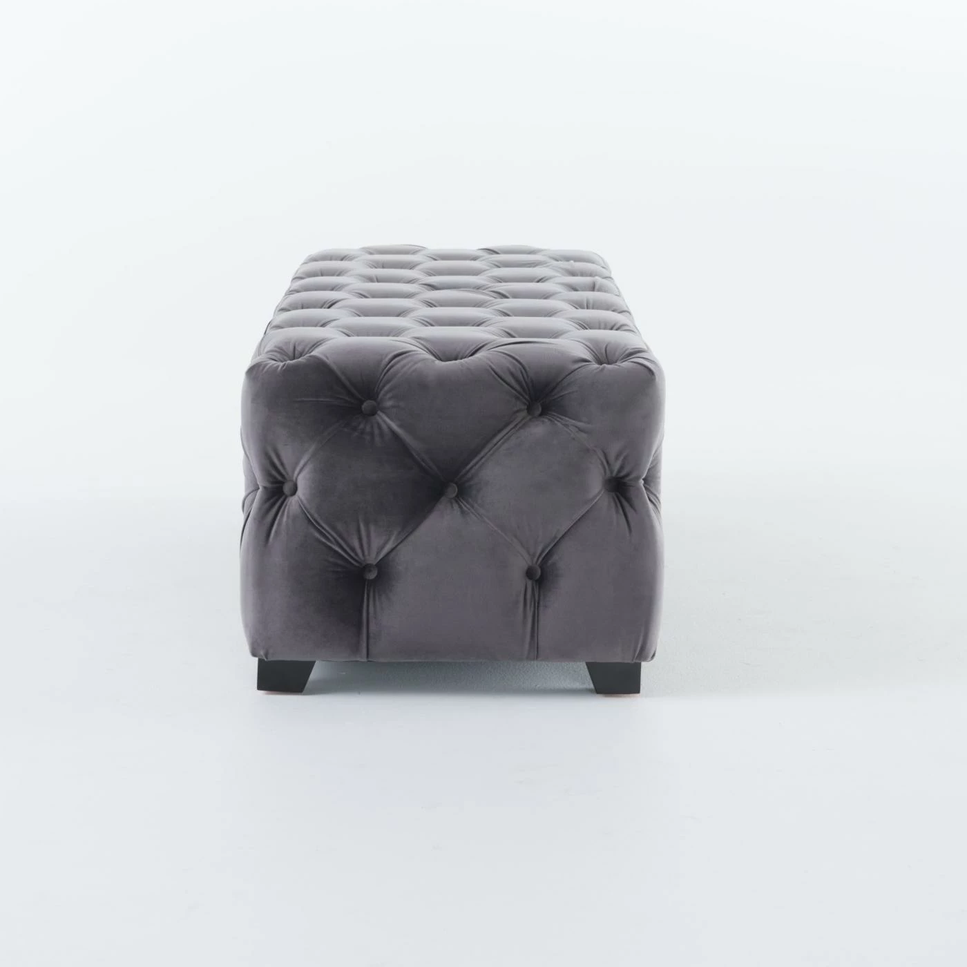 Plushy padded and deeply button tufted, the Piper Tufted Velvet Ottoman/Bench is luxuriously comfortable and effortlessly elegant. The spacious velvet-upholstered ottoman is large enough to double as a bench for extra seating in your living room. A birch wood frame ensures lasting durability no matter how you employ the piece.