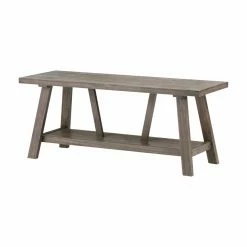 Your rustic dΓ©cor will shine with the addition of the Brooklyn + Max Everly Solid Pine Wood Entryway Bench. This bench has a sturdy wooden structure with a wire brushed driftwood finish. The trestle style supports give this rustic bench a unique touch.