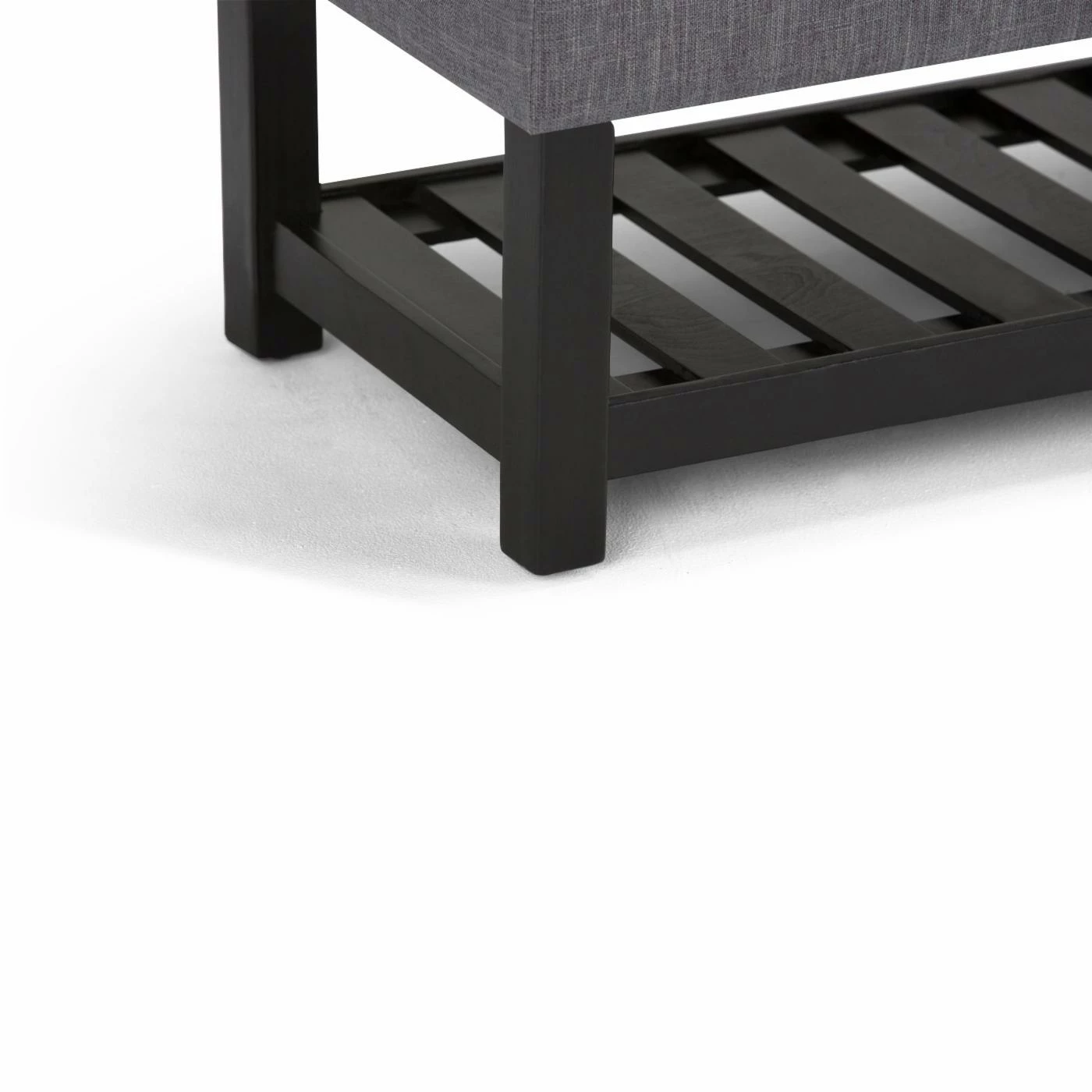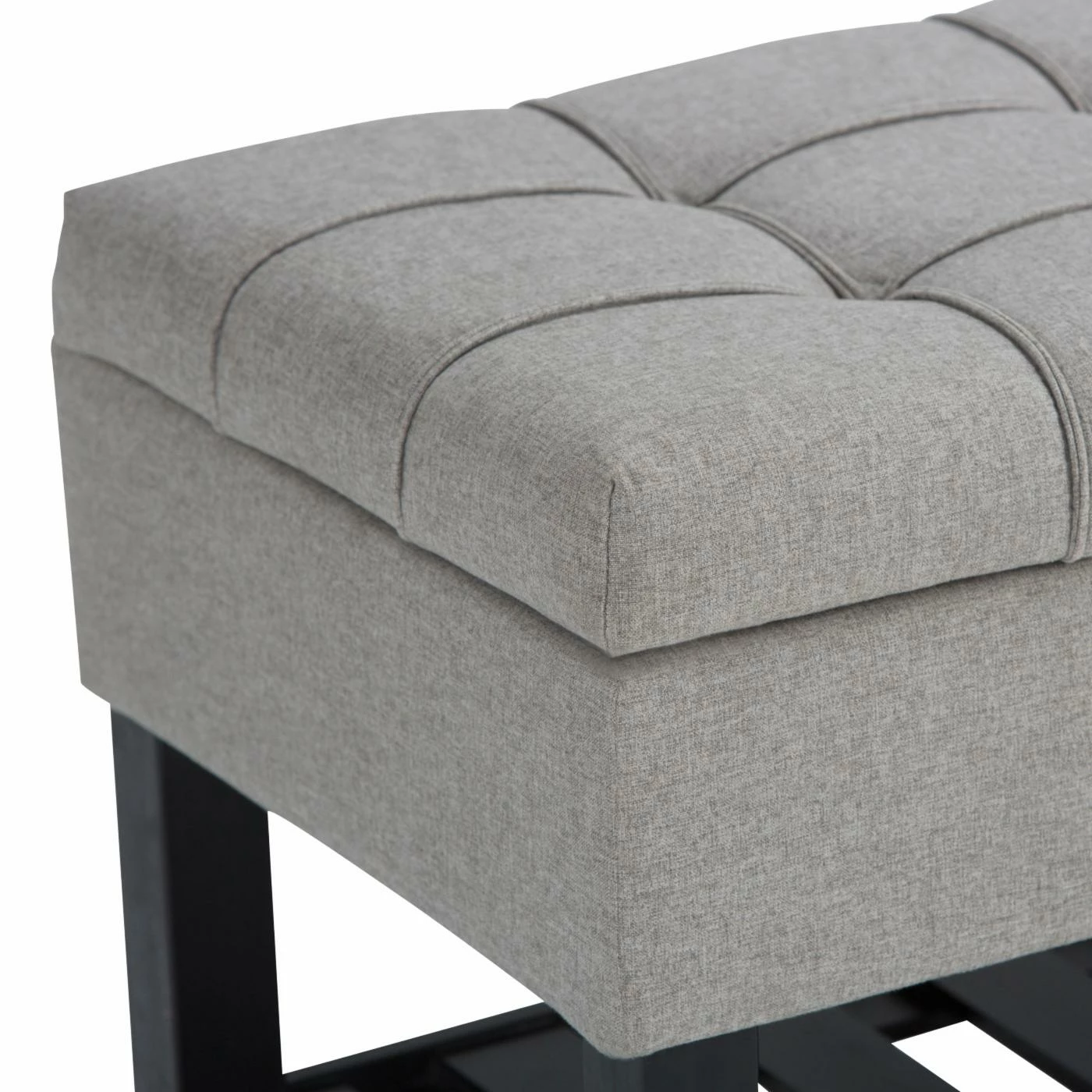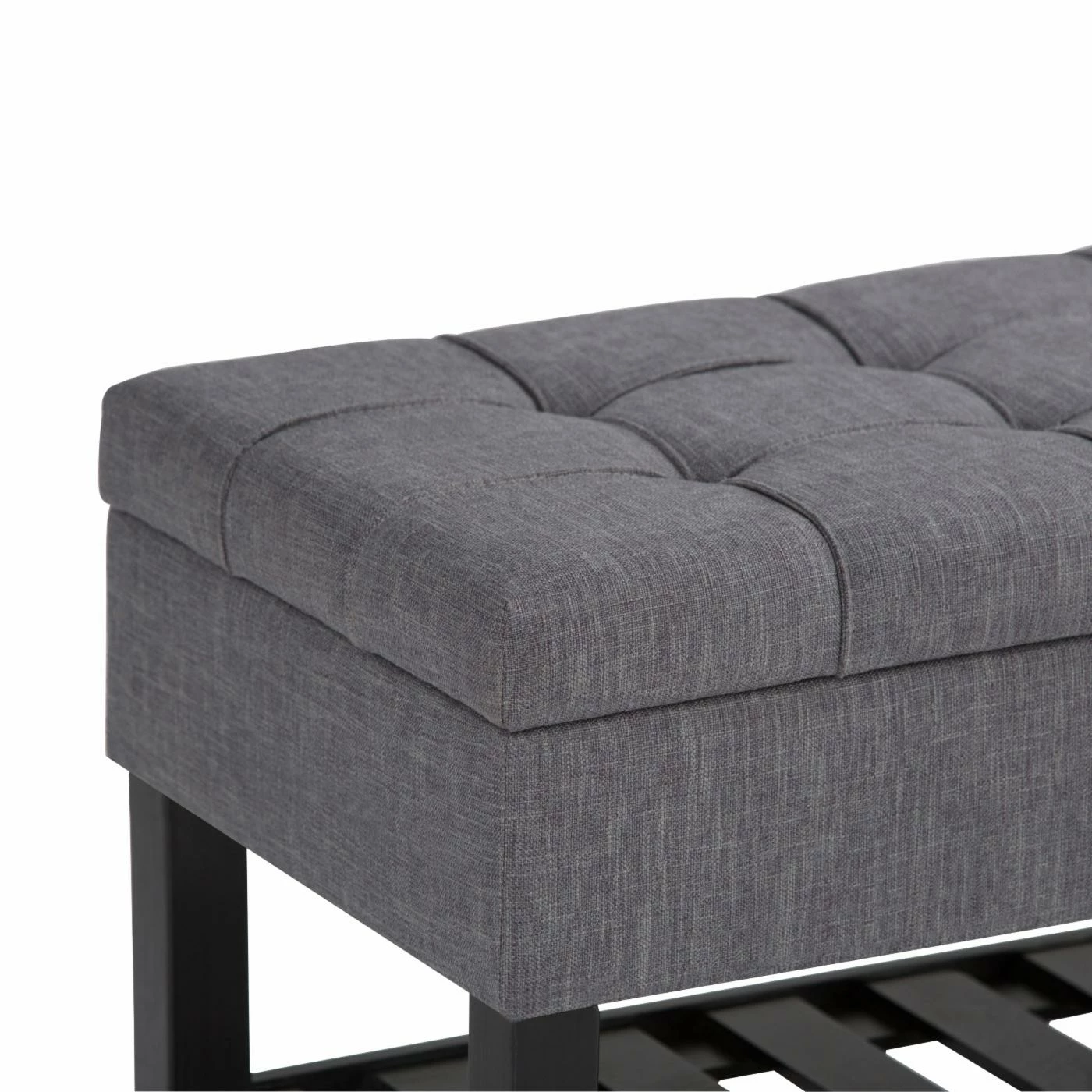 Add plenty of storage space to your home with the Brooklyn + Max Hayden Storage Ottoman Bench. This bench is perfect for small spaces or apartments that need just a little more storage. With a unique tufted top and a slated lower shelf, this bench has all you need in a new piece of furniture.