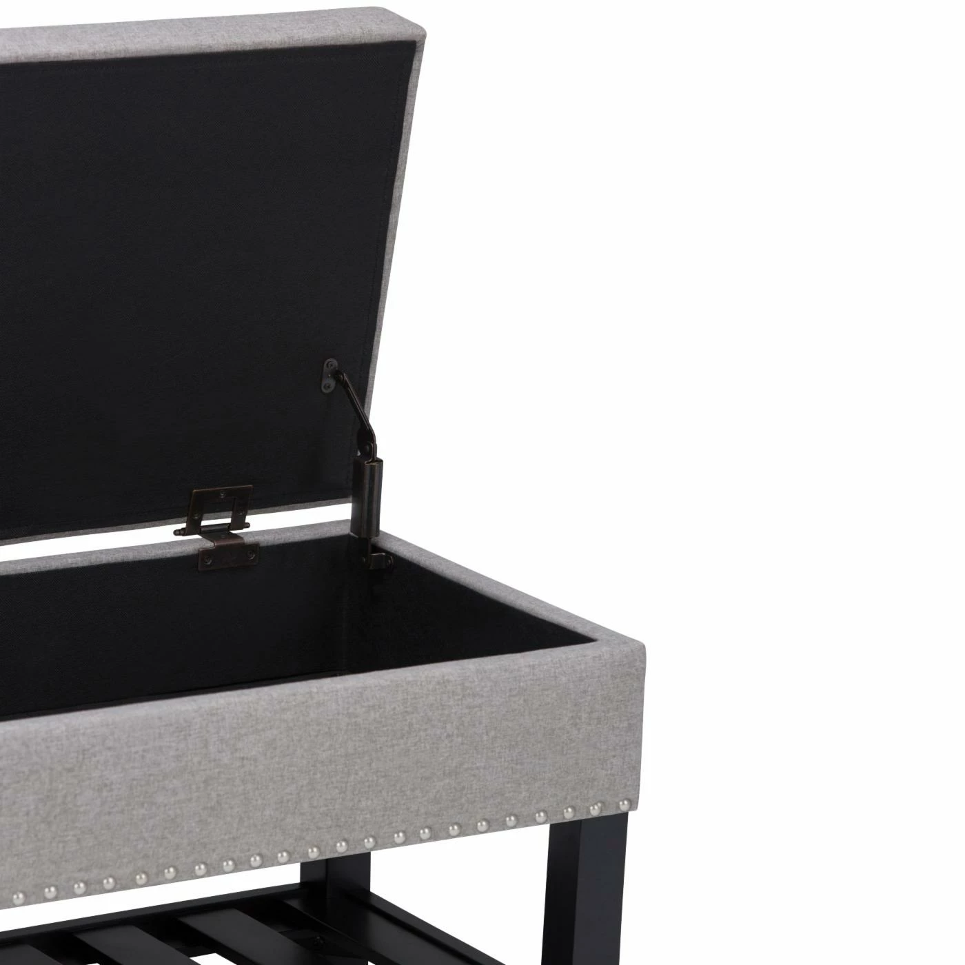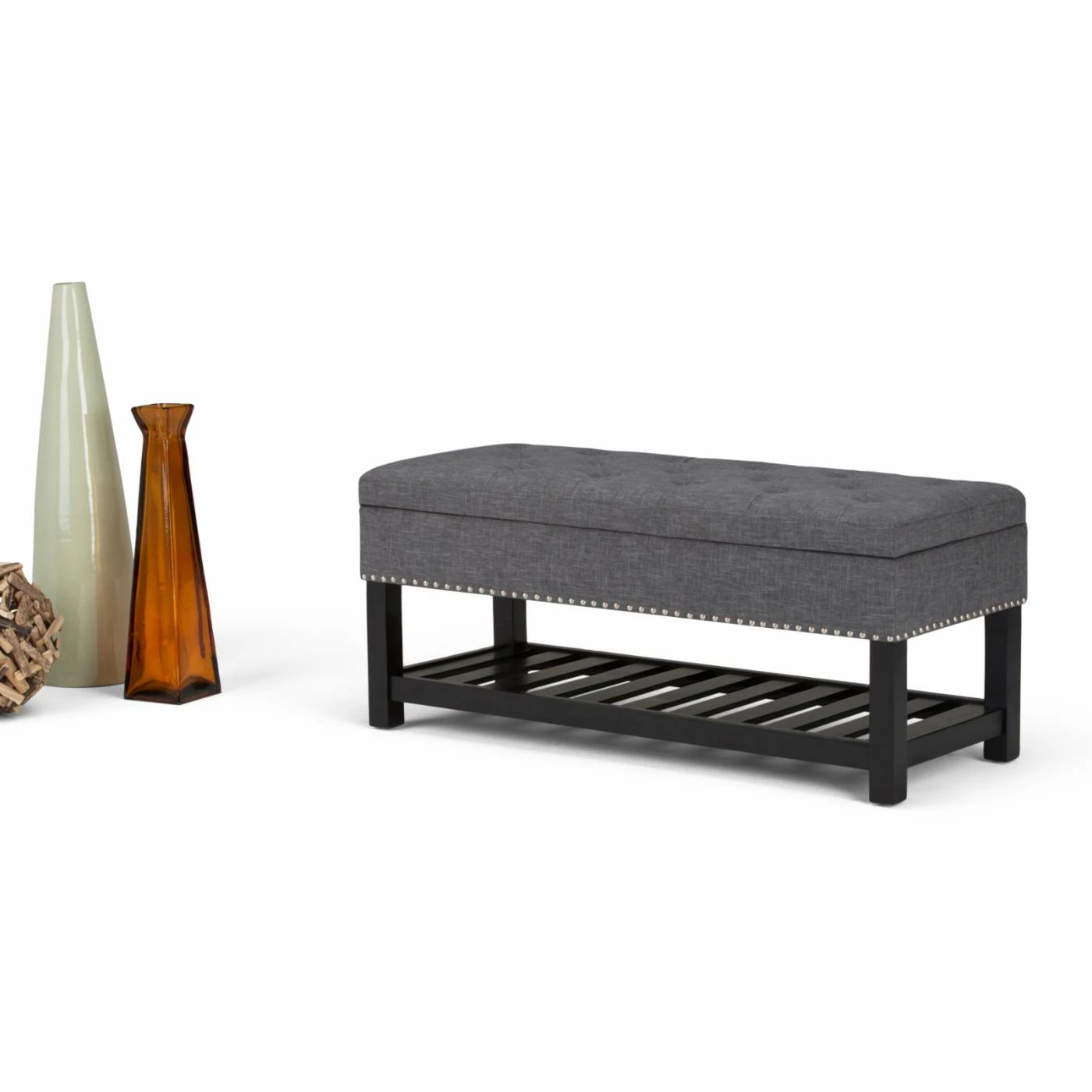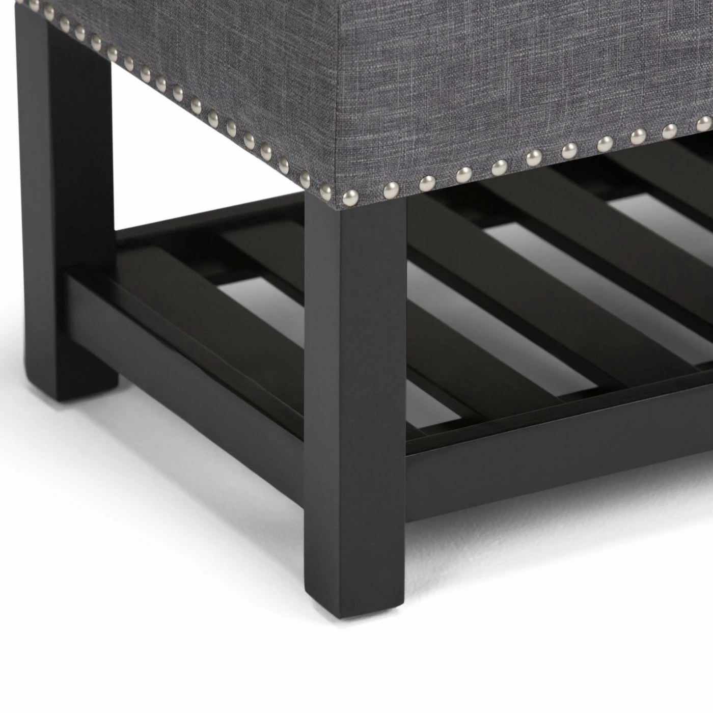 Bring a twist of modern and traditional style to your home with the Brooklyn + Max Joshua Storage Ottoman Bench. The slated bottom shelf is ideal for blankets or shoes. The inner storage compartment holds anything you have laying around.