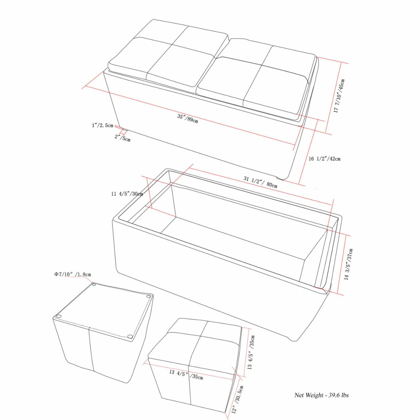 - Bench dimensions: 35.5W x 17.7D x 16.5H in.