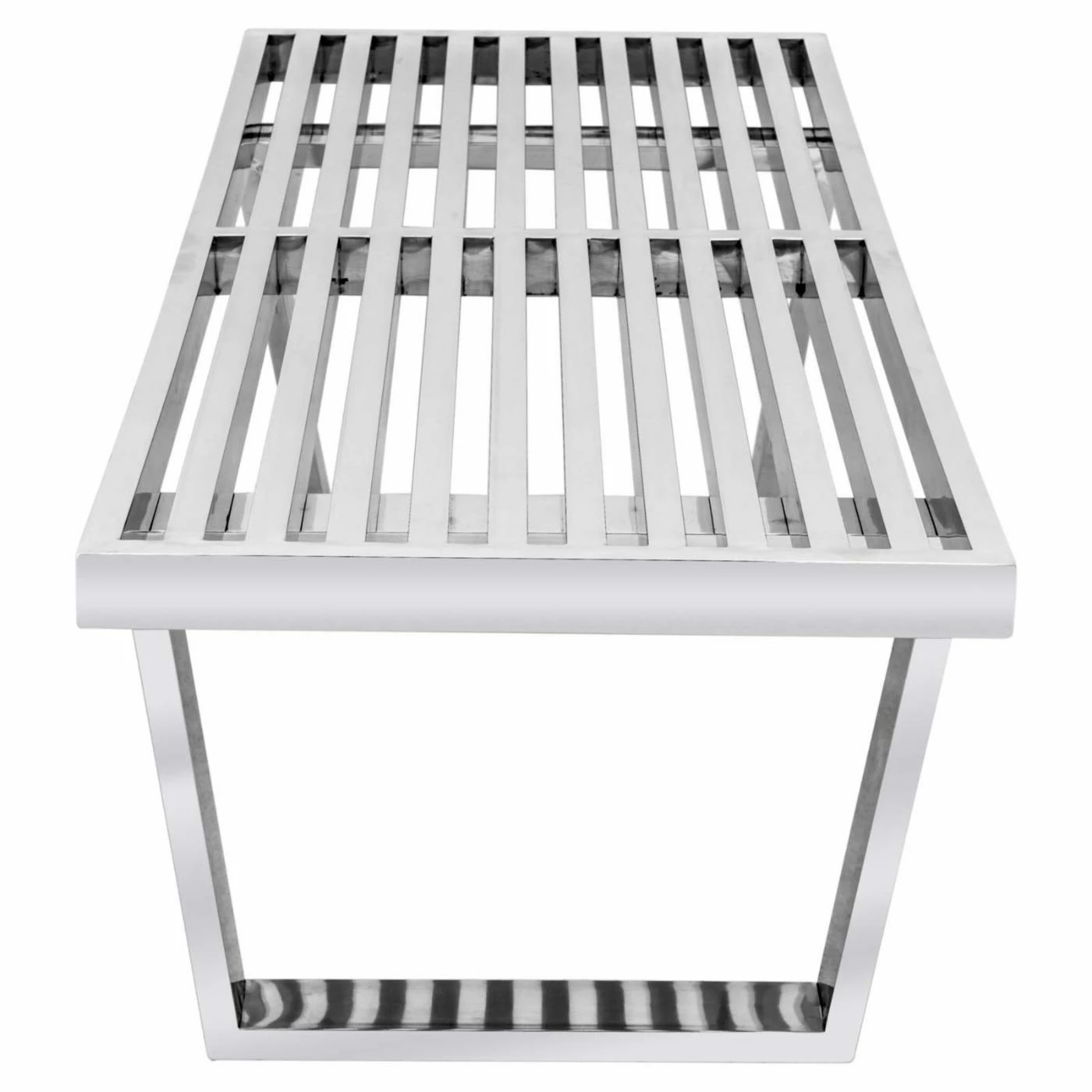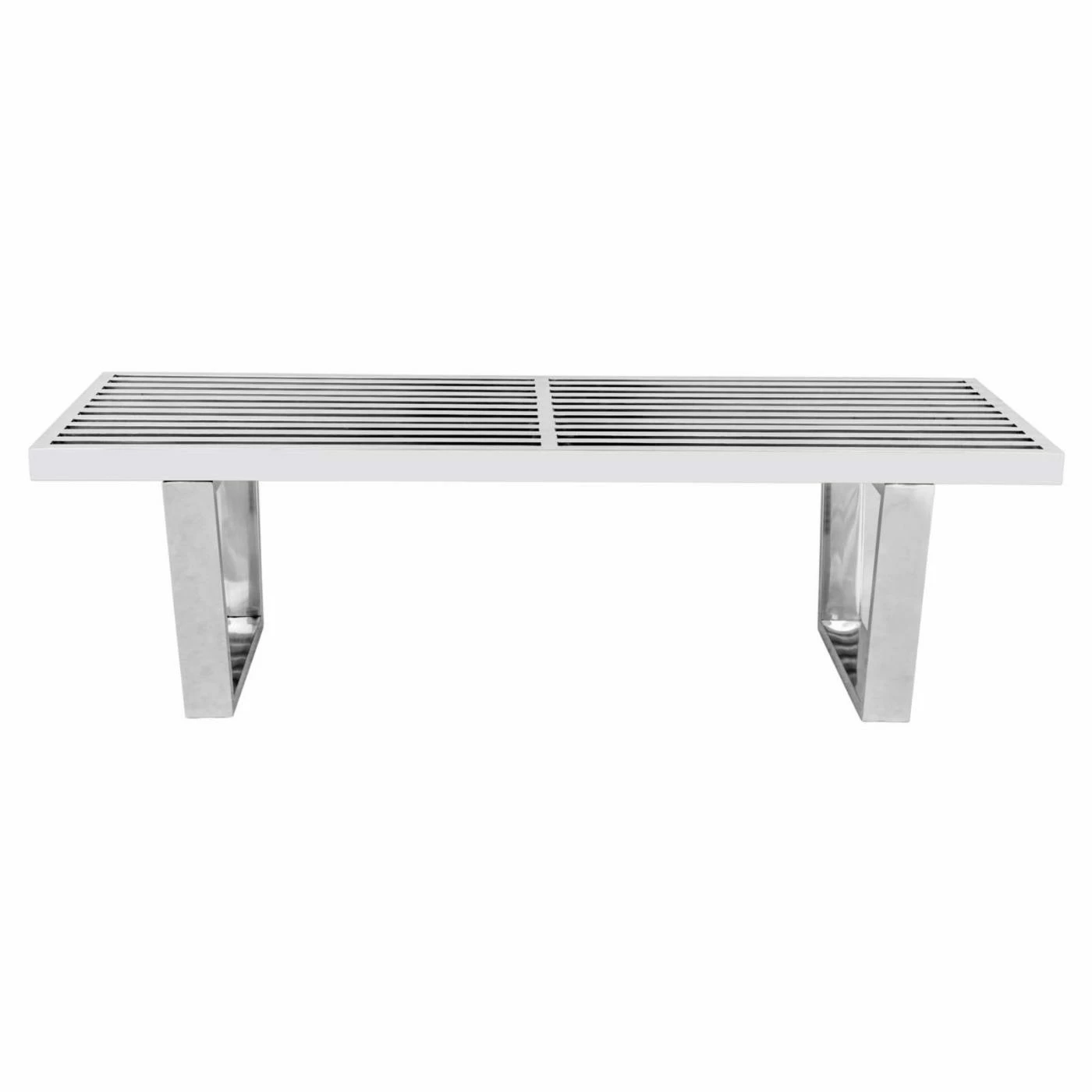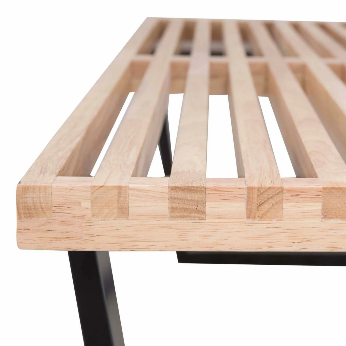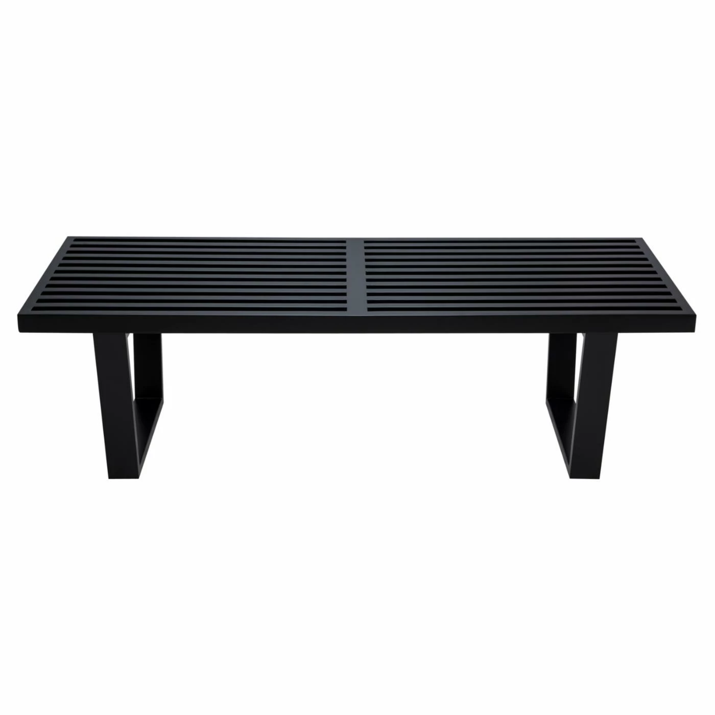 Enjoy timeless style with the backless LeisureMod Platform Slat Inwood Bench. It features a clean, simple look with evenly spaced, open slats on the seat. Several finish options offer loads of styling versatility. Cross supports and finger-jointing on the legs provide extra durability. This bench can be used for residential or commercial spaces, and it comes with gliders to protect your floors.