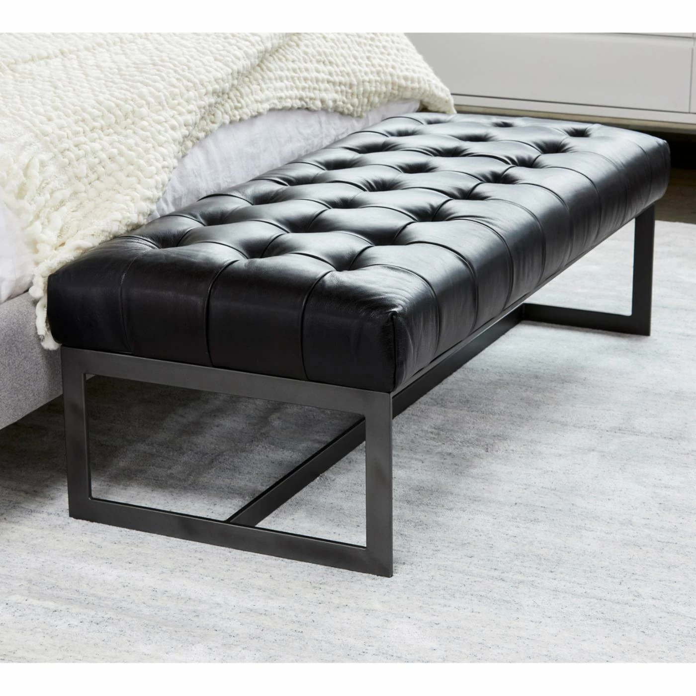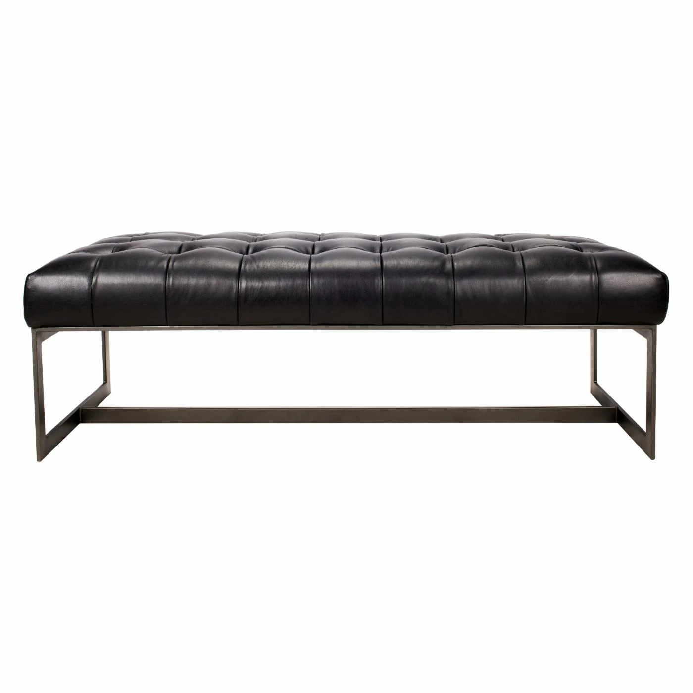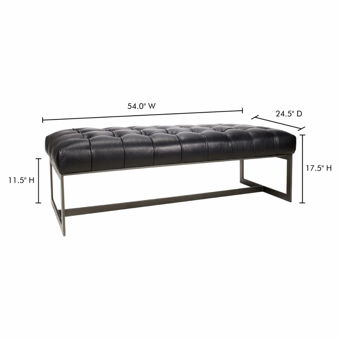 The backless Moes Home Collection Wyatt Leather Indoor Bench has a plush, cushioned seat that’s upholstered with black top-grain leather. Tufting gives the bench added flair and enhances its tailored look. The indoor bench is supported by a eucalyptus wood frame and it has sturdy iron legs. This is a great piece of furniture for your foyer, lounge, or to place at the foot of your bed.