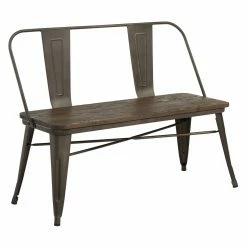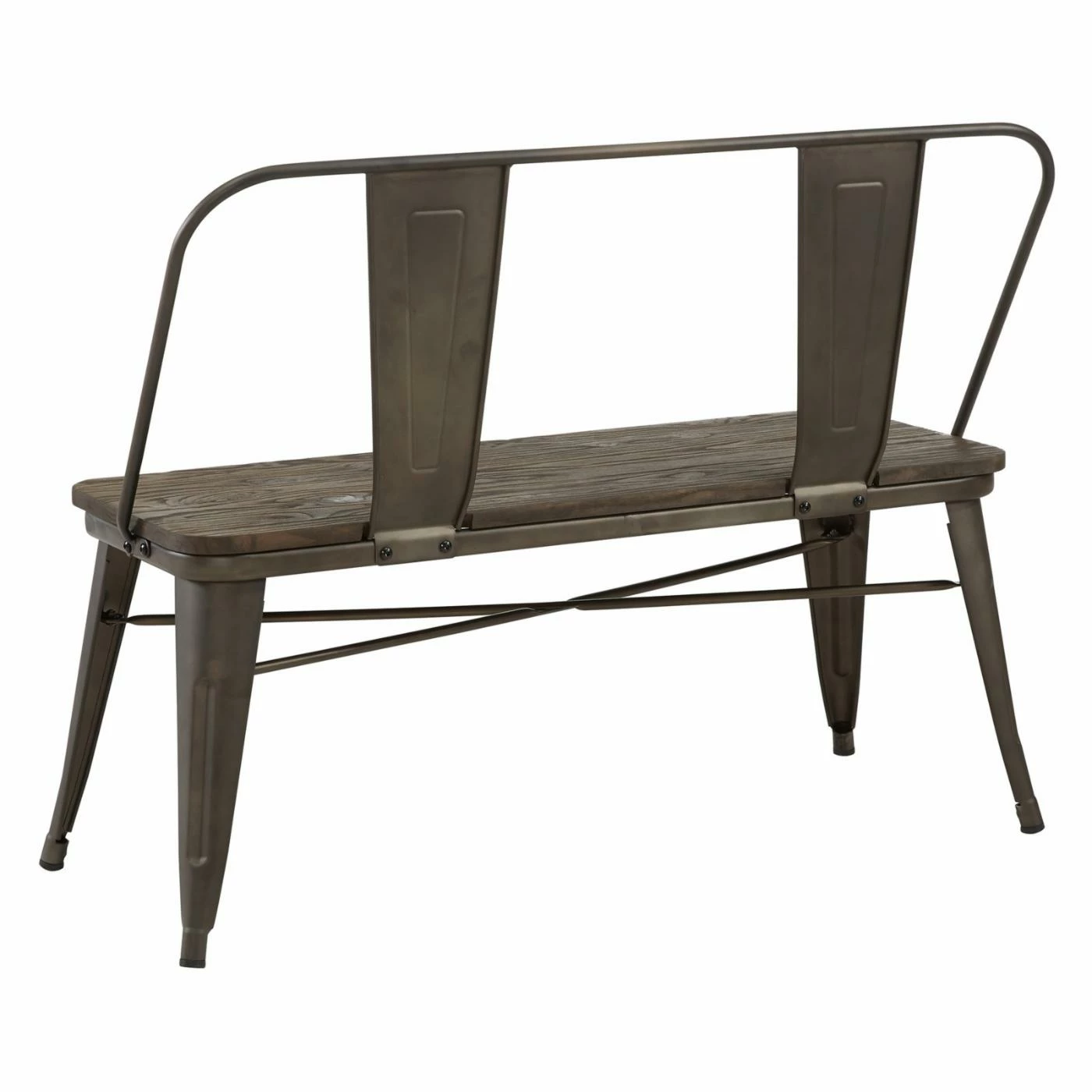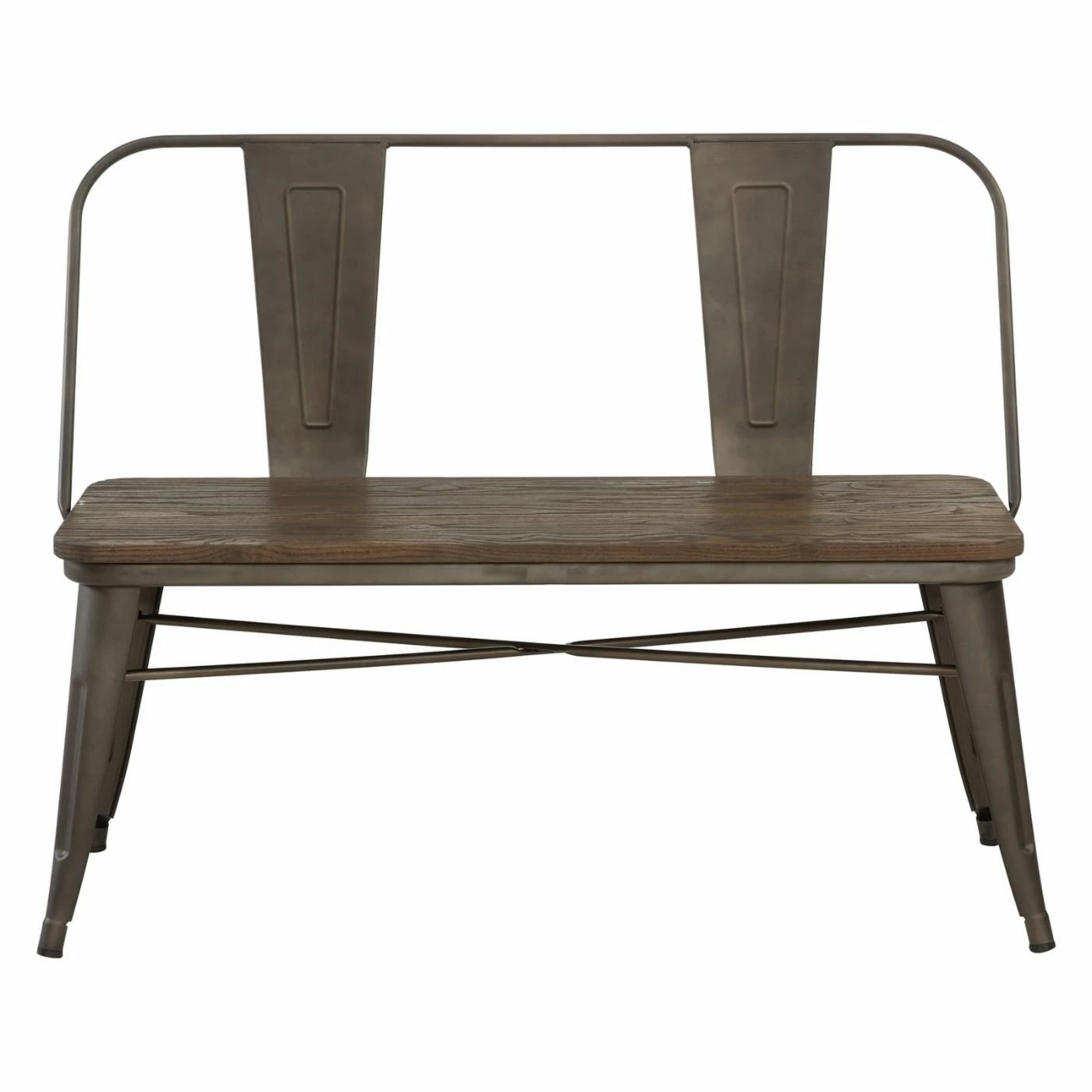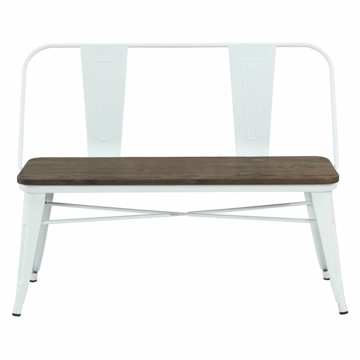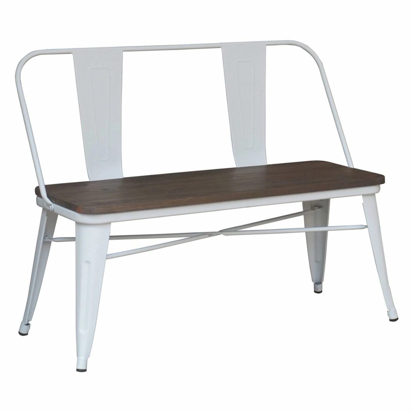 A !nspire Industrial Double Bench with side-by-side splat back and open frame is a simple, but striking seating option great for any setting. Providing the perfect dose of rustic and modern, this French-inspired design features a solid elm wood seat in distressed finish paired with flaird metal legs and stabilizing cross-stretchers in your choice of color. This bench makes an excellent addition to a hallway or rec room, and it can even be brought into your formal or casual eatery as a replacement for two dining chairs. Some light assembly is required and the rugged design is more than durable enough to support up to 400 lbs. effortlessly.