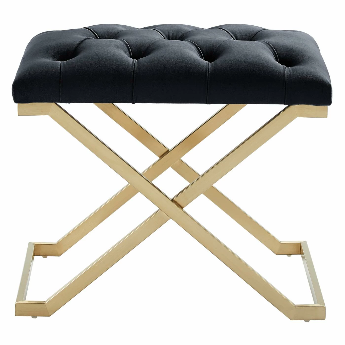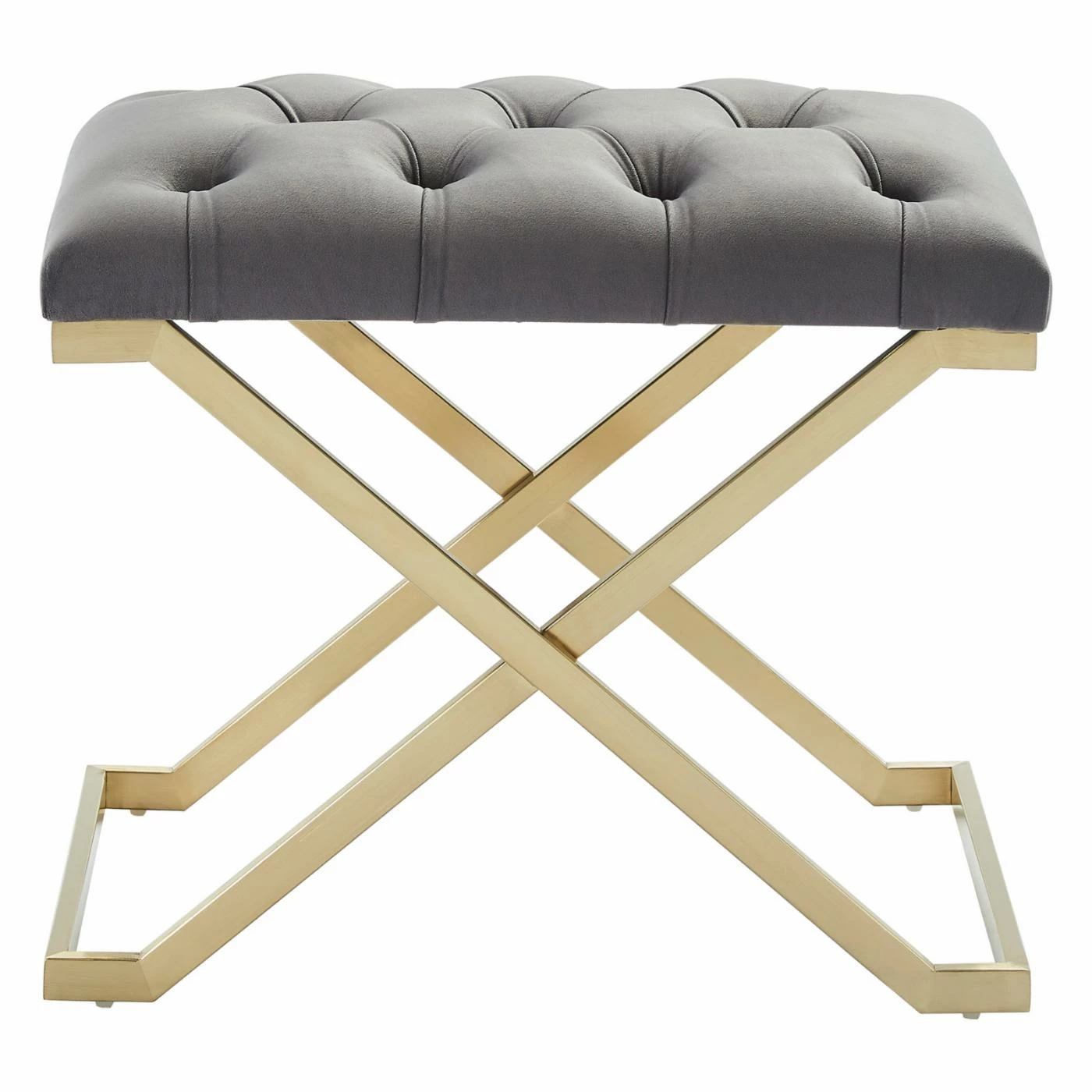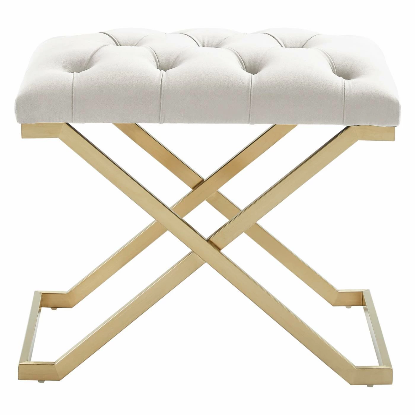 The !nspire Stainless Steel Gold Velvet Bench makes a glamorous addition to any room of your home. This simple seating solution can double as a chic side table when you add a decorative tray. Button tufted details in a classic diamond motif complete the modern look.