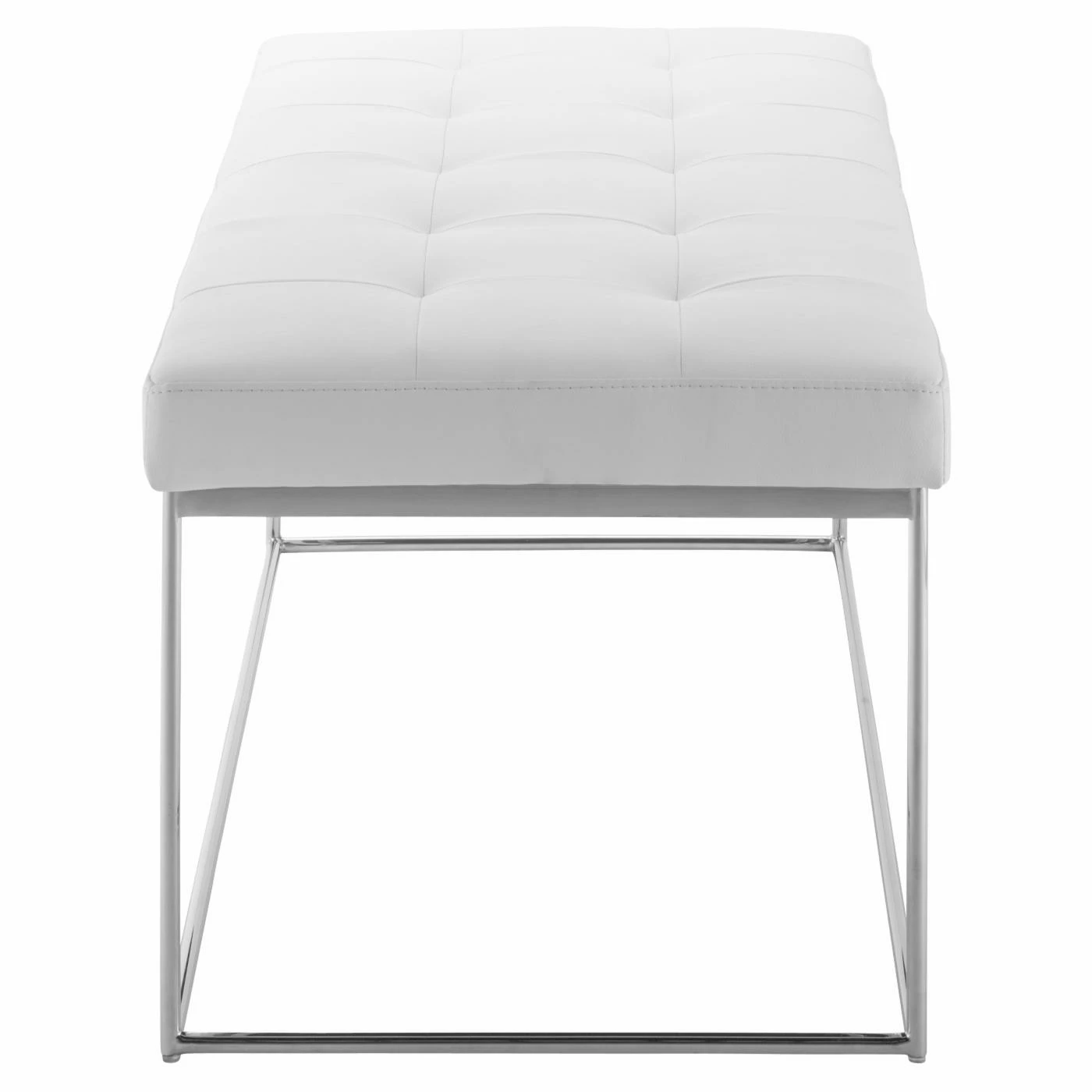 The Nuevo Caen Indoor Bench combines the cold simplicity of stainless steel with the rich, creamy texture of faux leather to create a piece that’s going to bring a classically modern sensibility to your home. The stainless steel frame offers ample strength with the subtle design of highly polished, wire legs. A thick layer of CFS foam brings the comfort, while supple naugahyde in your choice of colors adds the inviting touch that will have using this piece on a regular basis.