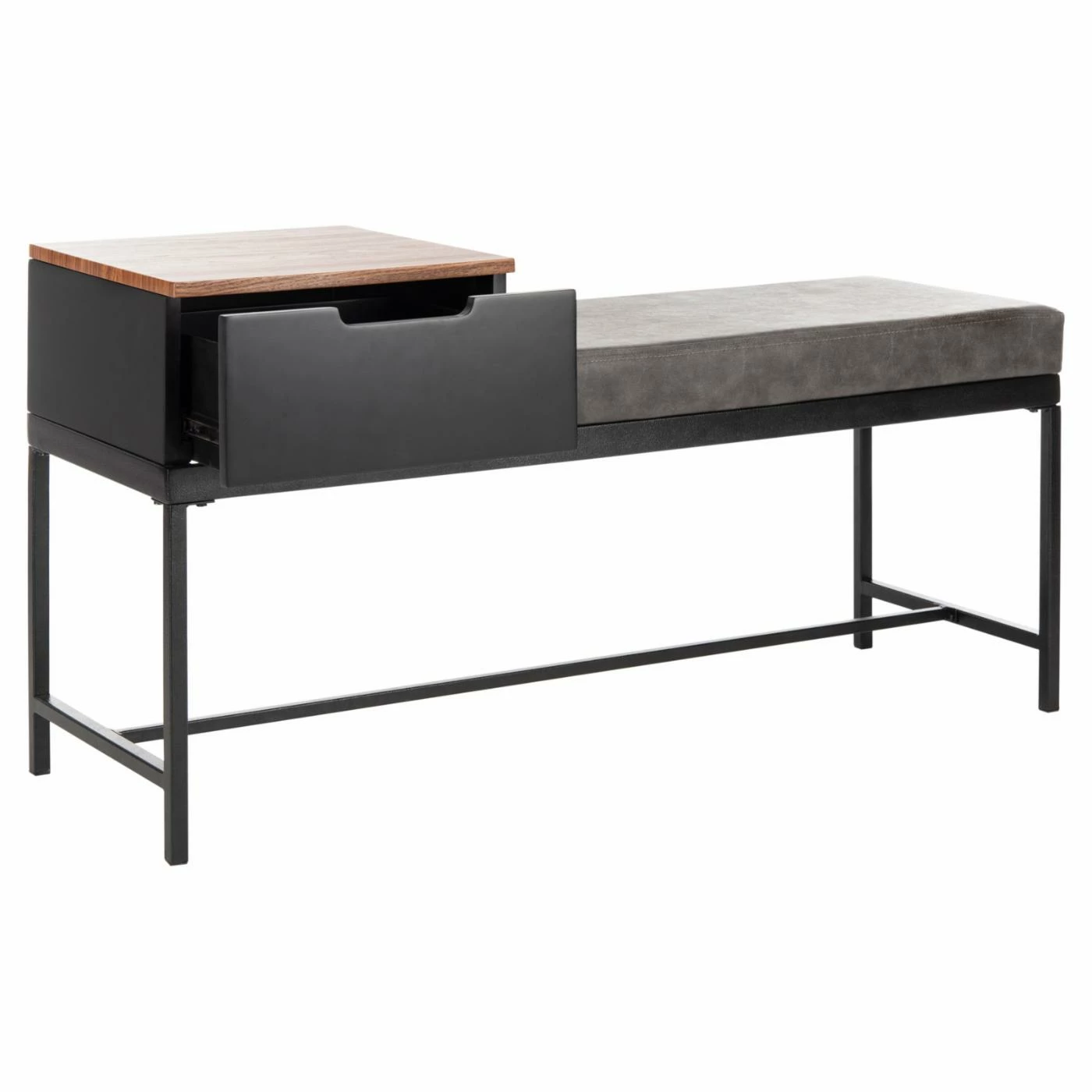 The Safavieh Maruka Indoor Storage Bench features a contemporary minimalist design and provides extra seating with storage. It’s outfitted with a plush cushioned seat and smooth surface that can be used for writing or display. This bench also has a drawer with a cutout handle, giving you handy storage space as well as a cozy seat.