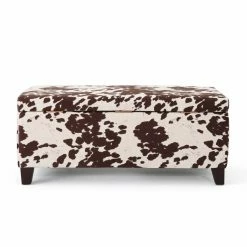 Cheap 😉 Best Selling Home Ottoman Benches Brahma Velvet Cow Print Storage Ottoman Bench 👍