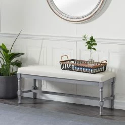 Deals ๐ Settee Benches DecMode Traditional Wood Rectangular Burlap Seat Bench – Gray/Beige โค๏ธ