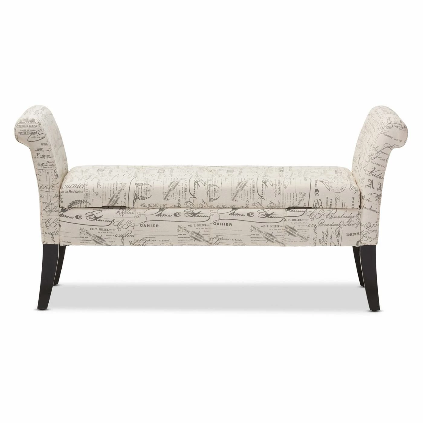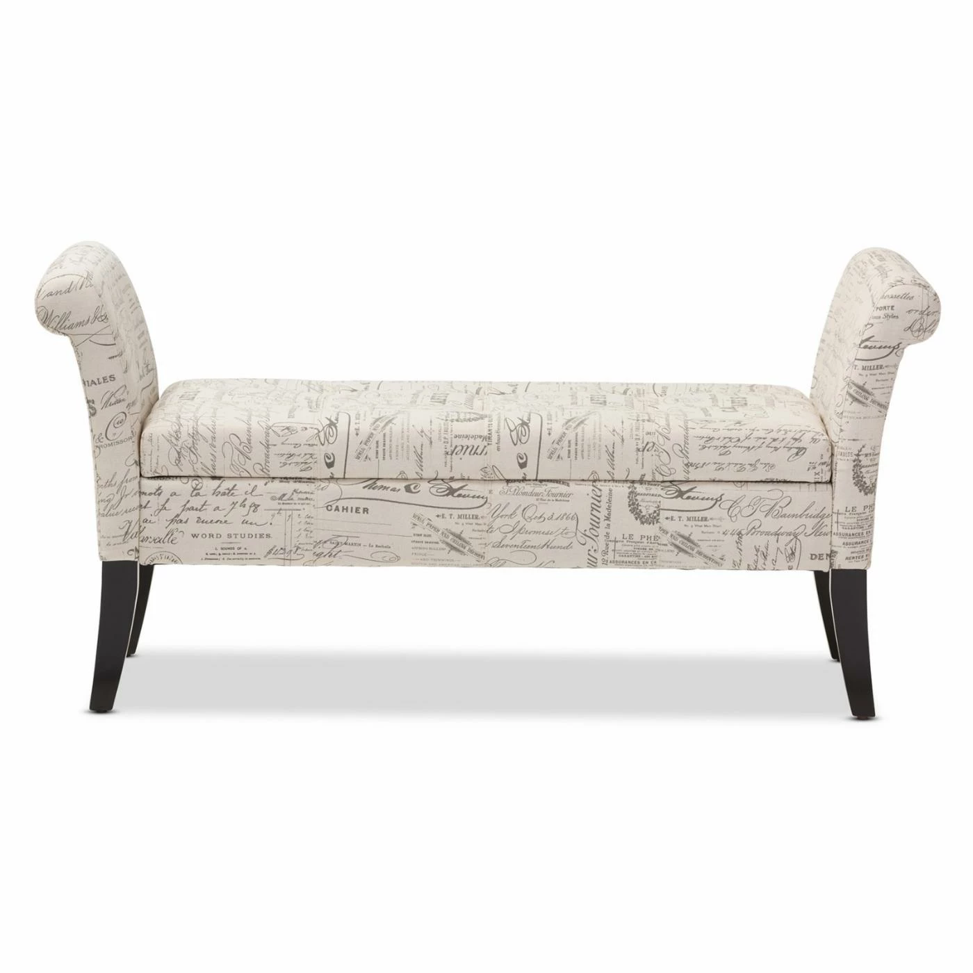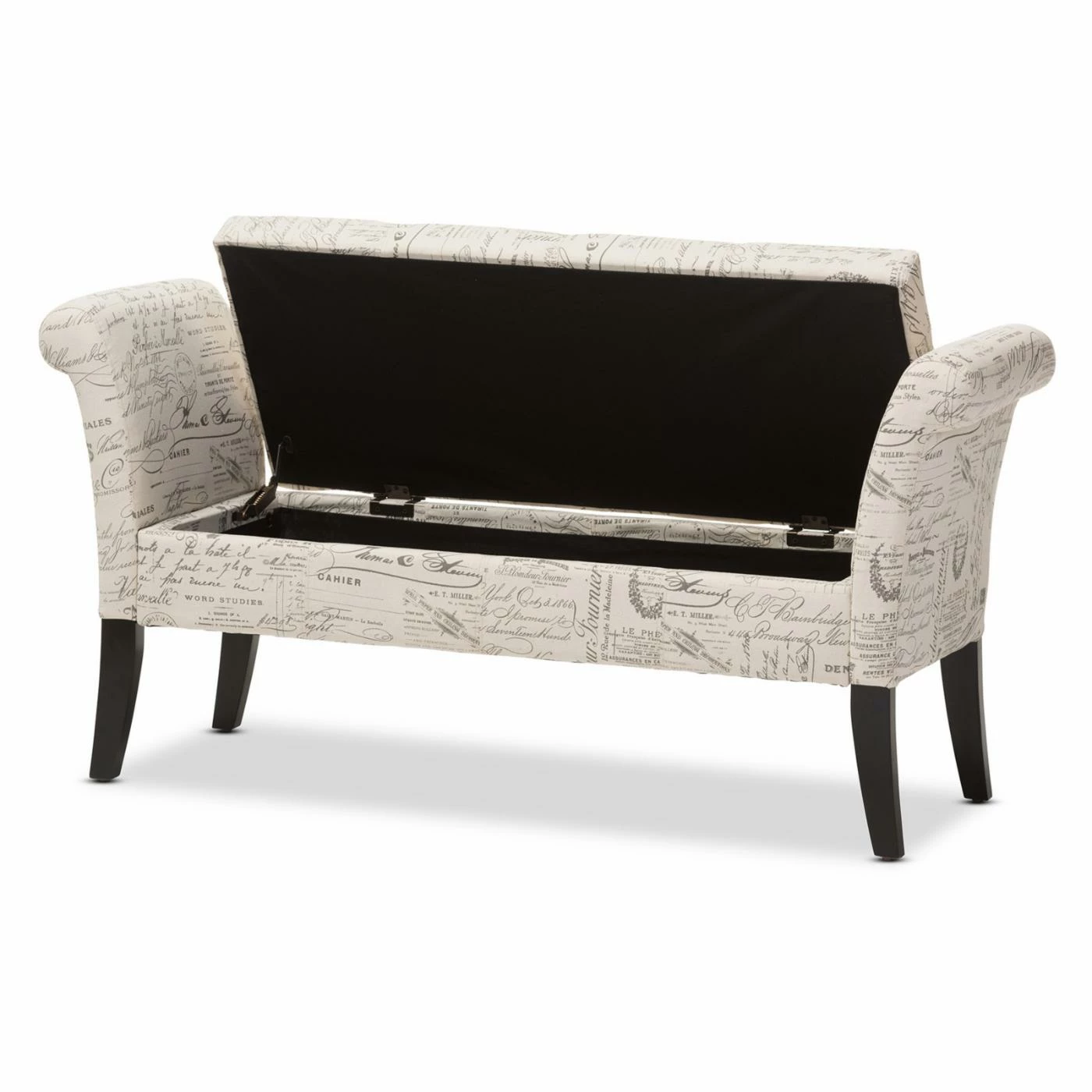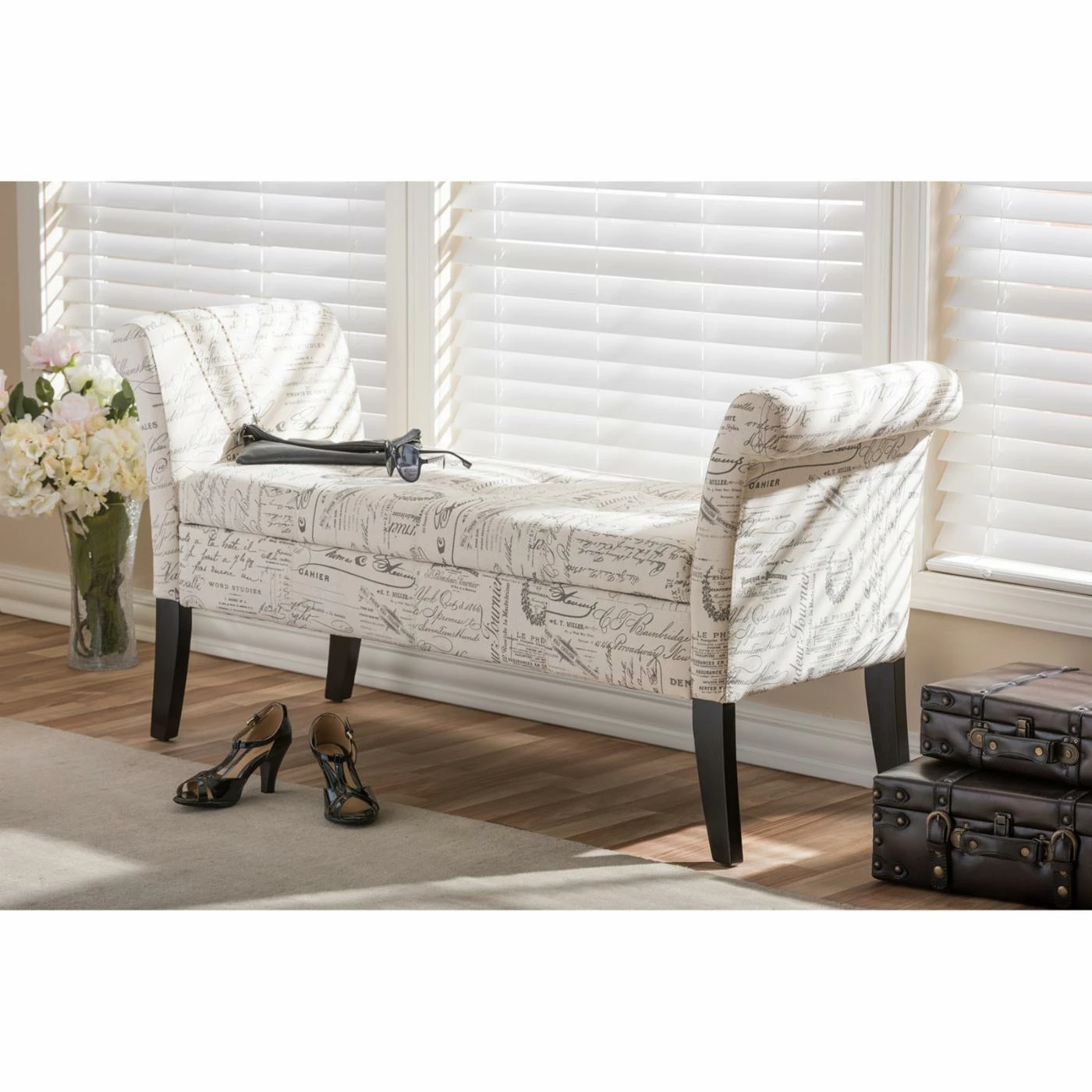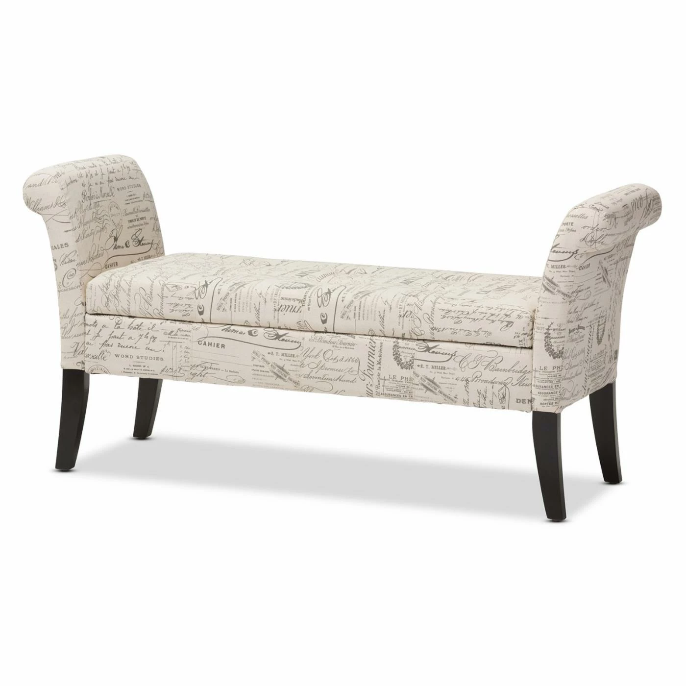 Add comfortable seating and hidden storage to your home with the Baxton Studio Avignon Storage Ottoman Bench. Featuring a French-inspired pattern, this bench boasts a classic silhouette with rolled armrests and flared wooden legs. This overstuffed bench provides ample comfort. Lift the cushion to unveil convenient storage, which optimizes organization in your home.