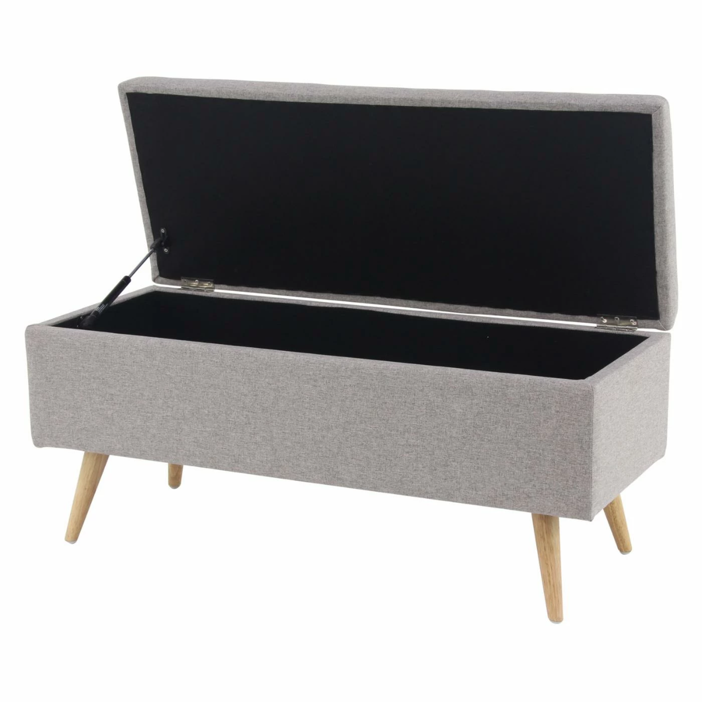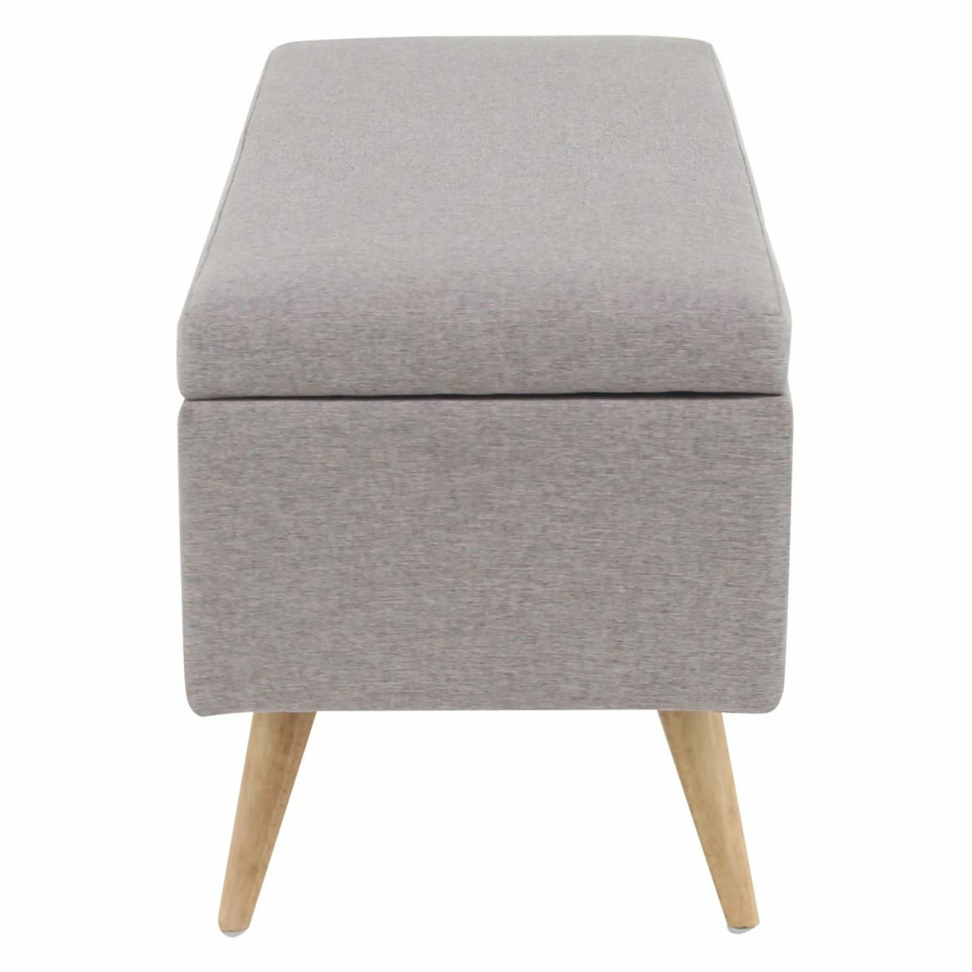 Seating and storage combined, the is like a hope chest and sofa in one. The whole storage bench is upholstered, with the exception of the brown legs which splay outwards playfully. A smooth cushion provides ample seating, while the hinged bench lid offers clever storage. This clean-styled bench will be at home in your favored décor. Customize this storage bench by choosing from available colors.