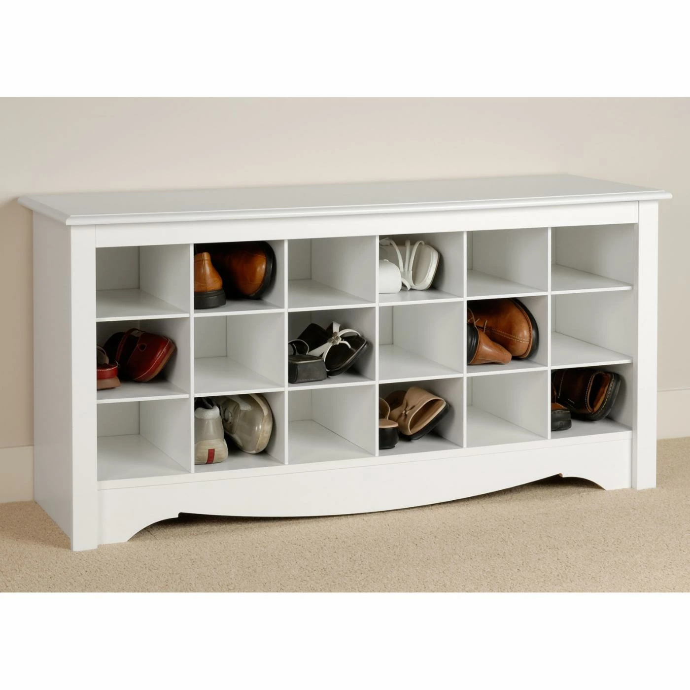 Perfect in your foyer, mudroom, or walk-in closet, the Shoe Storage Cubbie Bench is an ideal thing to have wherever you put on your shoes. You get double duty out of this product because not only is it designed to store your shoes, but it also serves as a bench, and a place to put your shoes on. Constructed of wood and finished in white, this cubbie bench has room for up to 18 pairs of shoes. Each cubbie is large enough to hold up to a men’s size 13 shoe. That’s spacious storage. Each cubbie measures 6.75W x 13.75D x 5.5H inches.
