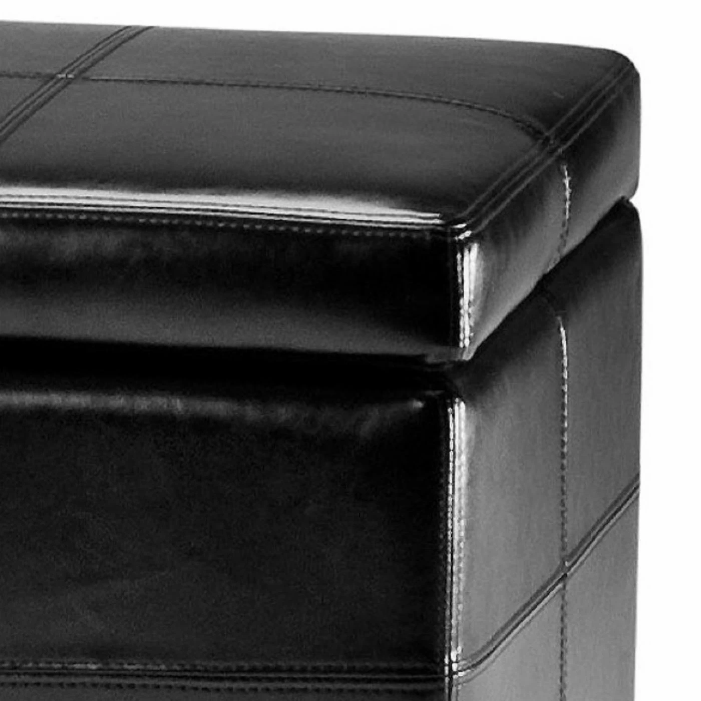 The Safavieh Madison Storage Bench – Black Leather will make a welcome addition to any space. Featuring a solid hardwood frame and block feet, this bench boasts a convenient lift-top with ample interior storage. Upholstered in black bi-cast leather, this bench has a square-stitched detailing that will look great just about anywhere.