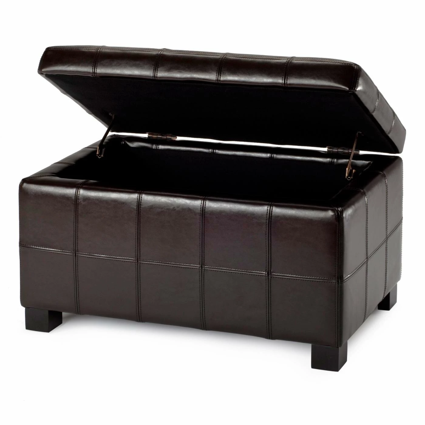 Luxurious details and welcome storage make the Safavieh Small Brown Maiden Tufted Brown Leather Storage Ottoman a favorite piece. The wood frame of this storage ottoman features brown bi-cast leather upholstery and a lid that opens to reveal hidden storage.