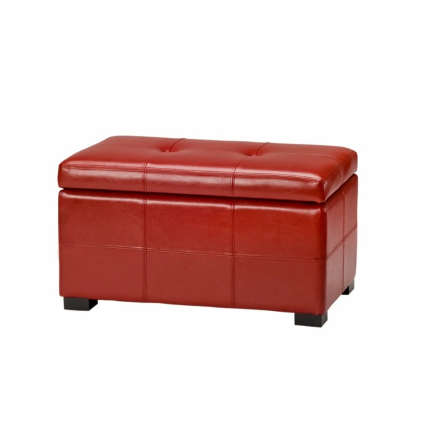 The Safavieh Small Red Maiden Tufted Leather Storage Ottoman is and eye-catching piece that great for more than just putting your feet up. Made with tufted bi-cast leather with decorative stitching this ottoman opens to reveal a hidden storage compartment perfect for remotes, video games or DVDs. Classic style with bonus storage. Not bad for an ottoman.