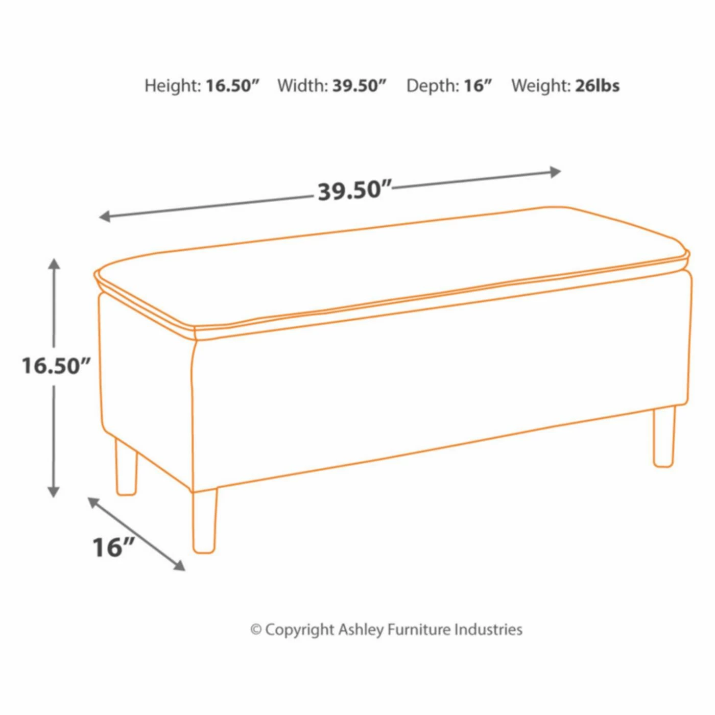 - Dimensions: 40W x 16D x 16H in.