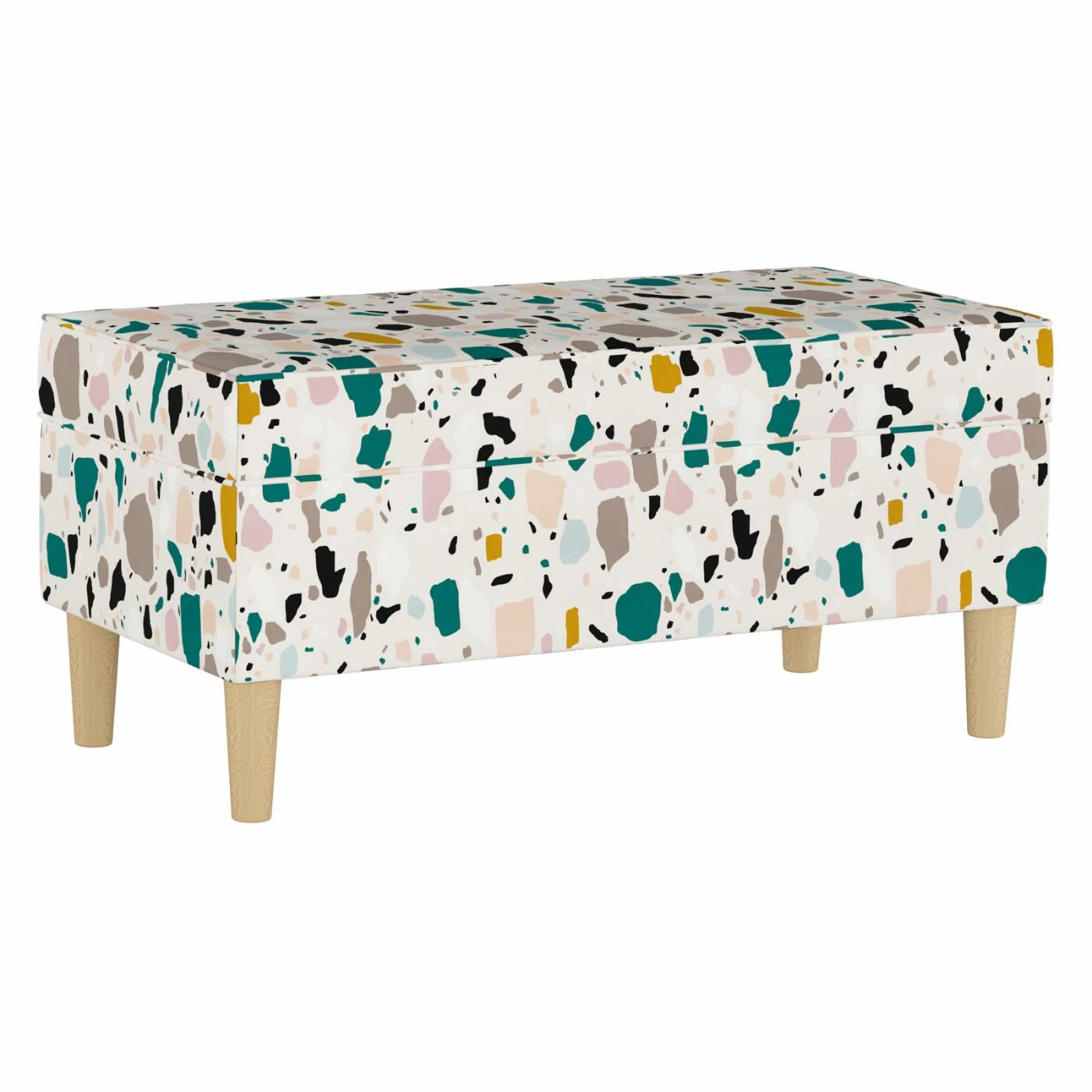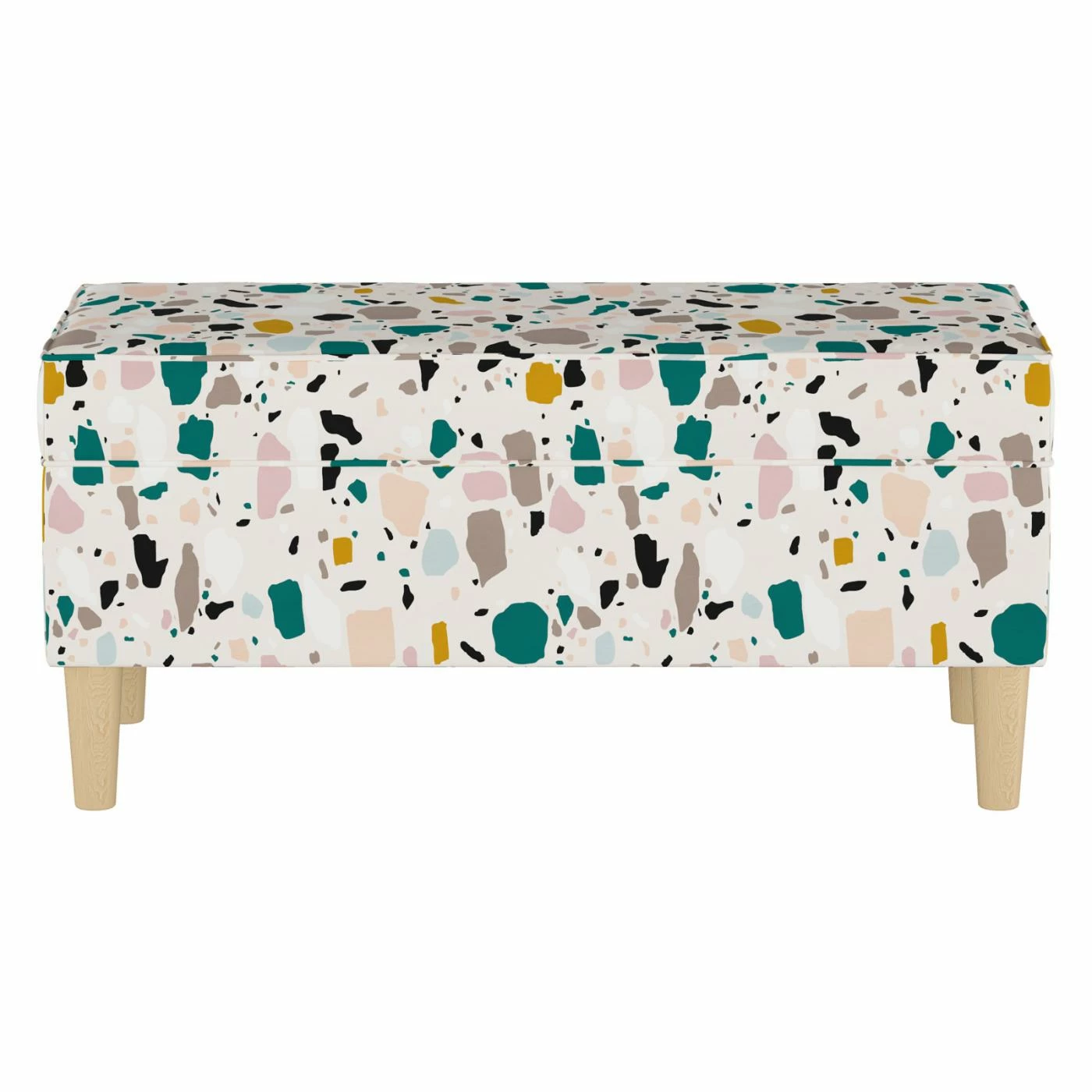 Stylish and functional, the Skyline Furniture Mid-Century Indoor Storage Bench is a great addition to practically any room. Made in the U.S.A., this storage bench features an easy-to-open lid with hinges. Slim, tapered wood legs in a light, natural finish add a modern touch to the piece.