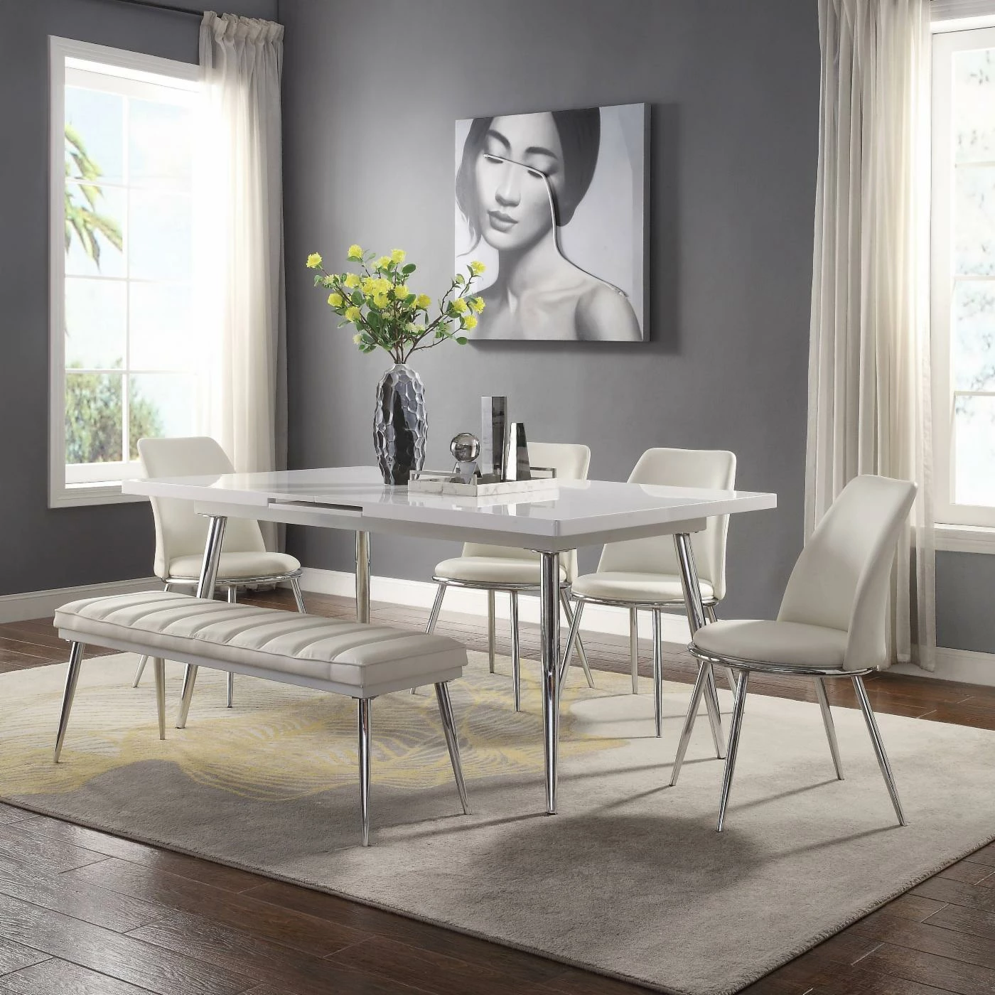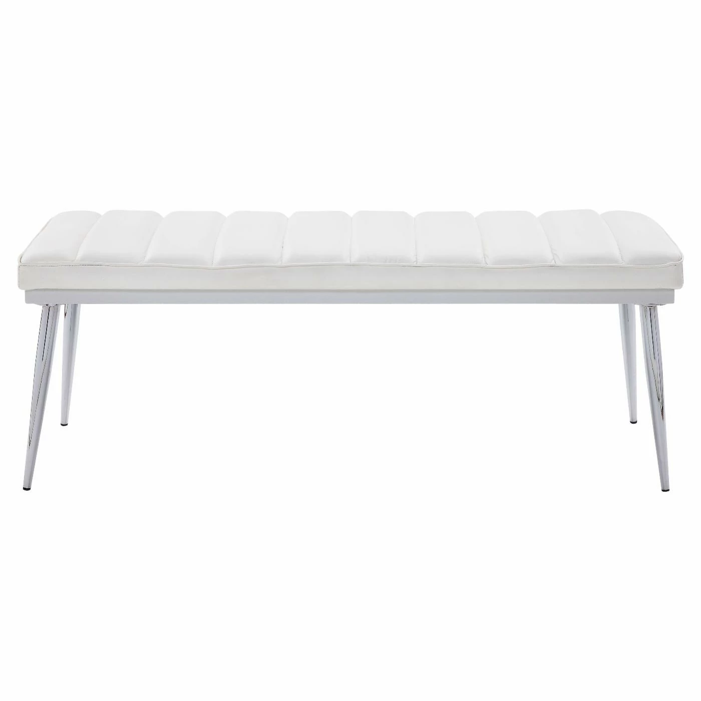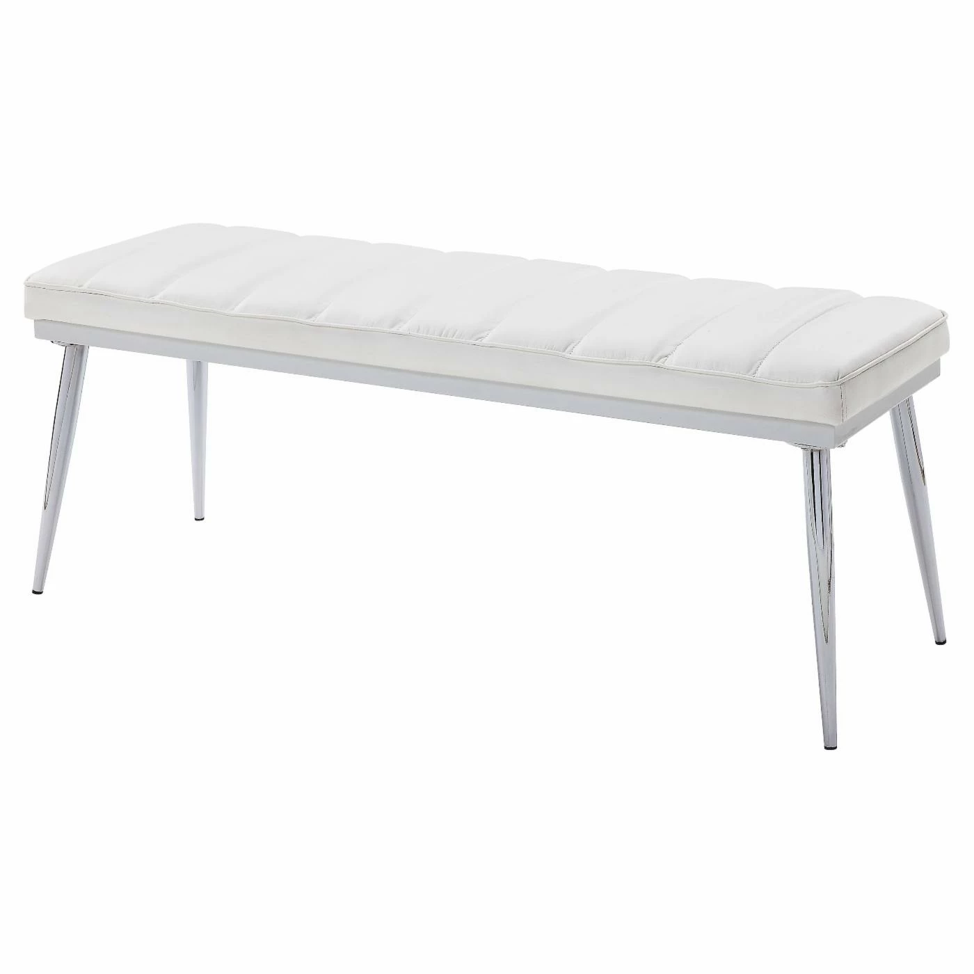 Add a dash of contemporary style and a comfy seating to your home with the Acme Furniture Weizor Upholstered Dining Bench. Its stainless spindle leg boasts a polished chrome finish that lends an urban appeal. The white faux leather cushioning on top is upholstered in channel tufted with welt trim adds a tailored look.