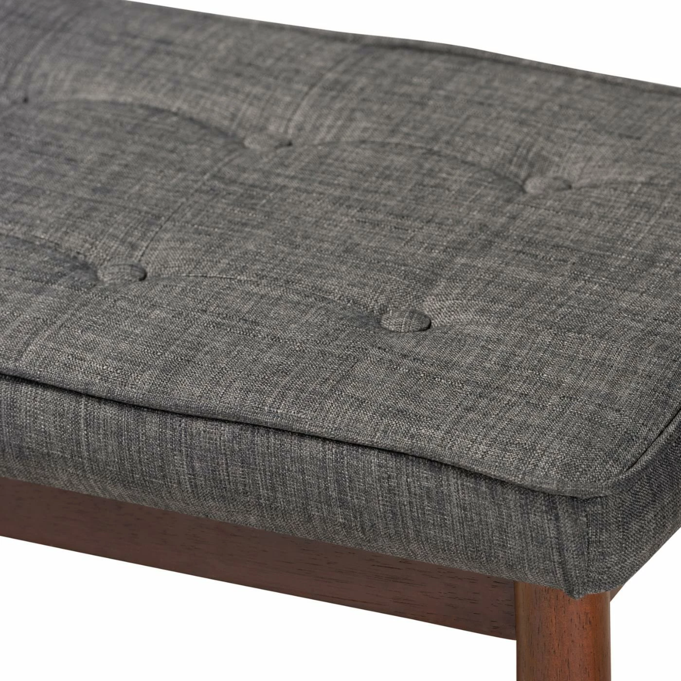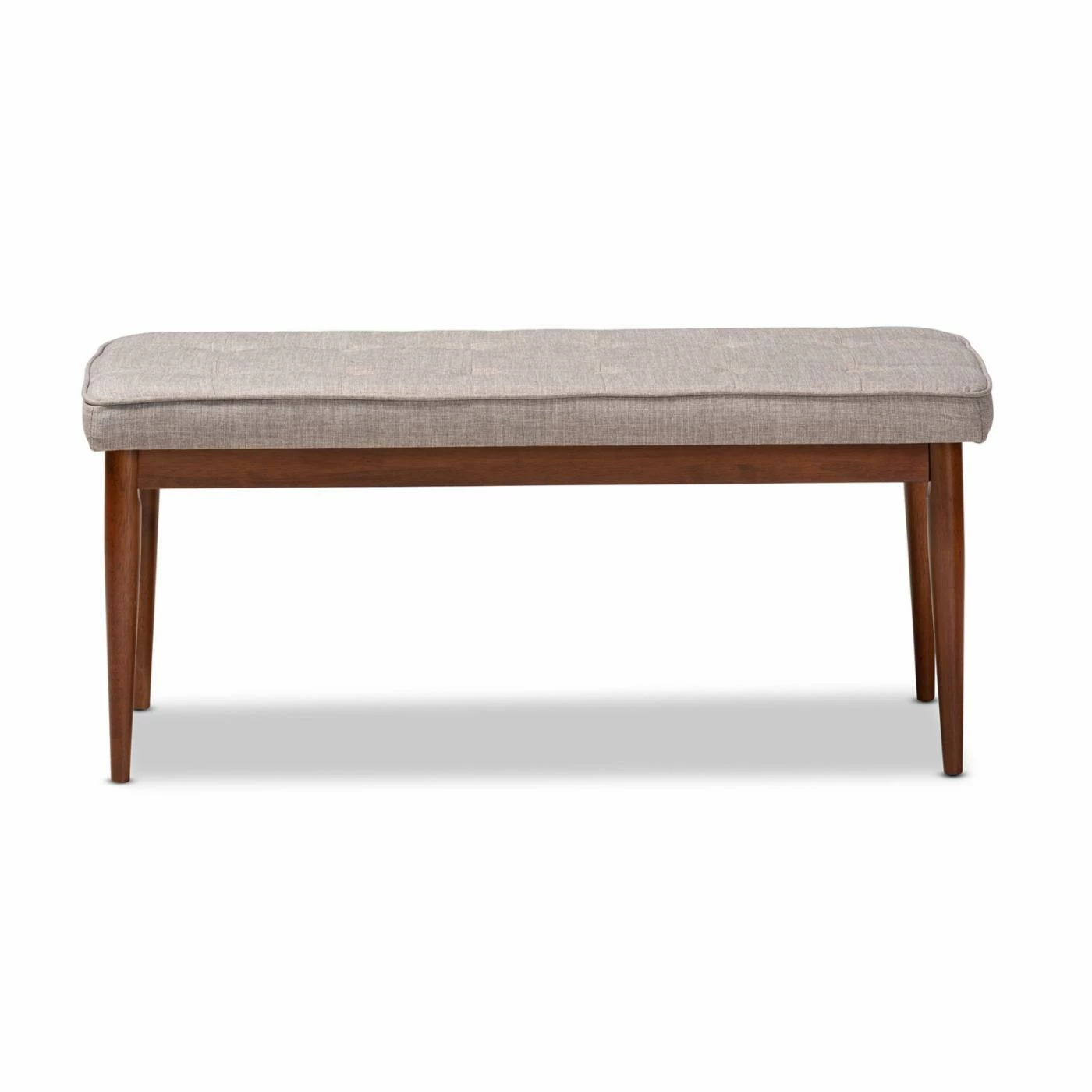 Cozy up to the dinner table on the Baxton Studio Itami Dining Bench with a loved one – or bask in all the space. This backless bench puts a sleek new spin on dining room dรฉcor with a sleek Scandi-inspired mid-century modern look. Tapered round legs in a deep, natural rubberwood stylishly support the seat of this bench, upholstered in a comfortable, neutral polyester. Two lines of button tufting add to the structural, rectangular look of this bench. Some assembly required. Spot clean as needed.
