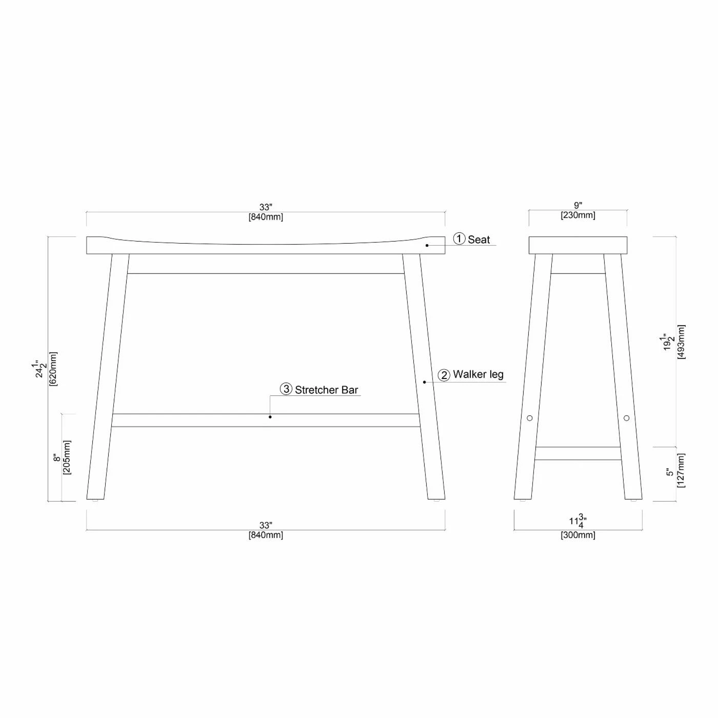 - Dimensions: 33W x 9D x 24.25H in.