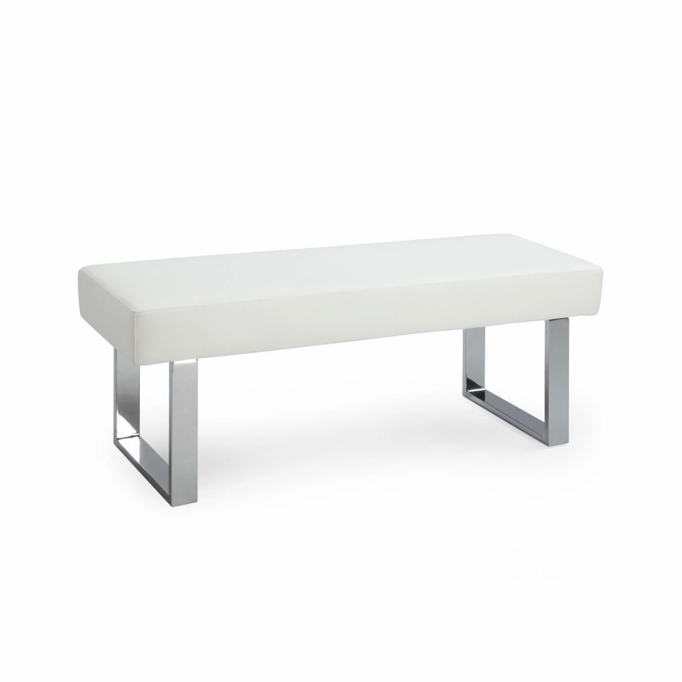 For a different take on dining seating space, try the Chintaly Linden Dining Bench for your kitchen or dining area. Luxurious and soft, this bench is upholstered in polyurethane in a clean white finish. This piece boasts major contemporary style with clean lines and stainless steel legs in a chrome finish. Use this piece with any dining table (not included) and let your kitchen or dining room be complete.