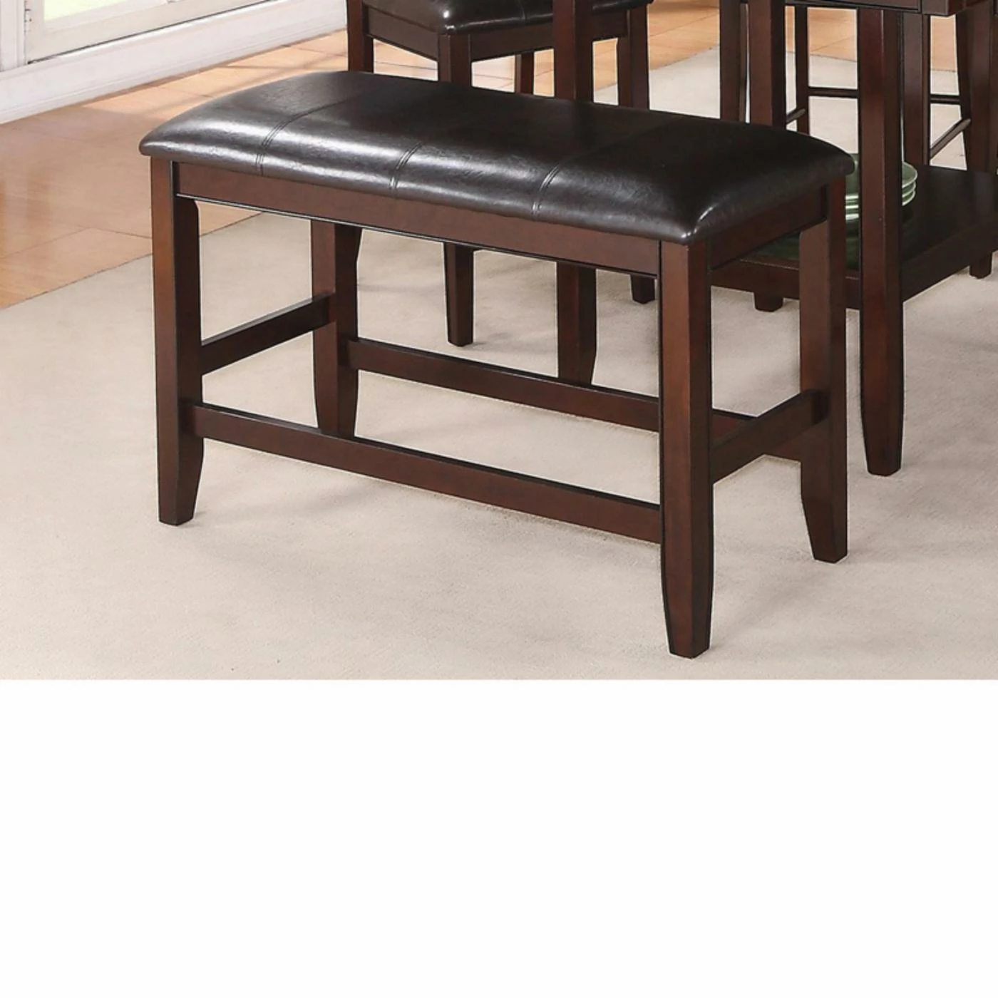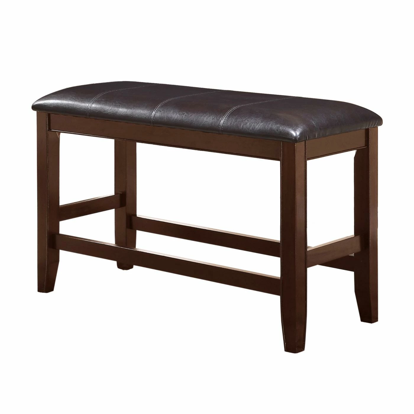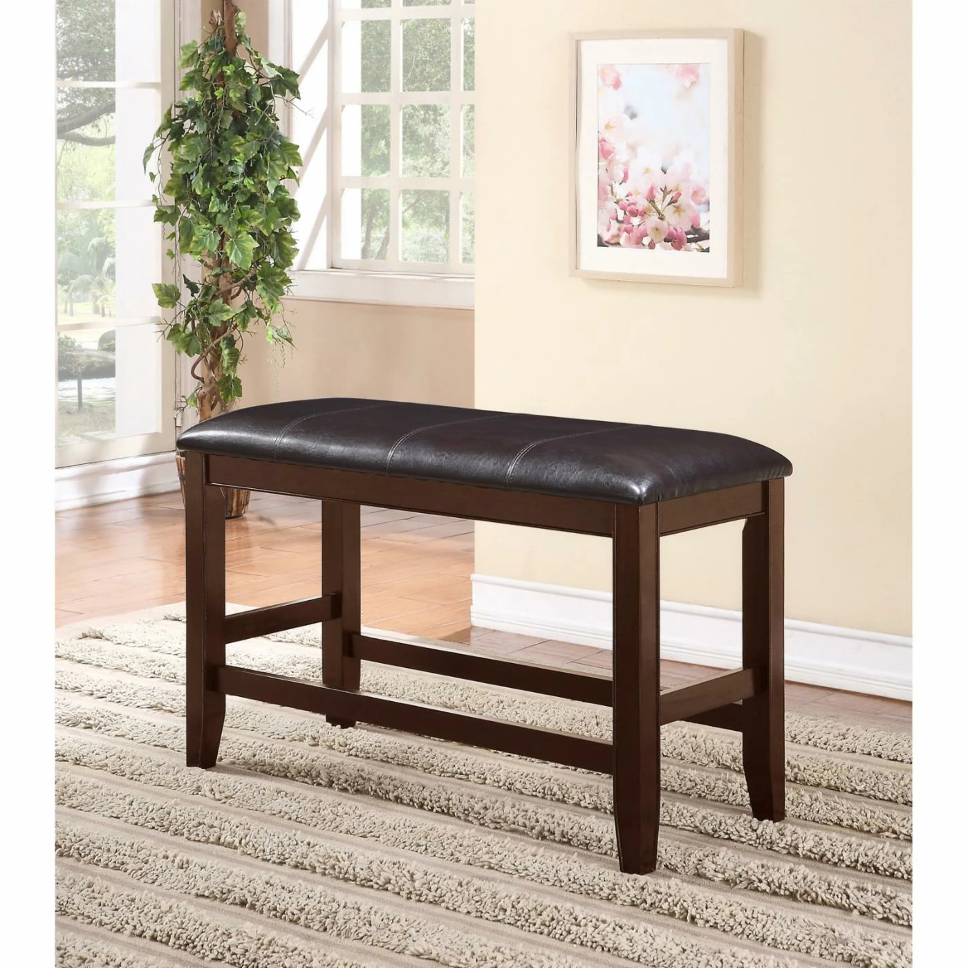 With its deep finishes and sleek styling, the Crown Mark Fulton Vinyl Backless Counter Height Dining Bench is just as fetching as it is functional. Its sturdy wood frame is topped in a deep brown that’s attractively complemented by the black faux leather upholstery of the seat. Accent stitching adorns the upholstery, lending tailored appeal. This bench’s transitional styling allows it to suit any dining room handsomely.