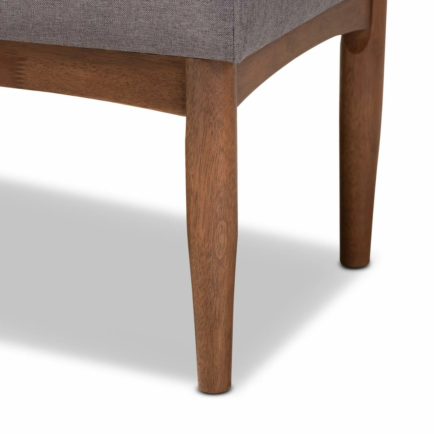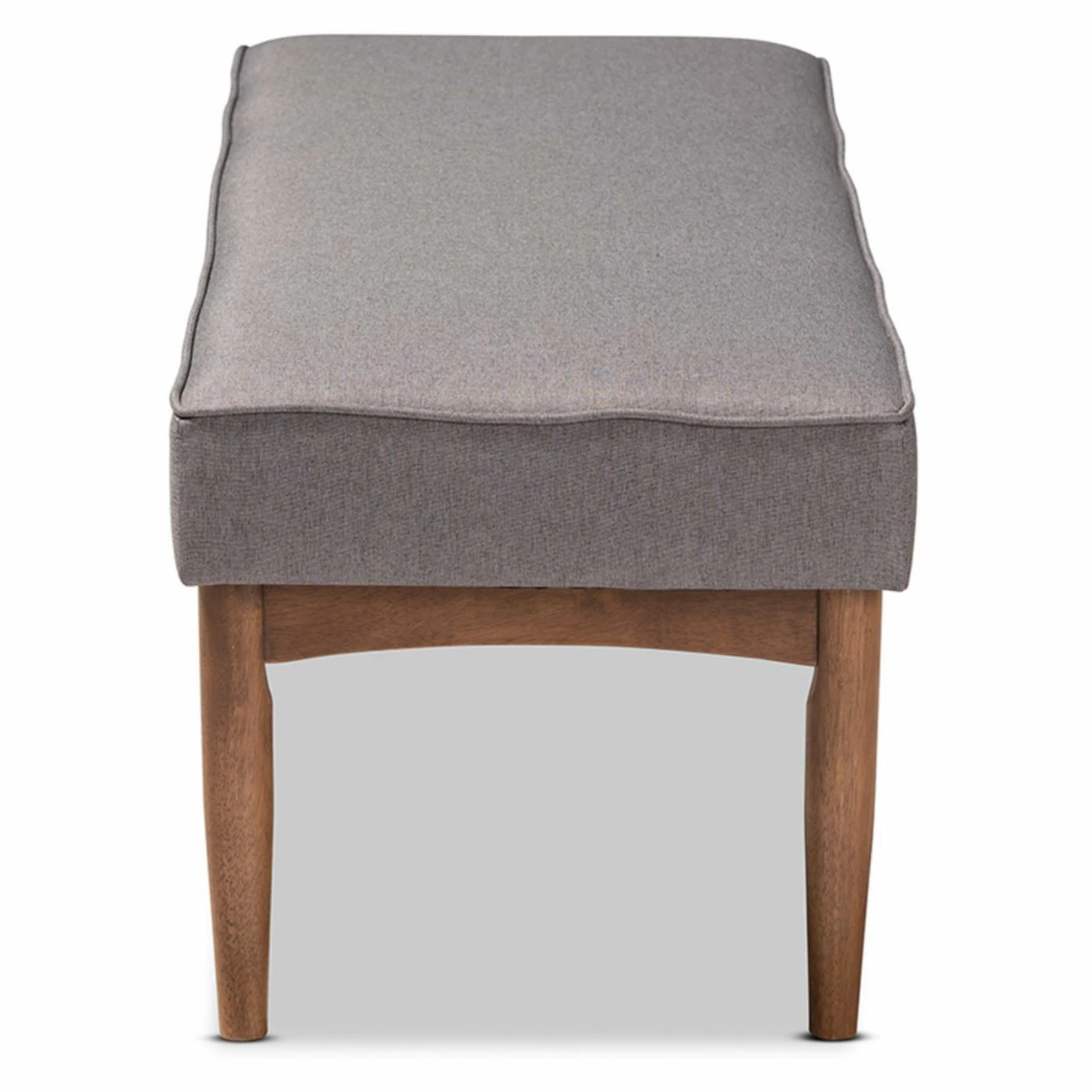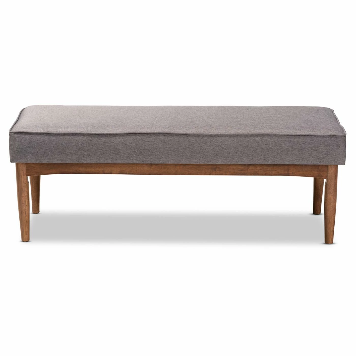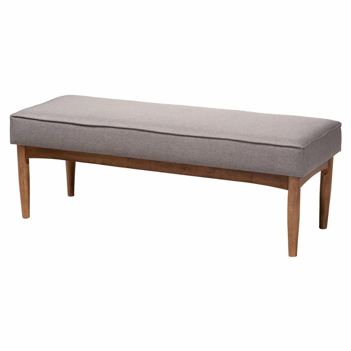 Offer a more relaxed tone to your dining area with the HN Home Cranbrook Mid-Century Modern Upholstered Dining Bench. This dining bench comfortably seats two people, featuring a fat cushioned top stuffed with high-density foam. Comes in choice of fabric type and color. The frame is constructed from rubberwood with round, tapered legs and a walnut brown finish.