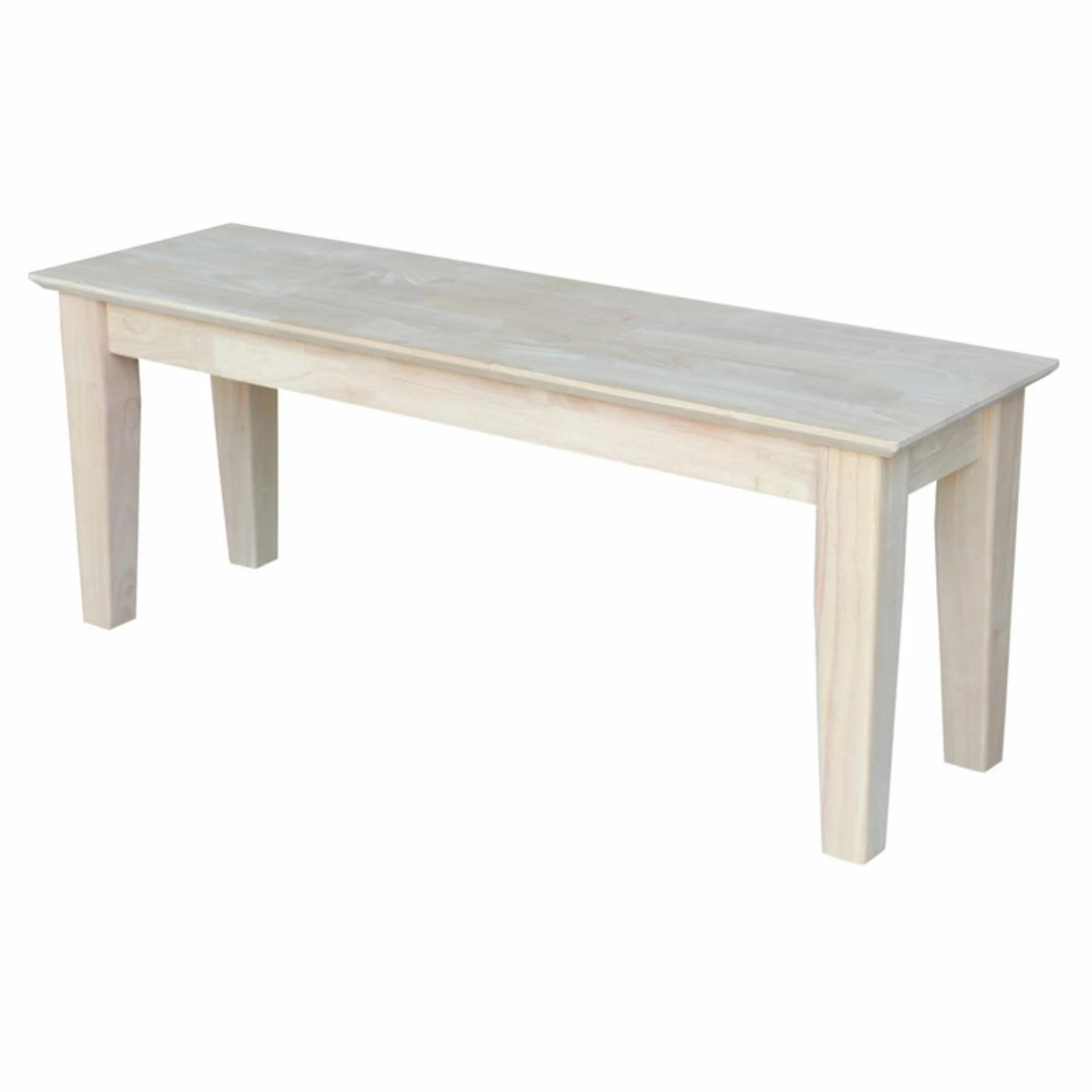 Rustic simplicity meets functionality with the Shaker Style Bench. This bench is finely crafted from durable solid pine, and arrives in a state of natural, unfinished splendor. The bench is easily customizable, so you’ll get the ideal complement to your decor scheme. The bench is constructed in a simple, sturdy style, and measures 47W x 14.4D x 18.7H inches.