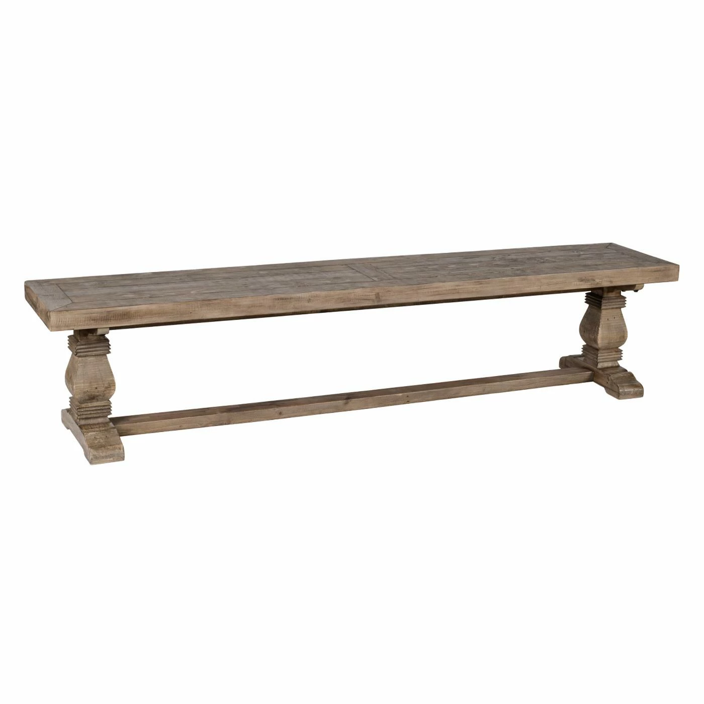 Your relaxed dining space craves the Kosas Home Quincy Backless Dining Bench. Its turned pedestal trestle base and mortise and tenon details lend a French country feel. Choose from the available size options. It’s handcrafted of sustainable plantation-grown solid pine wood in a hand-distressed, water-based desert finish that allows the organic character marks found in the wood to shine.