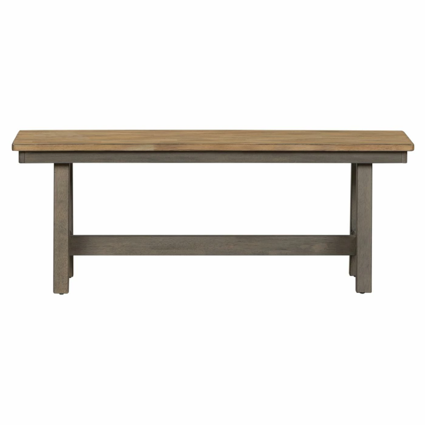 Mix up your dining room seating with the Liberty Furniture Industries Lindsey Farm Backless Dining Bench. This bench is supported by trestle legs in a gray finish. The seat features a warm sandstone finish. Pair this rustic bench with a farmhouse dining table to create a cohesive look.