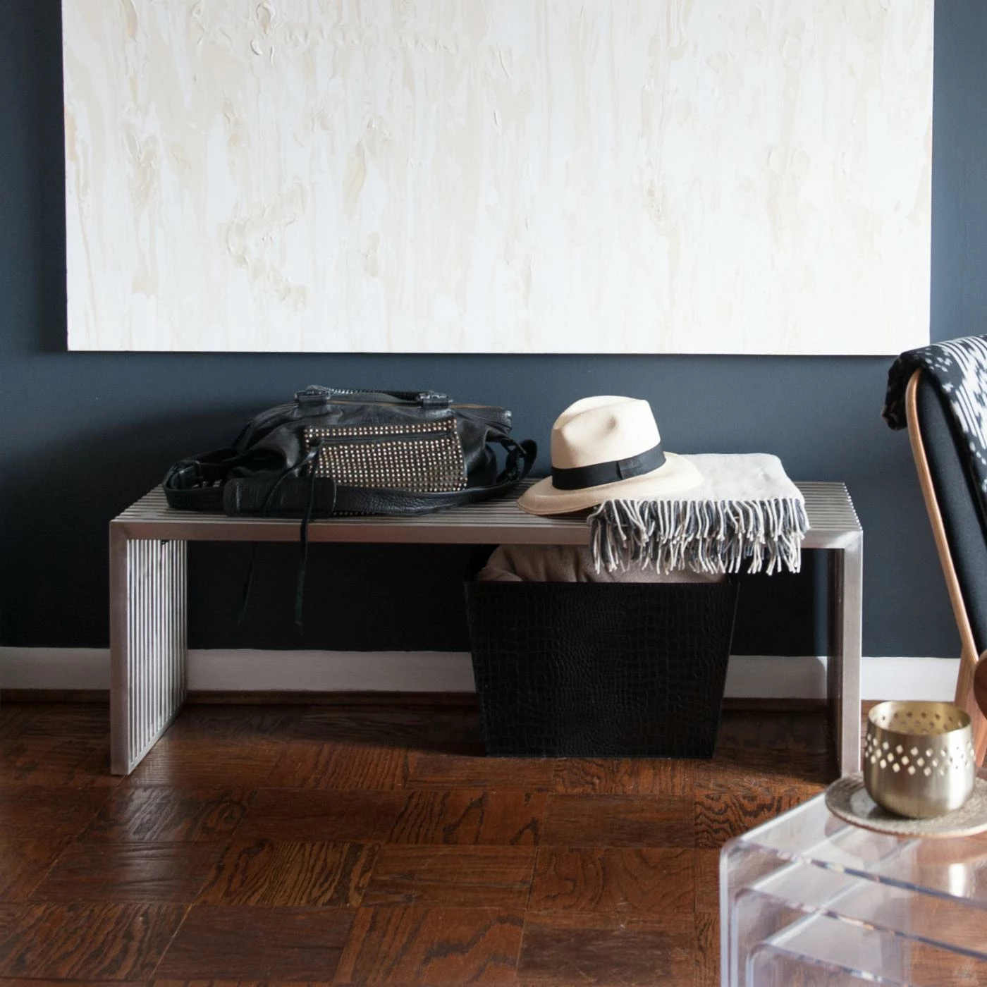The simple design and minimalist charm of the Nuevo Amici Indoor Bench makes a contemporary statement in any room you place it in. Featuring a durable, stainless steel frame with acrylic spacers, this bench sports a unique look, all the more so because it has no screws or visible connectors. The brushed finish is attractive and will beautifully complement any updated decor. With this eye-catching bench, you can be assured not only of years of function, but also plenty of compliments on your taste!