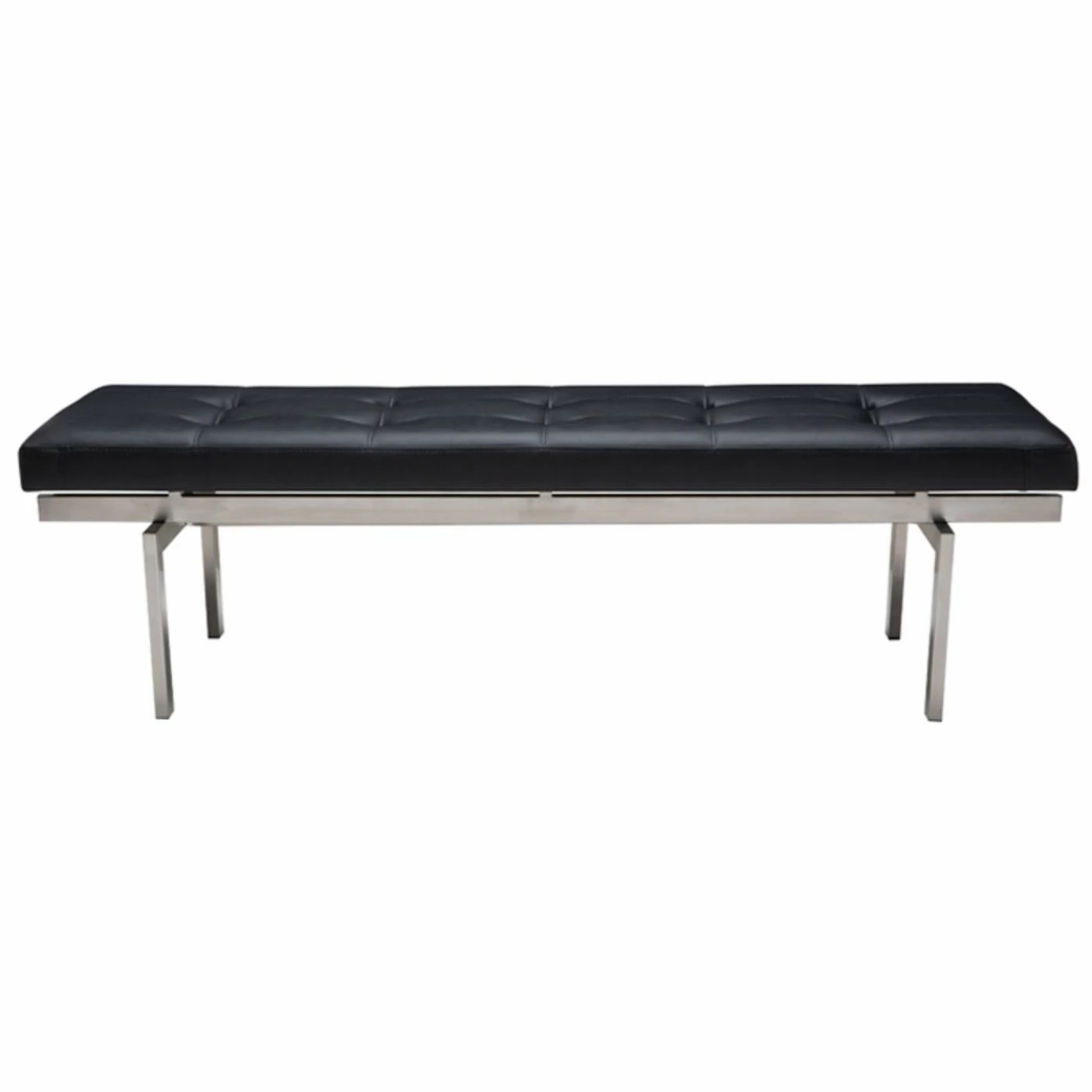 The chic and contemporary Nuevo Louve Bench lends a modern vibe to your home or office with its tufted, naugahyde upholstered cushions and minimal stainless steel construction. The materials used on this bench are durable and long lasting, sure to last many years for your enjoyment. Lighter weight and less bulky than a couch, the Louve Bench is the perfect seating solution; easily transport it to any room where it can best suit your needs.