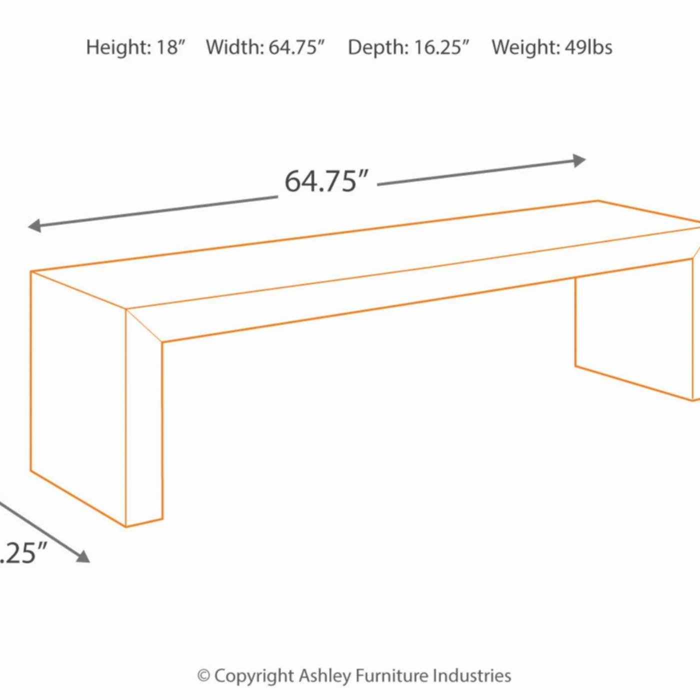 - Dimensions: 65W x 16D x 18H in.