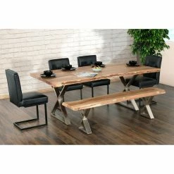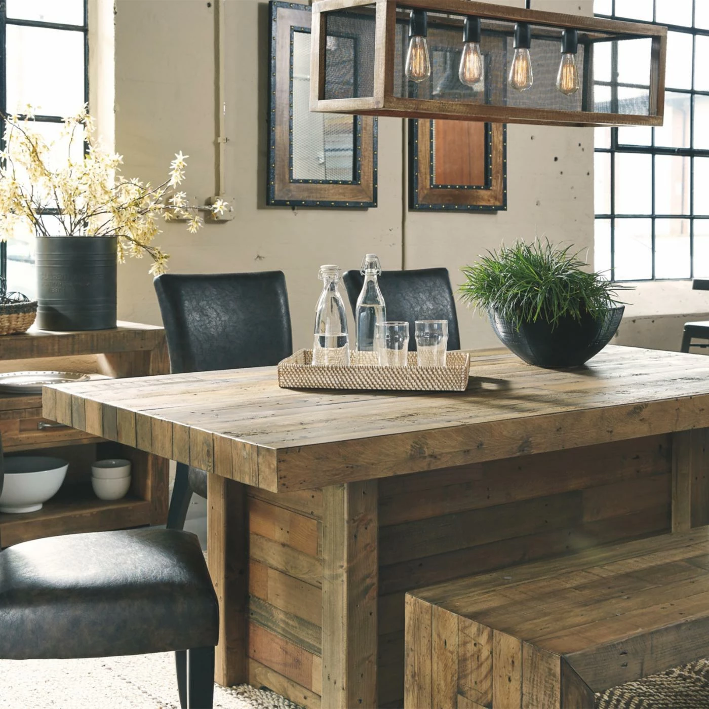 The Signature Design by Ashley Sommerford Dining Bench boasts a rustic aesthetic, perfect for those who love unadorned style. It’s crafted of reclaimed pine with a long butcher-block planking style. The tonal variation features nicks, notches, and nail holes for a sense of raw beauty. This dining bench can also be set in an entryway or hallway.
